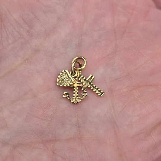 Vintage 1979 English Hallmarked Solid 9ct Gold Faith Hope Charity Pendant