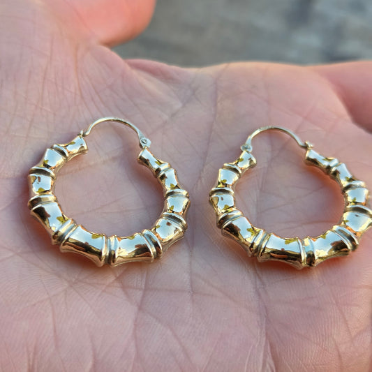 Vintage Hallmarked Solid 9ct 9k Gold Oval Hoop Earrings Hoops