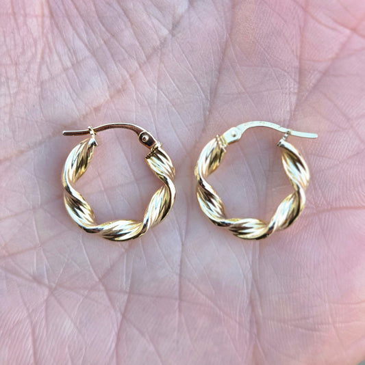 Vintage 1998 Hallmarked Solid 9ct 9k Gold Chubby Oval Twisted Hoop Earrings Hoops 3.5g