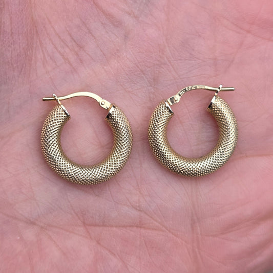 Vintage UnoAerre Hallmarked Solid 9ct 9k Gold Waffle Hoop Earrings Hoops