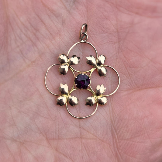 Antique Edwardian English Hallmarked Solid 9ct Rose Gold Amethyst Lavalier Pendant