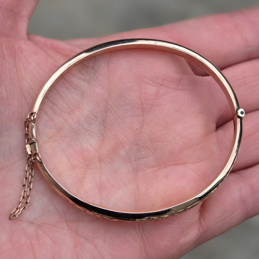 Antique 1910 English Hallmarked Solid 9ct Rose Gold Engraved Bangle Bracelet
