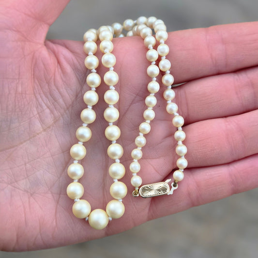 Vintage Lotus 1975 Hallmarked Solid 9ct 9k Gold Clasp Knotted Cultured Pearl Necklace 16''