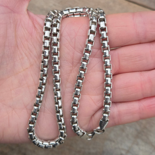 Vintage Italy Hallmarked Solid Sterling Silver 925 Box Biker Snake Chain Necklace 18'' 57g