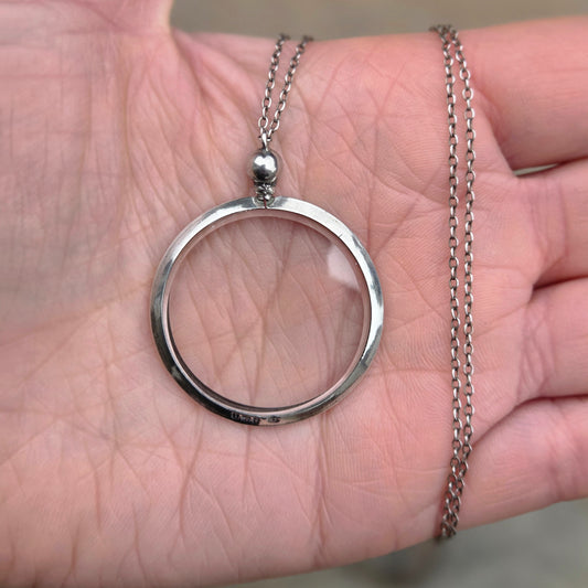 Antique 1908 Hallmarked Solid Sterling Silver Bevelled Glass Picture Locket Chain Necklace 15.75''