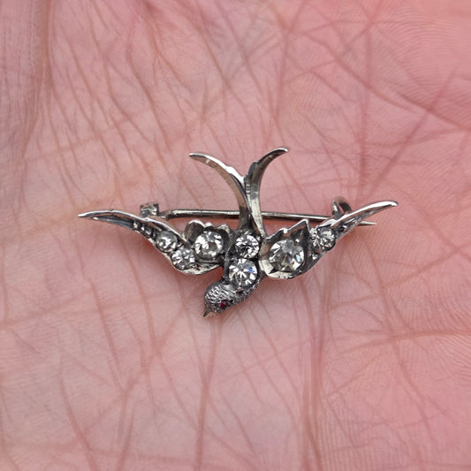 Antique Art Deco Solid Sterling Silver Paste Engraved Swallow Bird Brooch