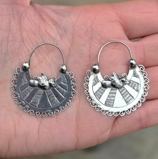 Vintage Hallmarked Solid Sterling Silver Large Bird Handbag Hoop Earrings Hoops 8g