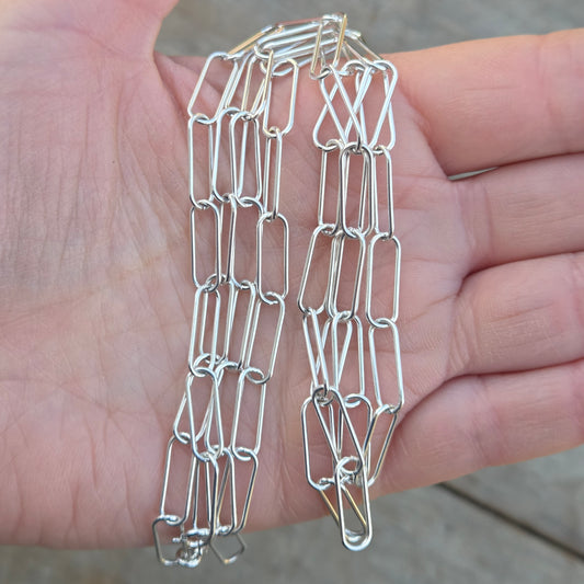 Vintage Hallmarked IBB Italy Solid Sterling Silver Paperclip Trombone Chain Necklace 32.25''