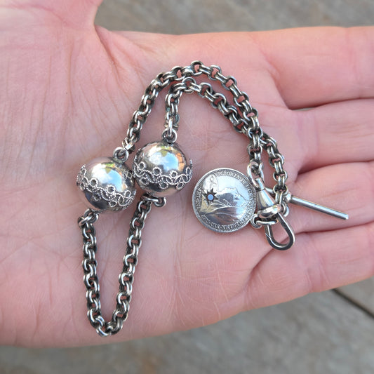Antique 1899 Hallmarked Solid Sterling Silver Double Albert Curb Chain Necklace 14.5''
