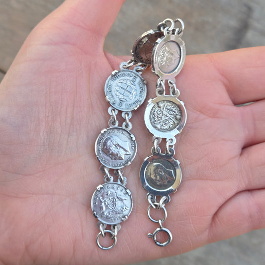 Antique Vintage 1987 Hallmarked Solid Sterling Silver 1912 Threepenny Bit Coin Bracelet 18g