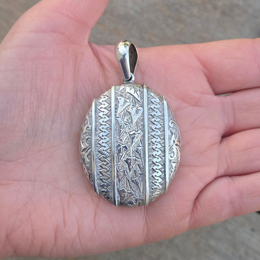 Antique Victorian Solid Silver Large Engraved Ivy Locket Pendant 28g for Chain Necklace