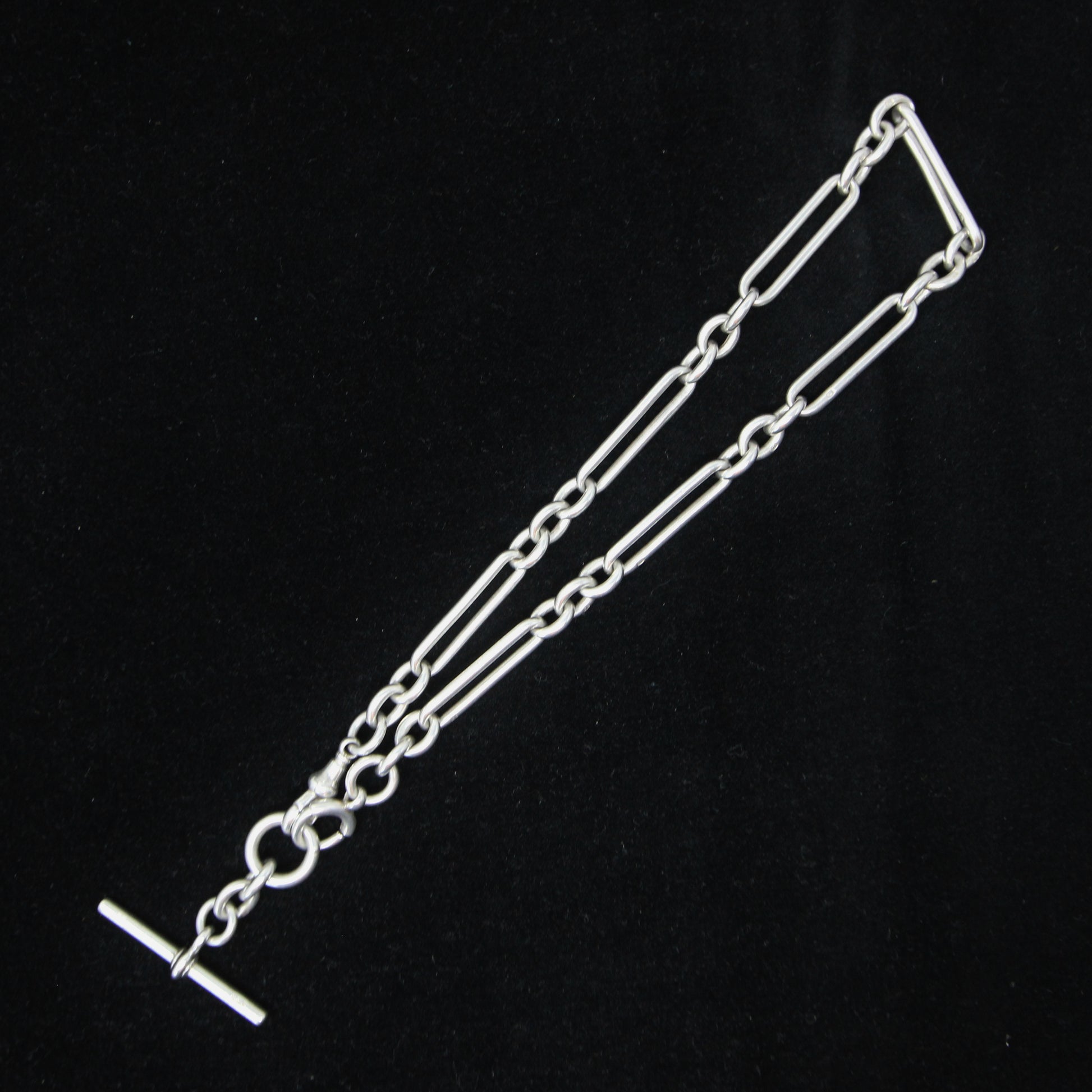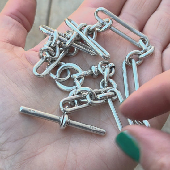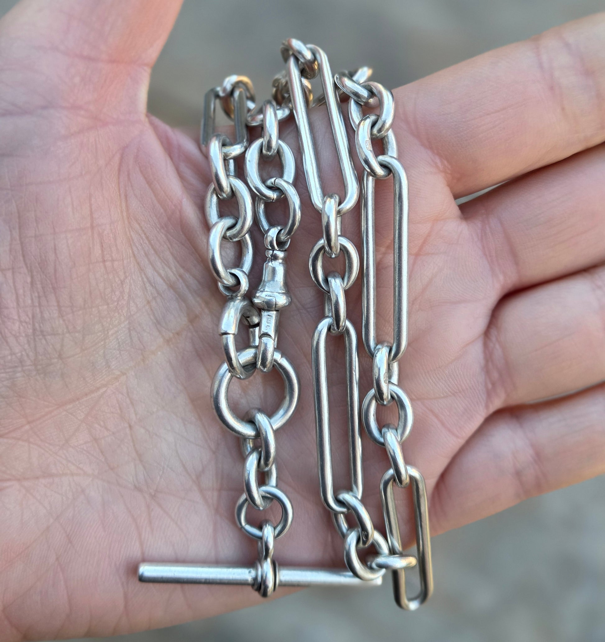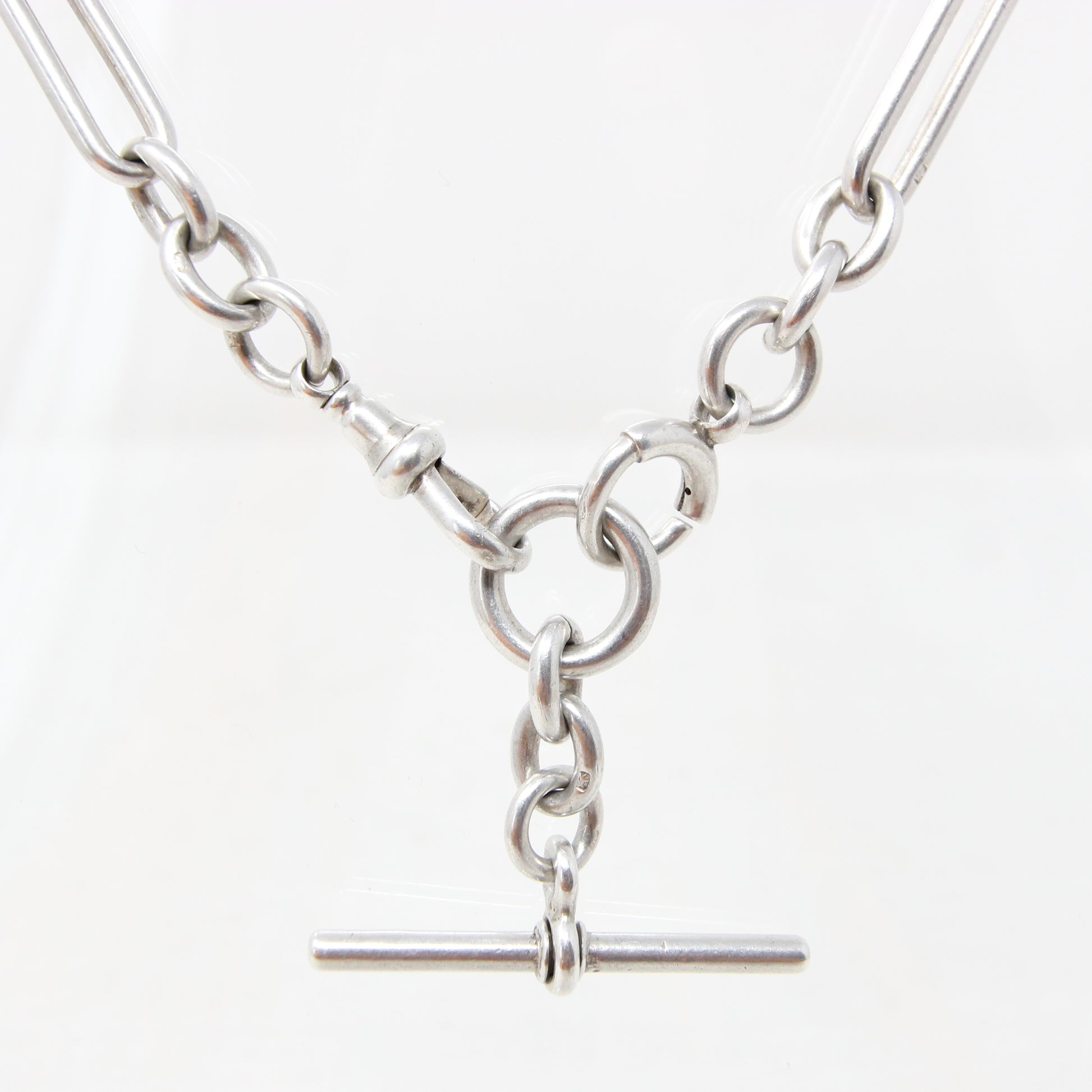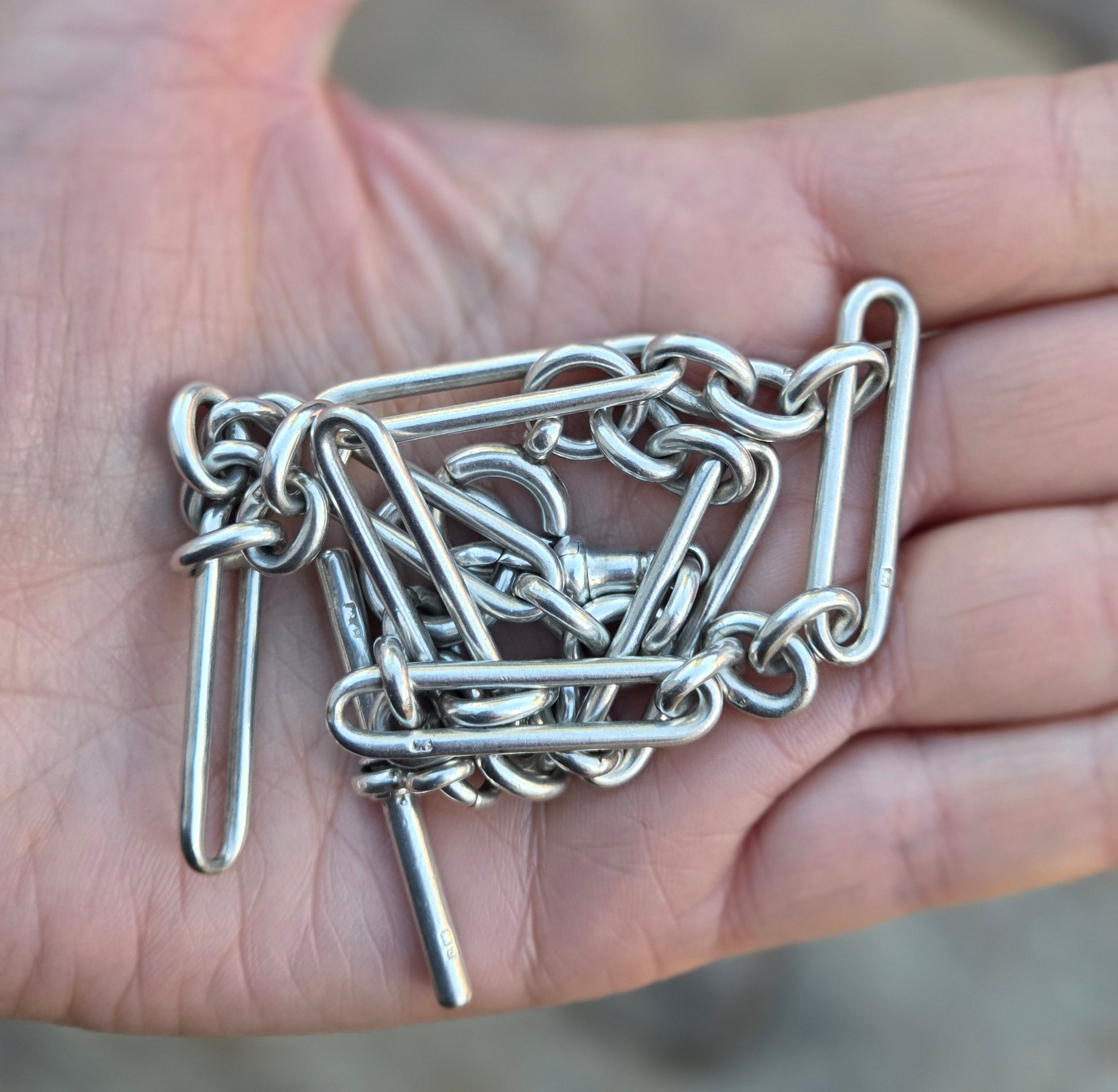 Antique 1876 Hallmarked Solid Sterling Silver Trombone Double Albert Chain Necklace 17'' 57g
