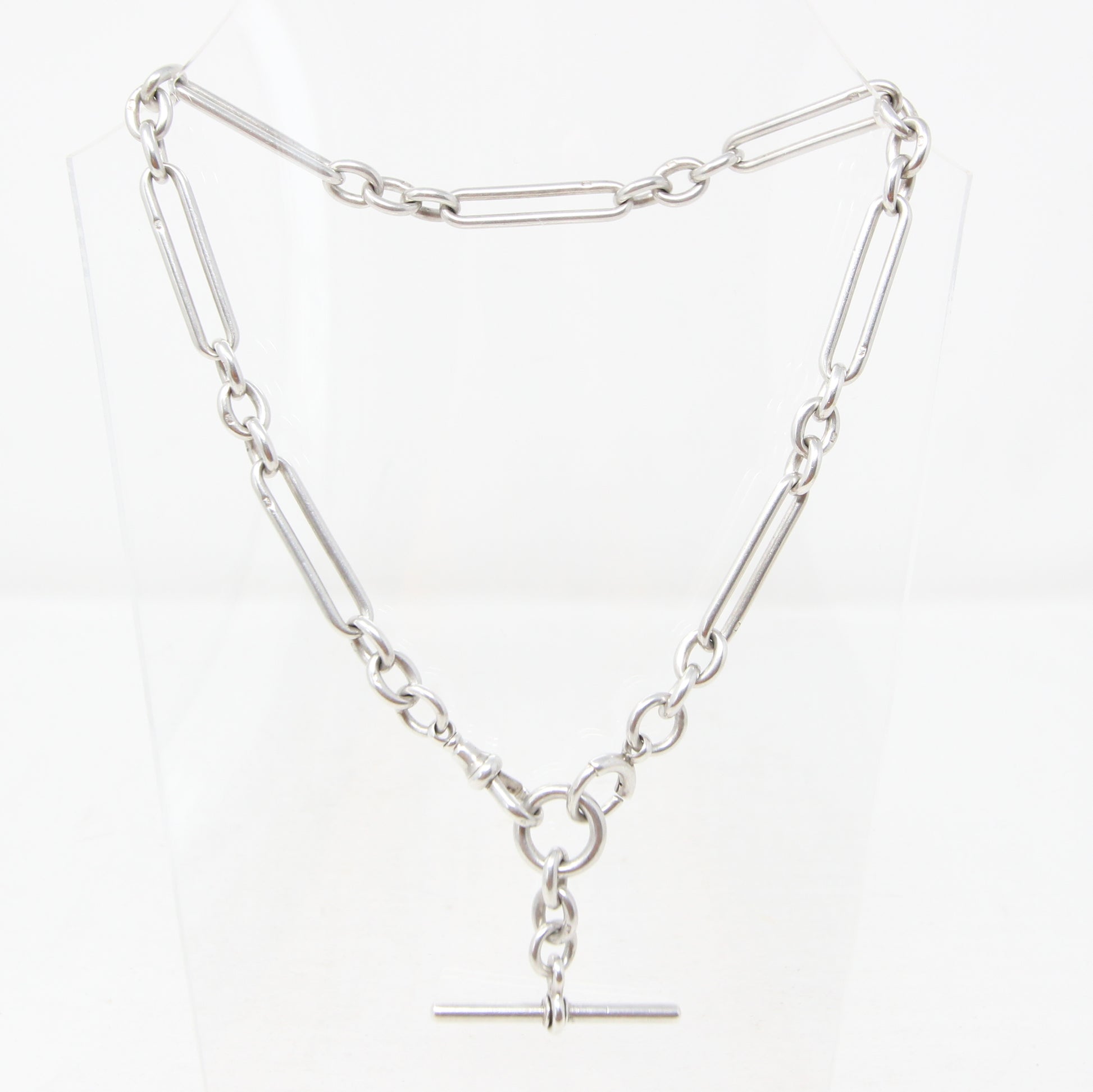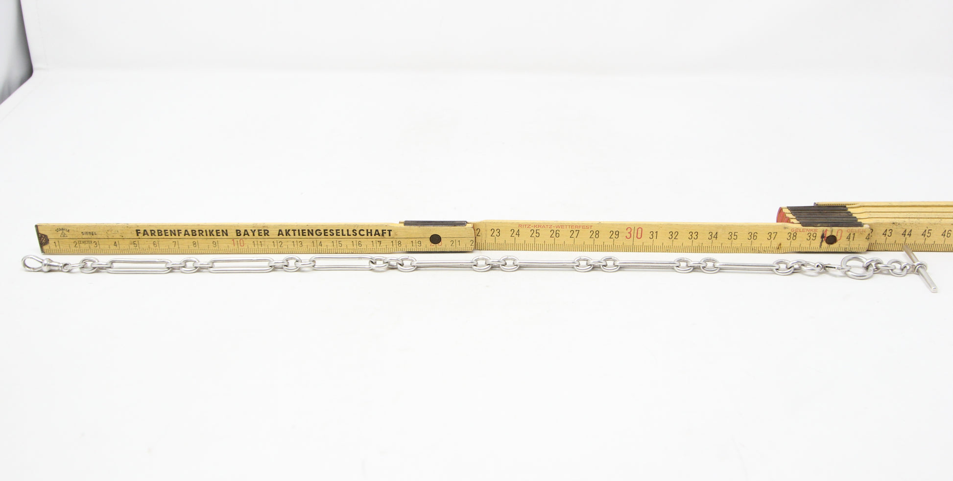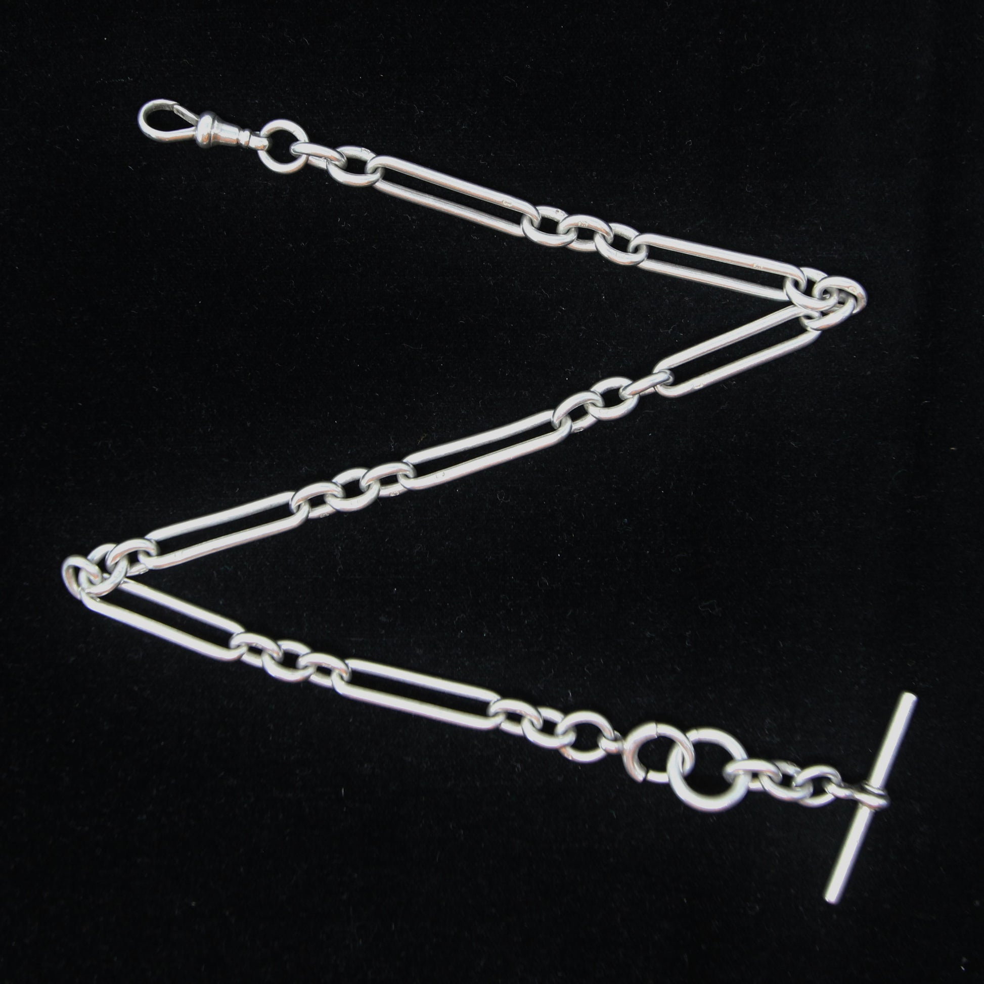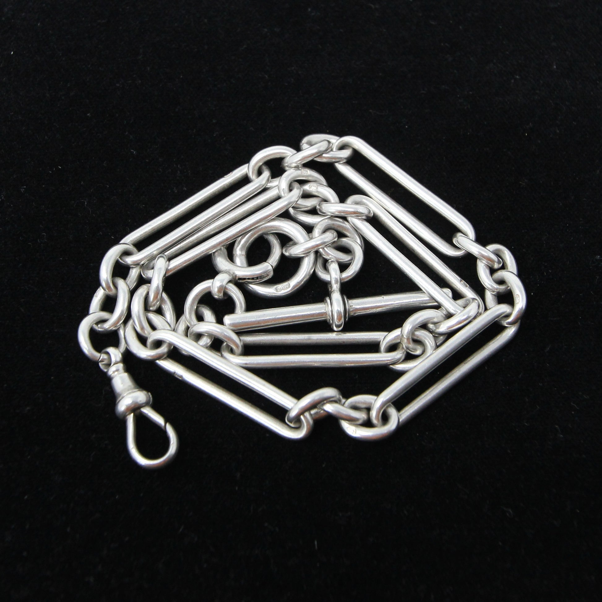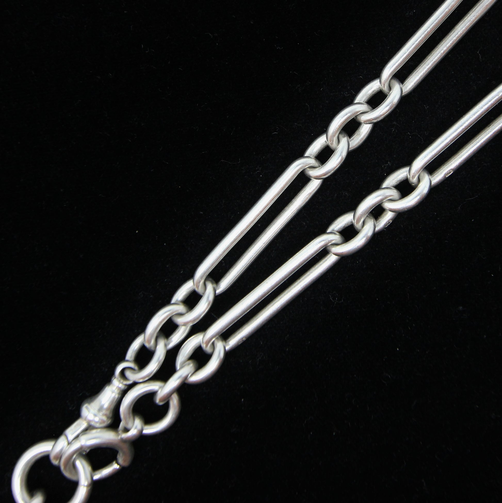 Antique 1876 hallmarked solid silver trombone double Albert chain 17 inches long.