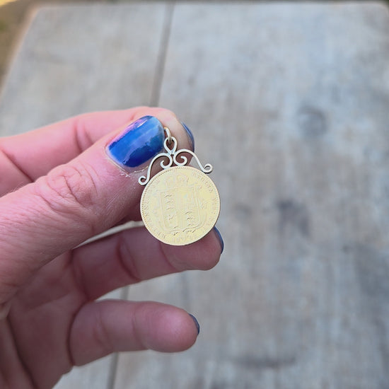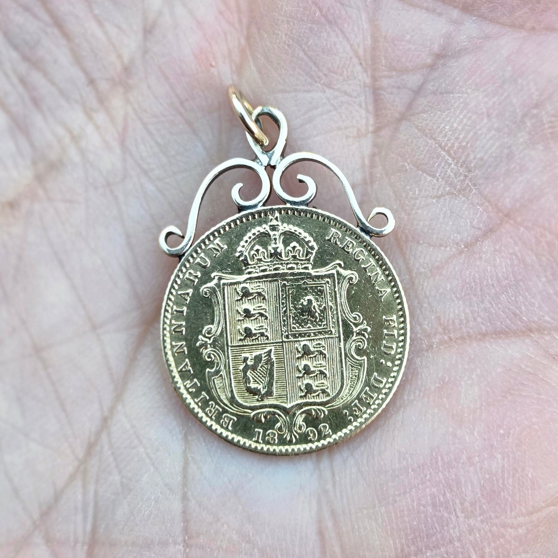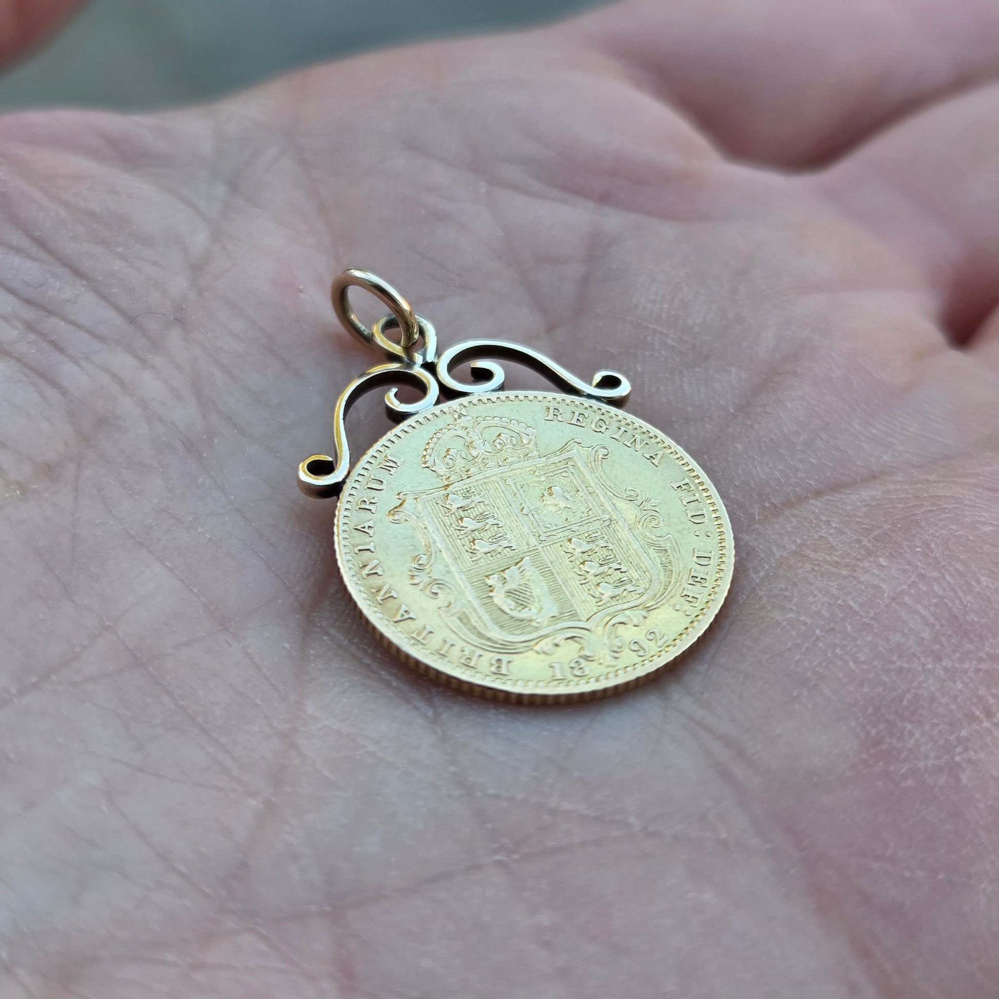 Antique 1892 solid 22ct half sovereign with solid 9ct gold mount pendant.