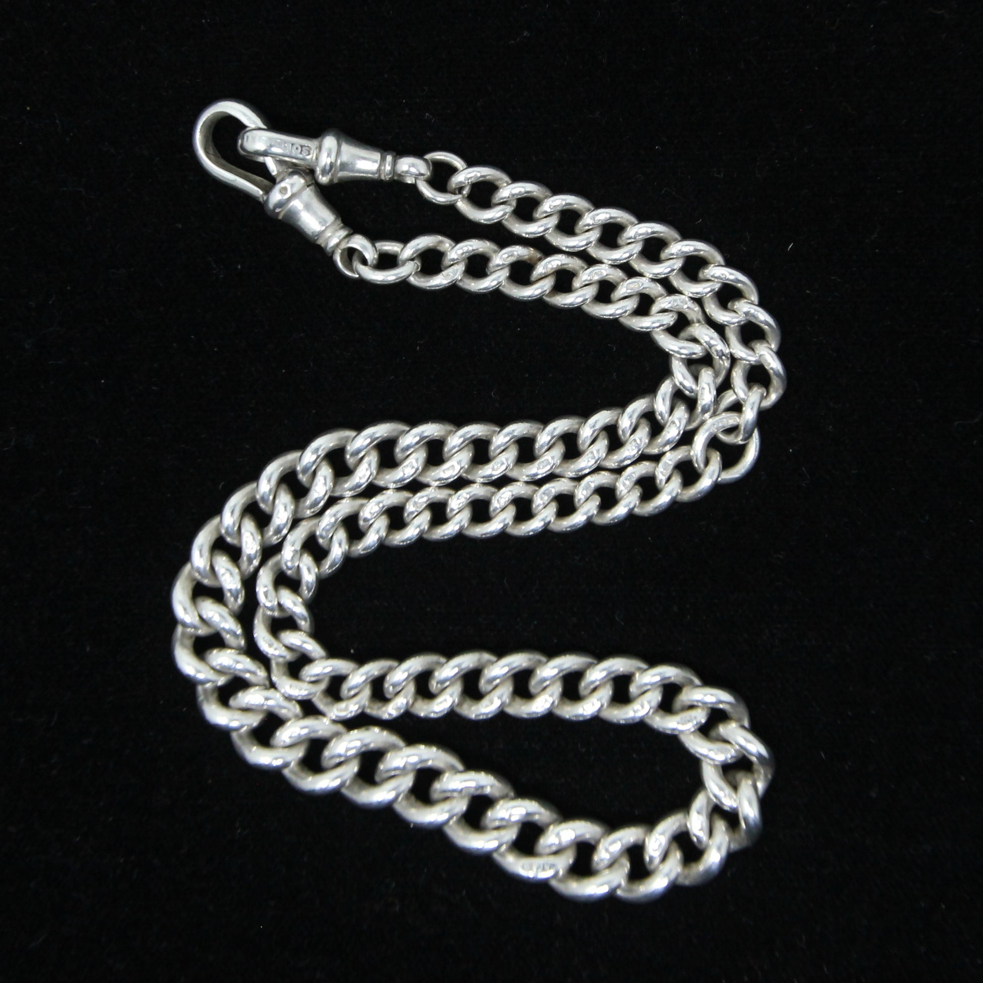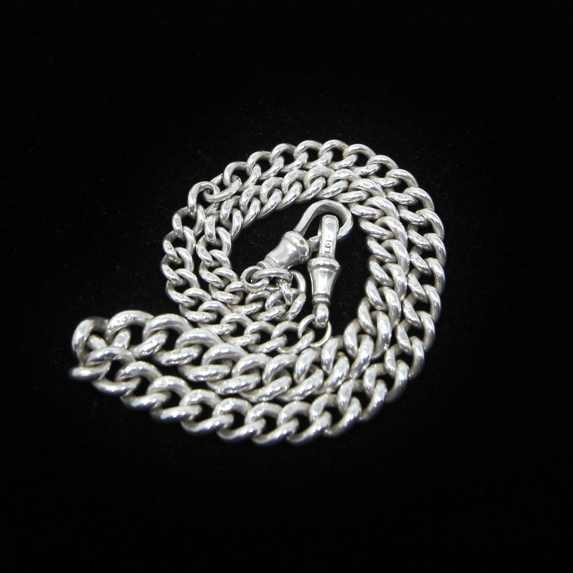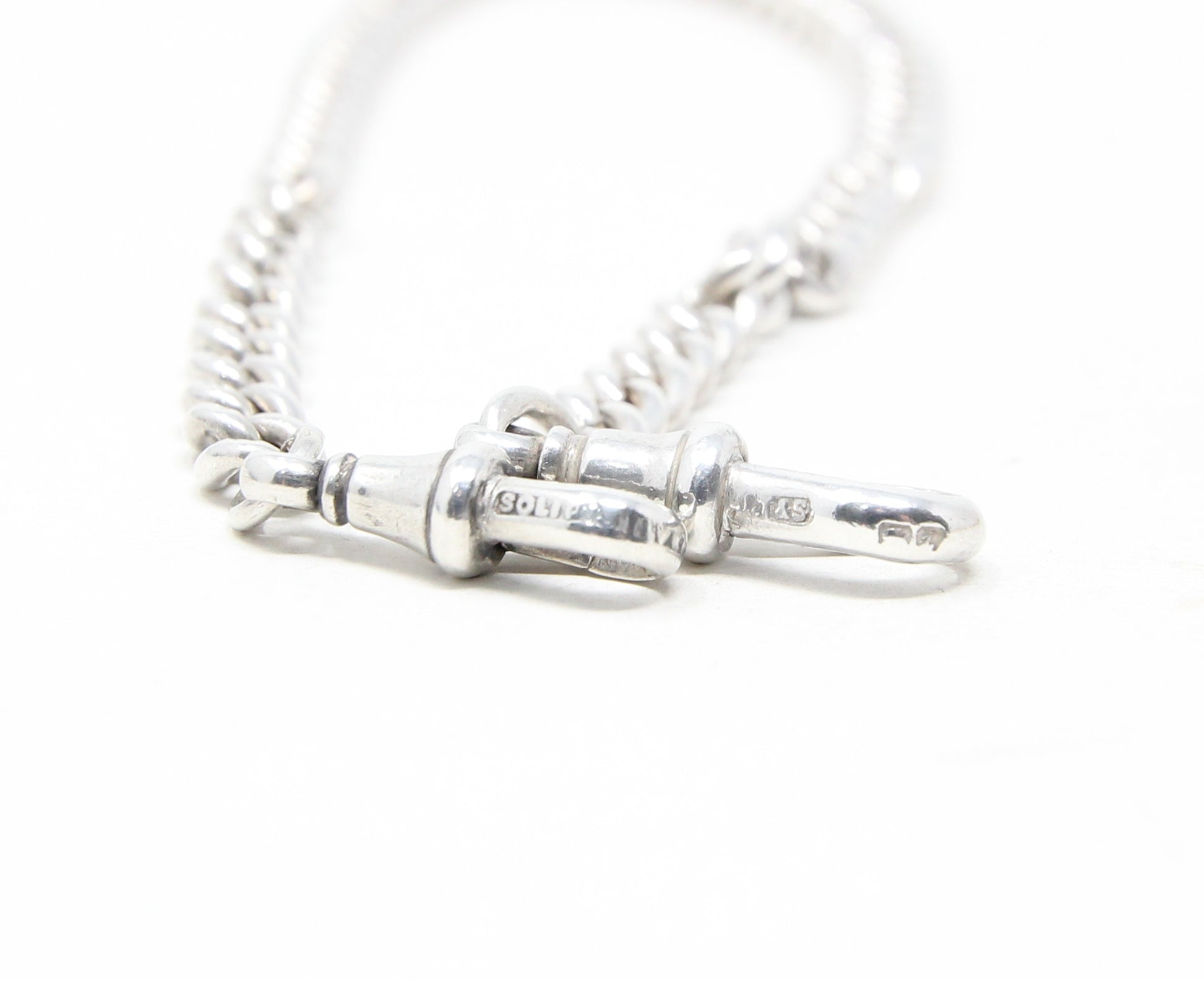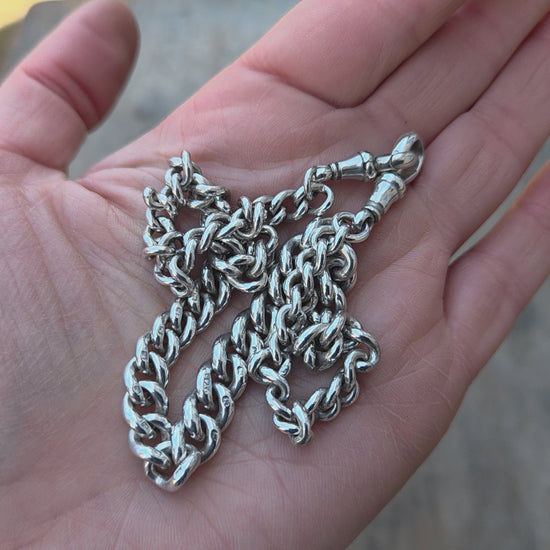 Antique 1899 hallmarked solid silver double Albert chain 14.5 inches long.