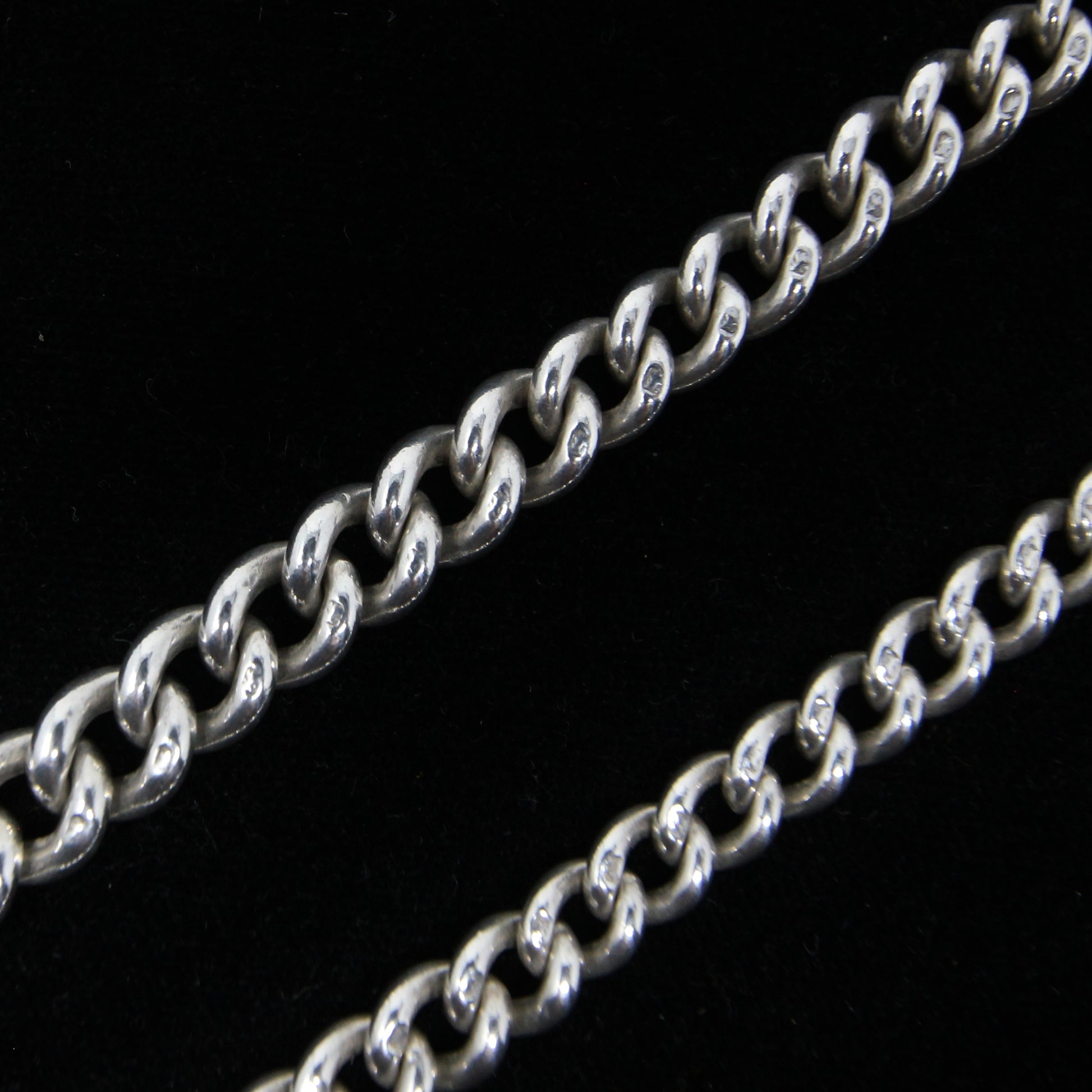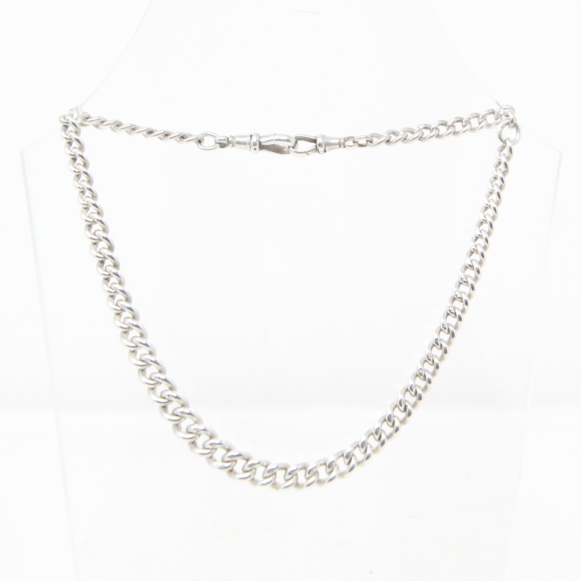 Antique 1899 Hallmarked Solid Sterling Silver Double Albert Curb Chain Necklace 14.5''