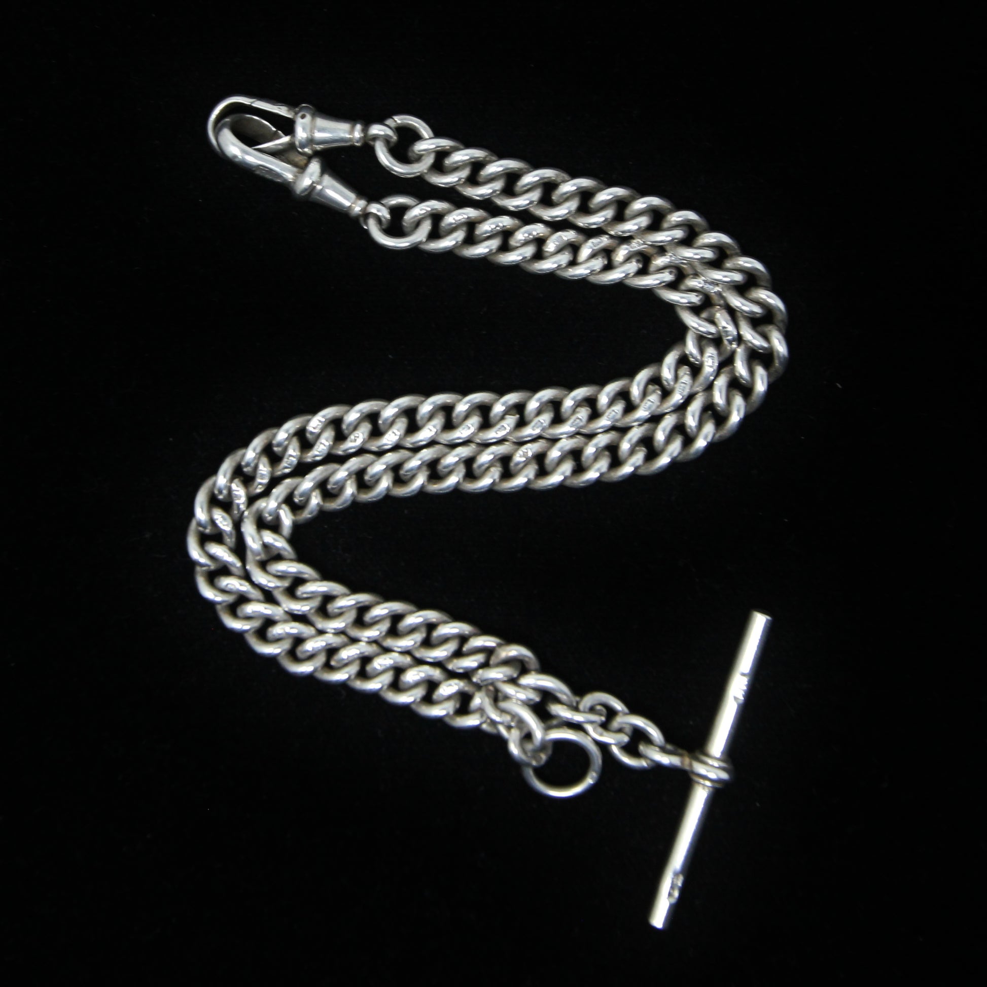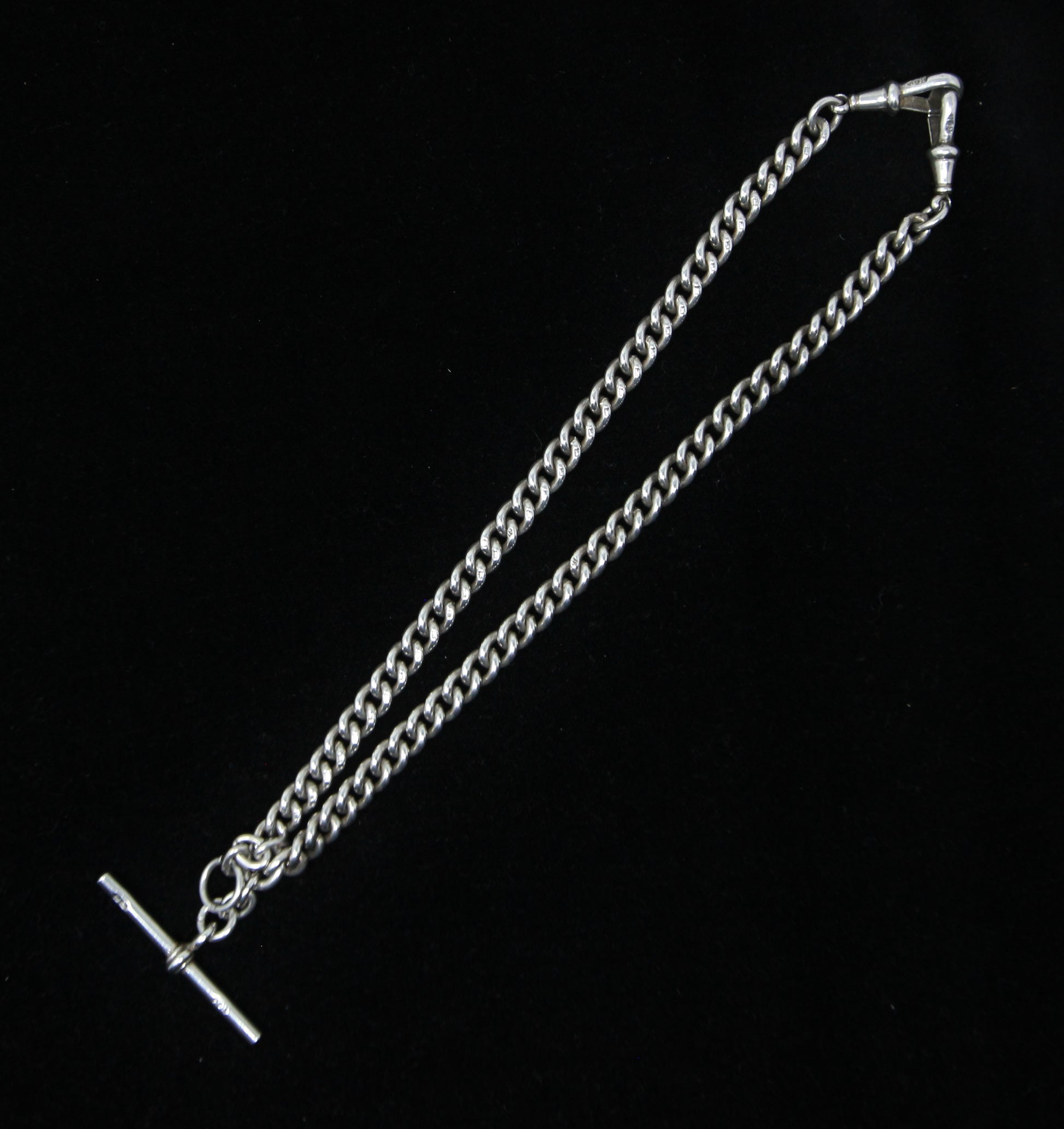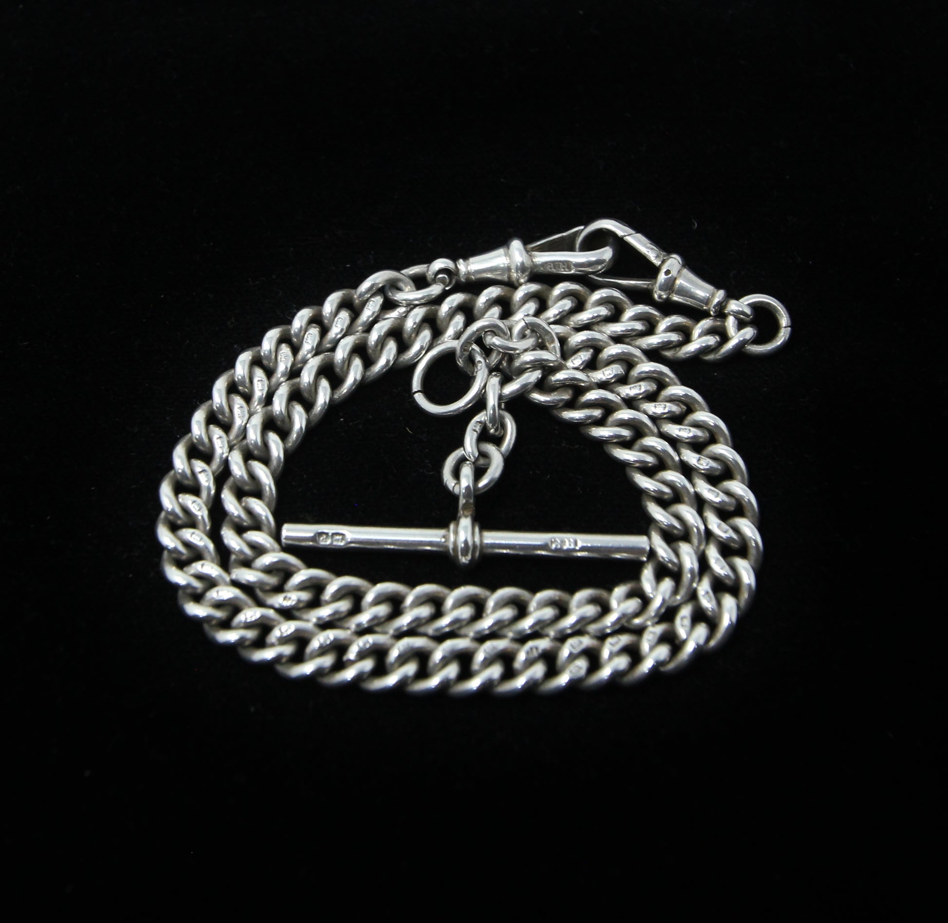 Antique 1914 hallmarked solid silver double Albert chain 14 inches long.