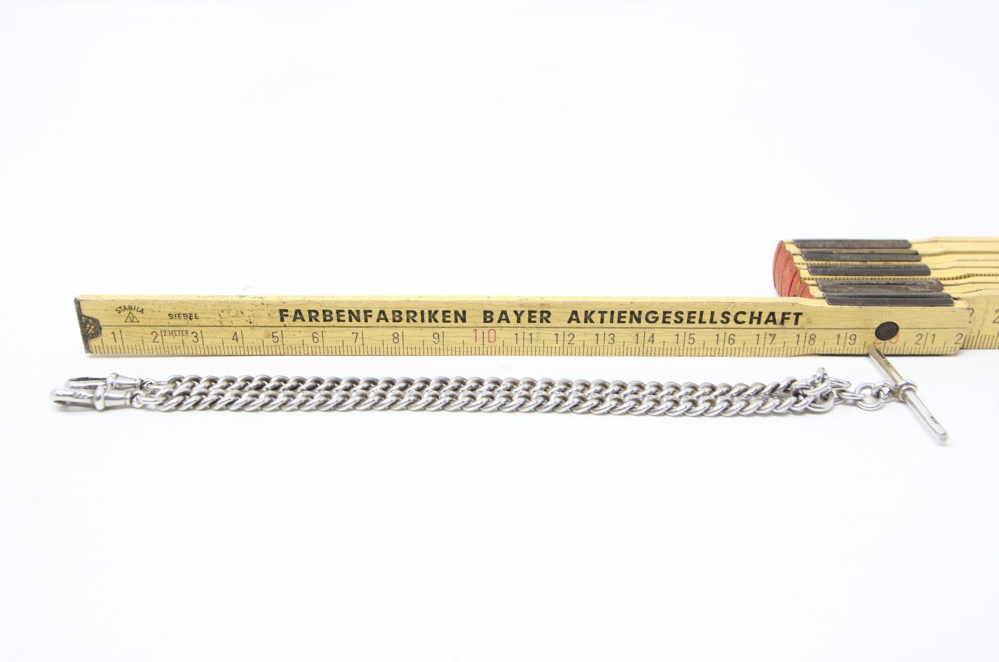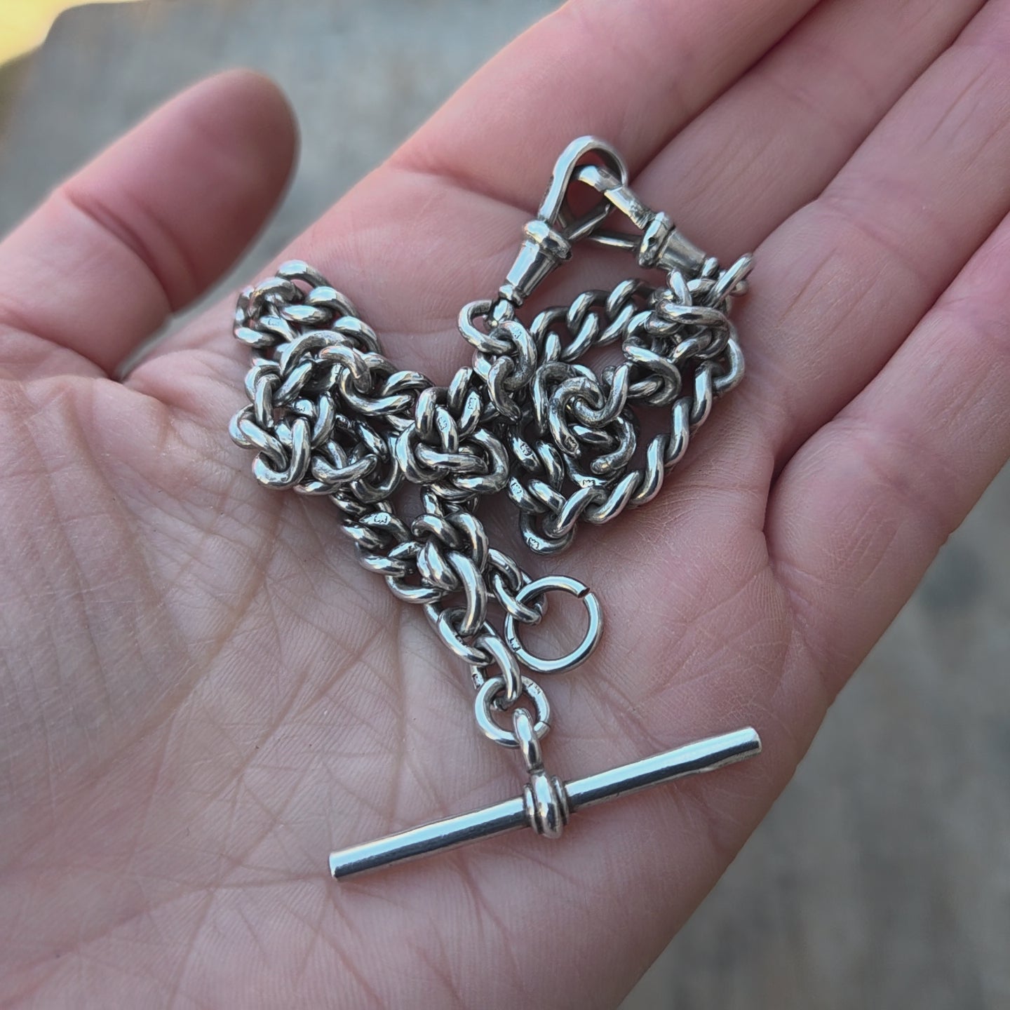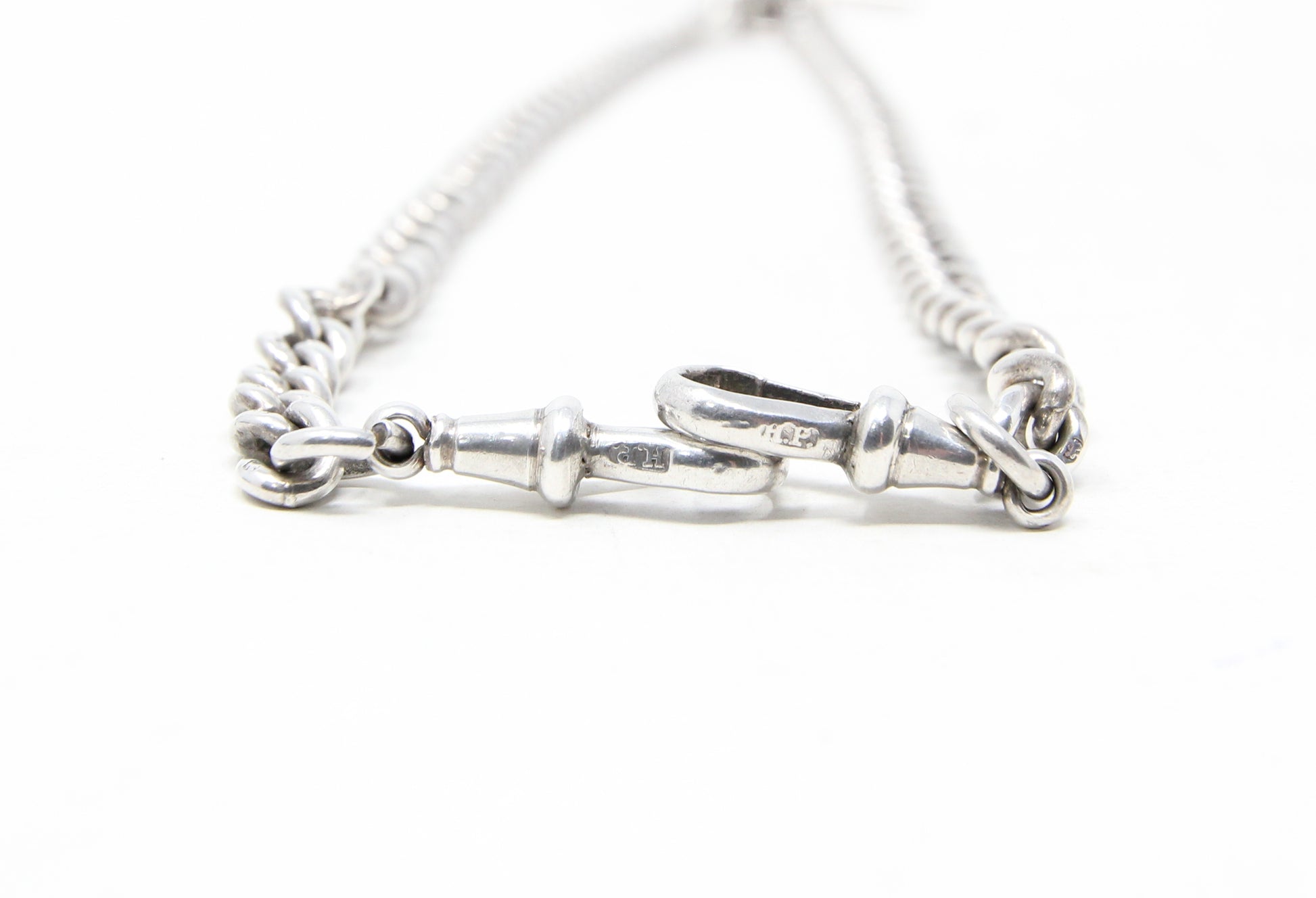 Antique 1914 hallmarked solid silver double Albert chain 14 inches long.