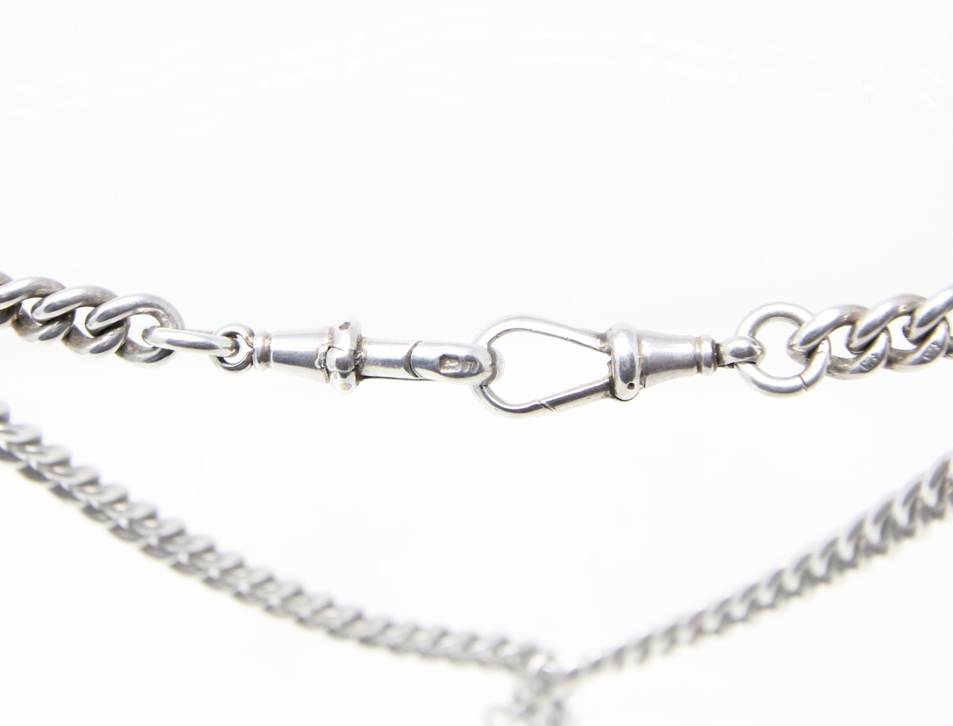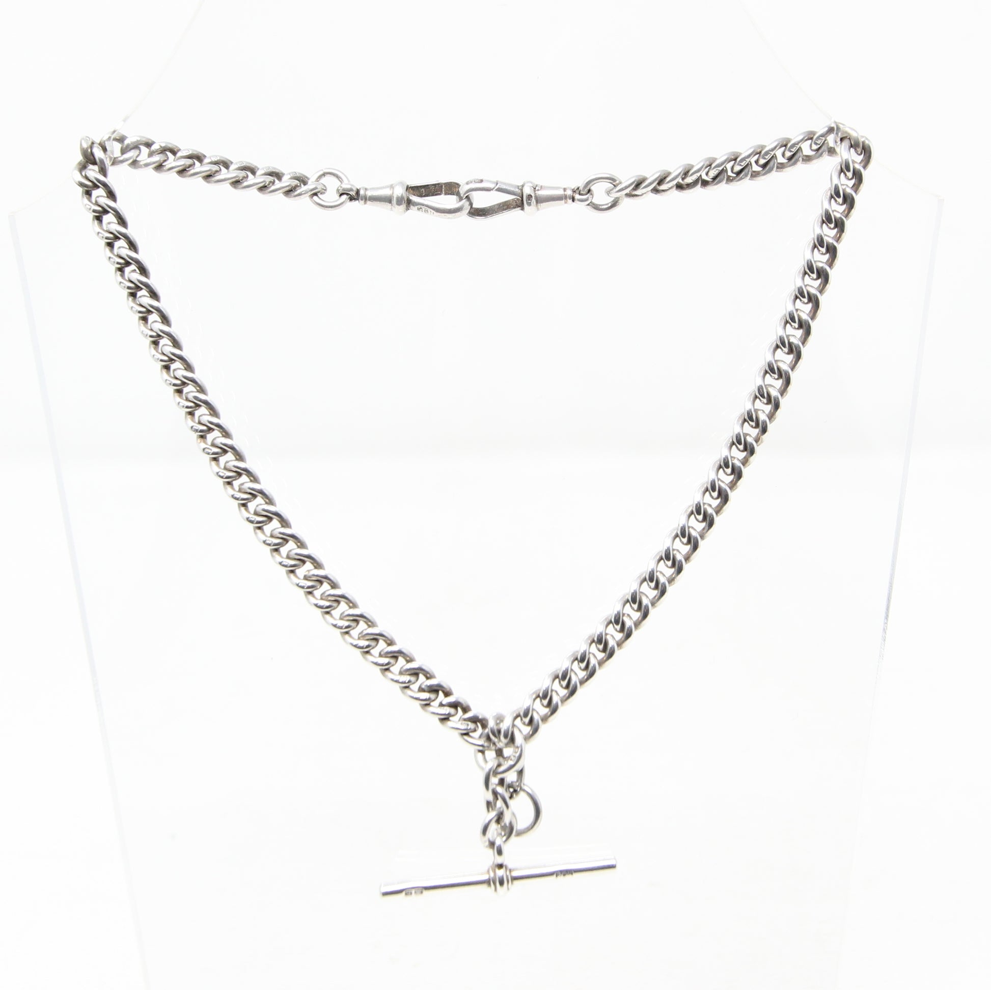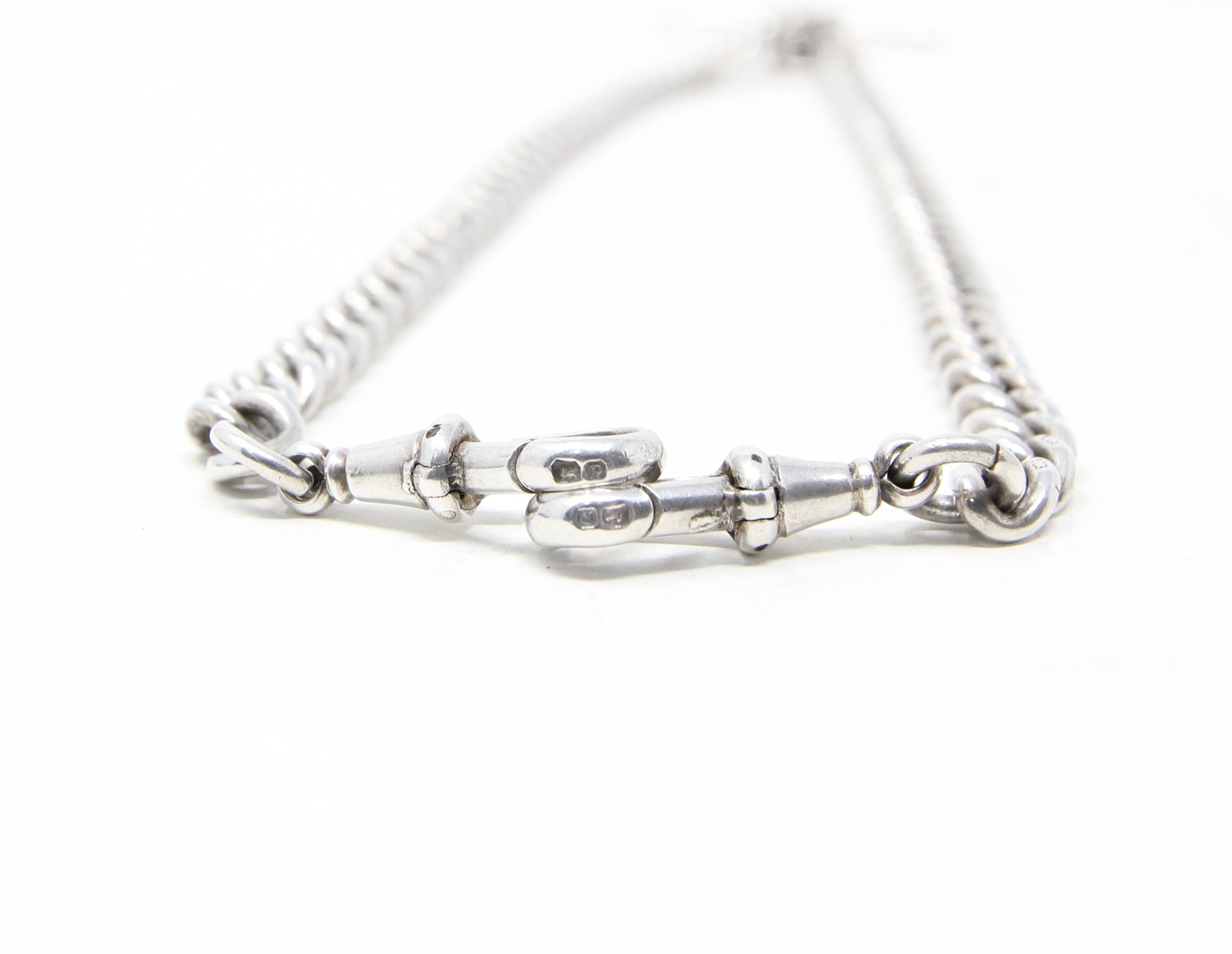 English Hallmarks to the dog clips, central jump ring & T bar.