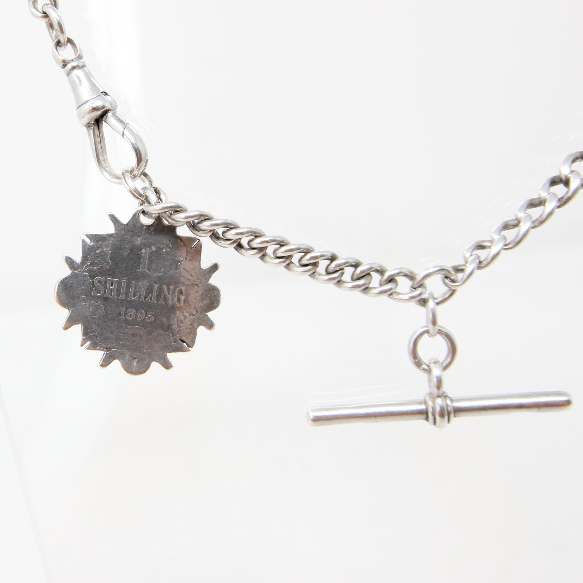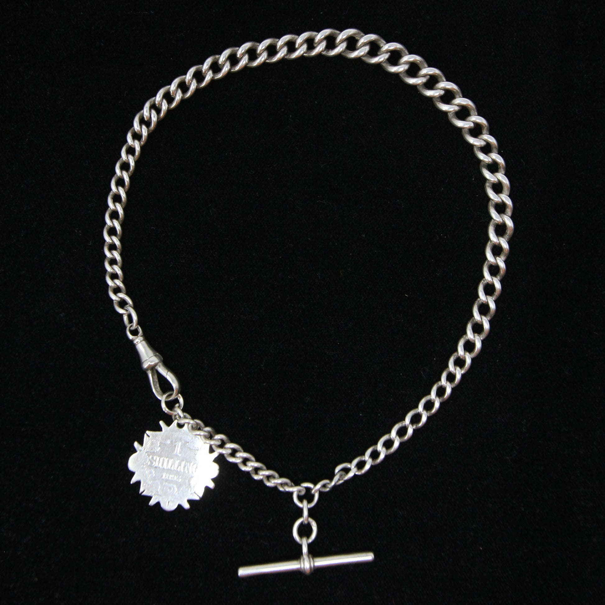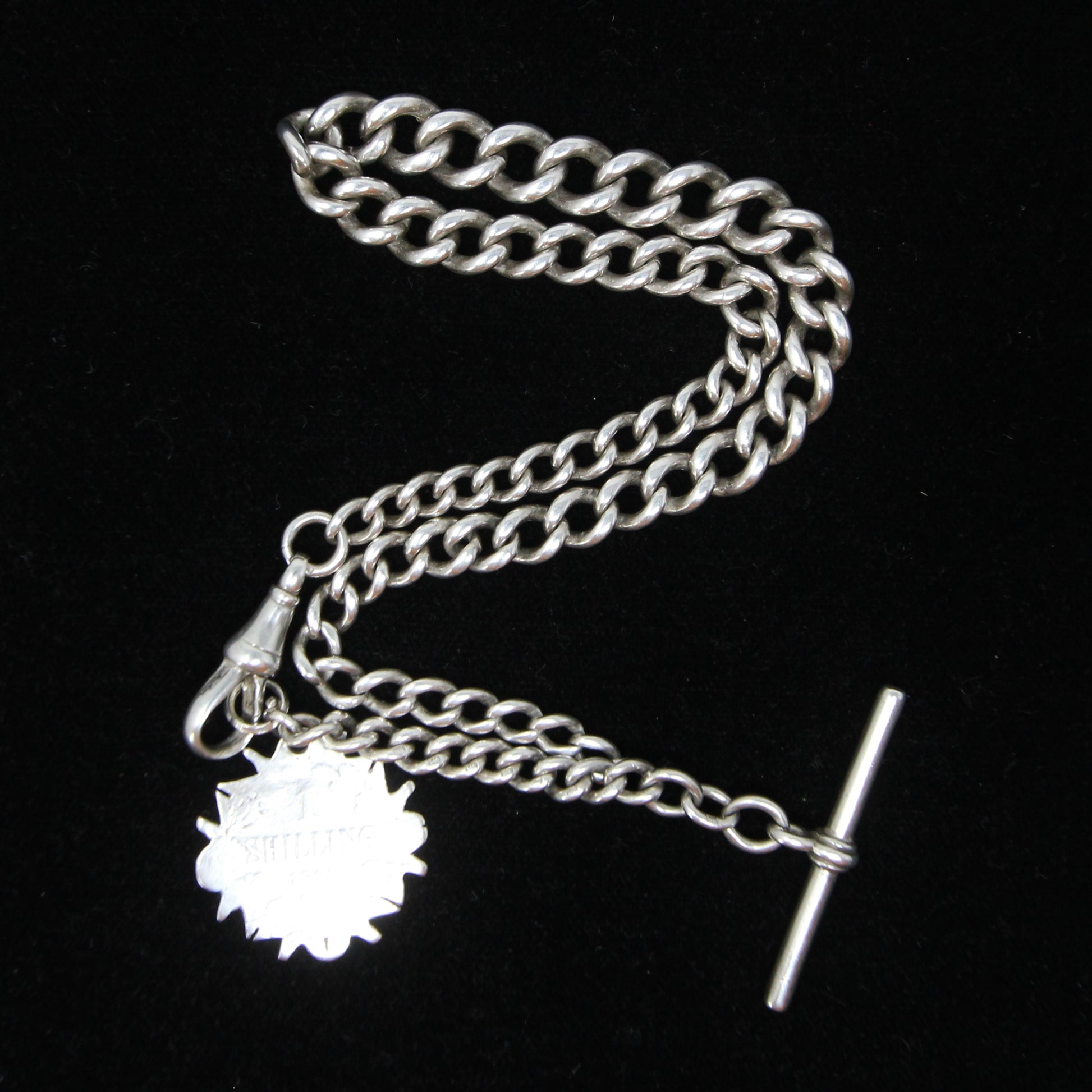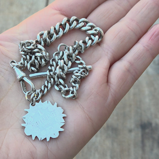 Antique 1914 Hallmarked Solid Sterling Silver Single Albert Curb Chain Shilling Fob 13'' 33g
