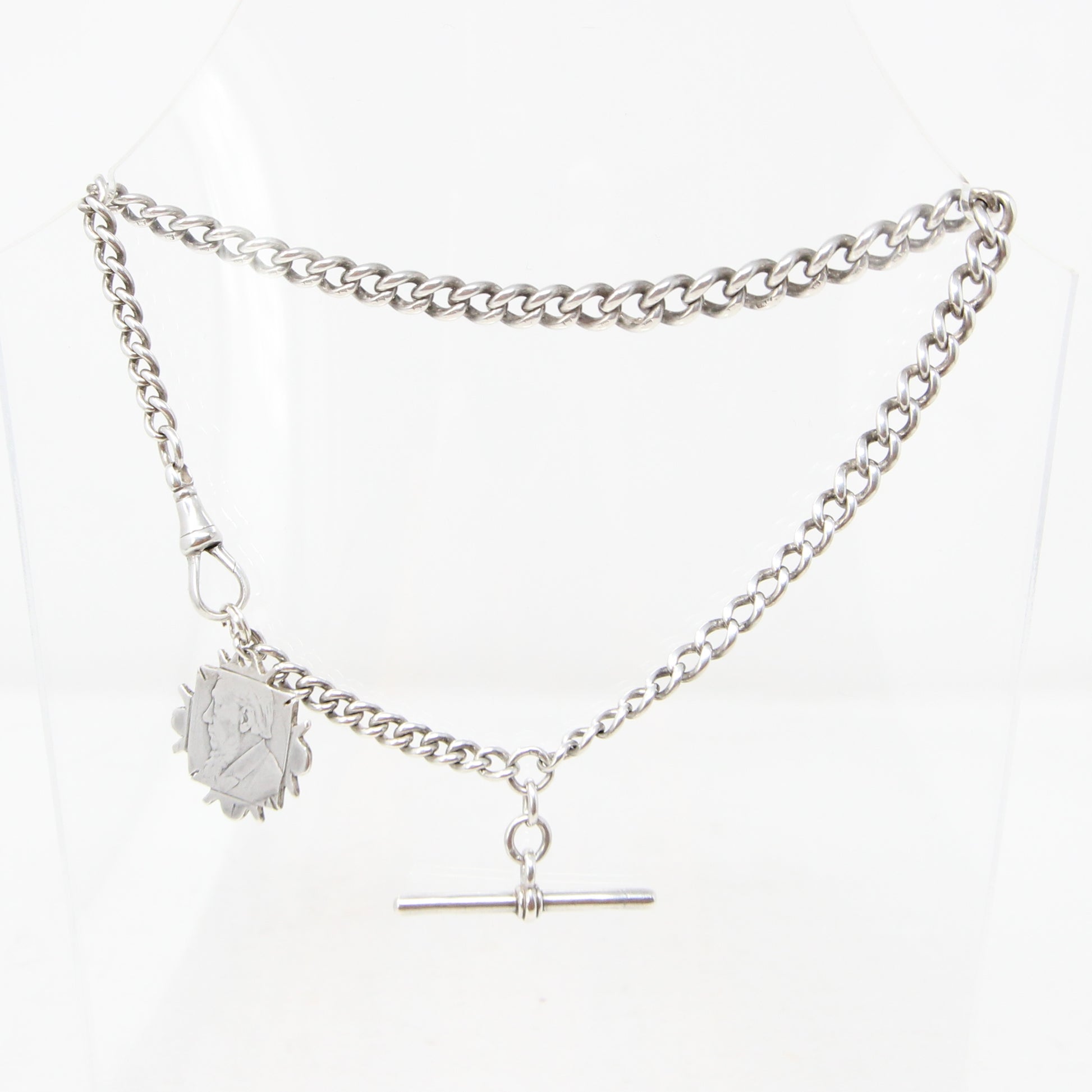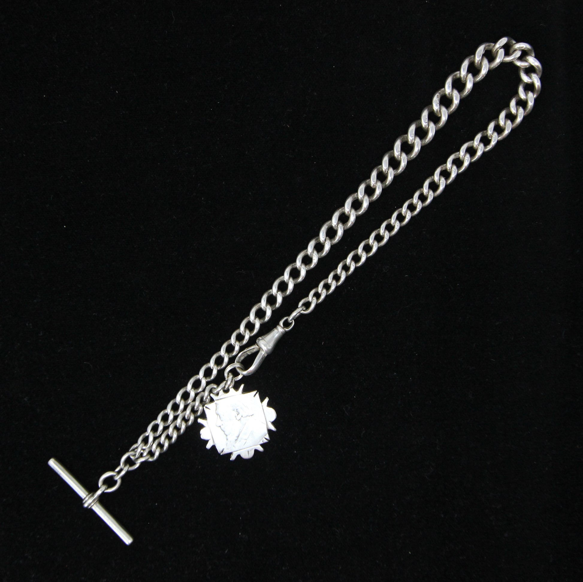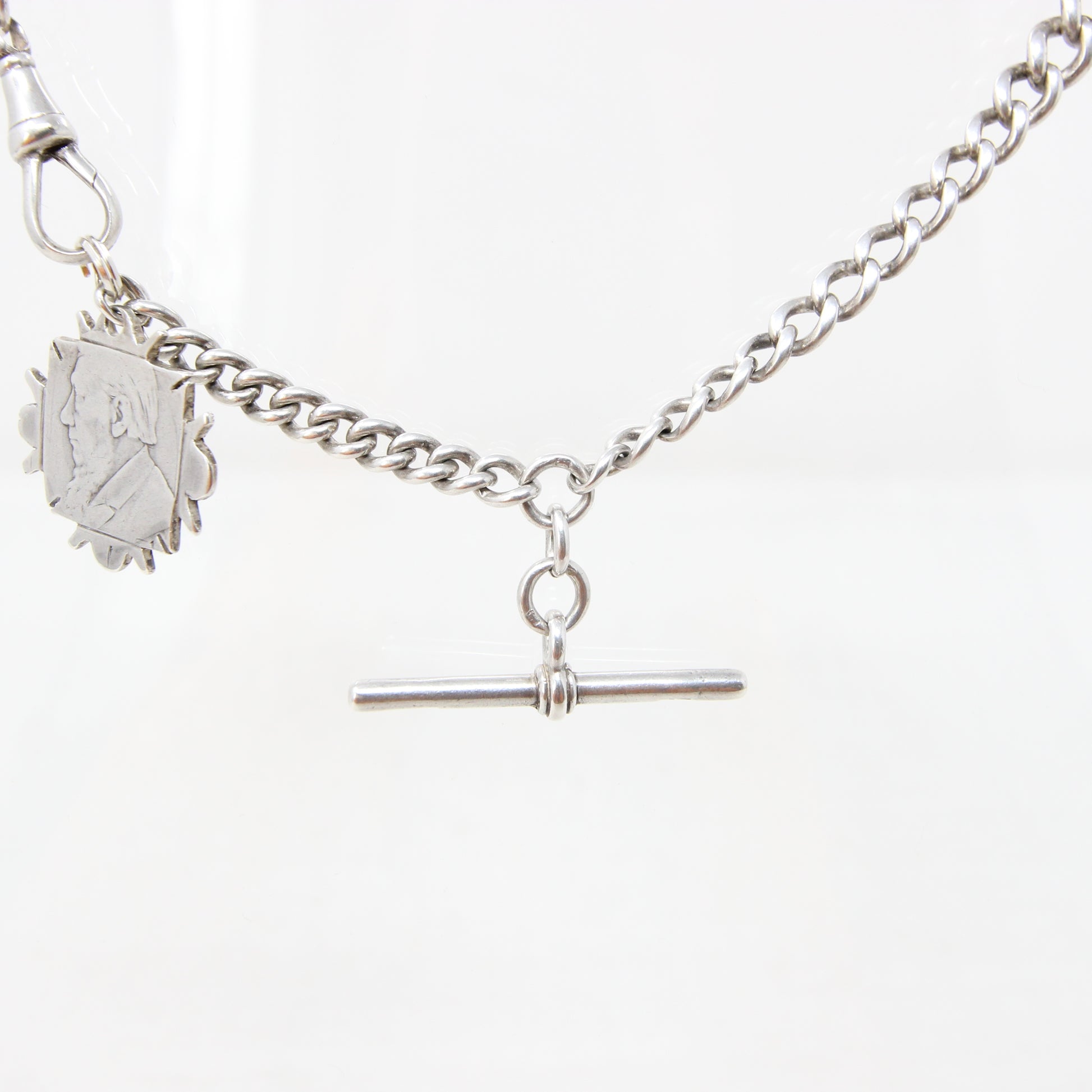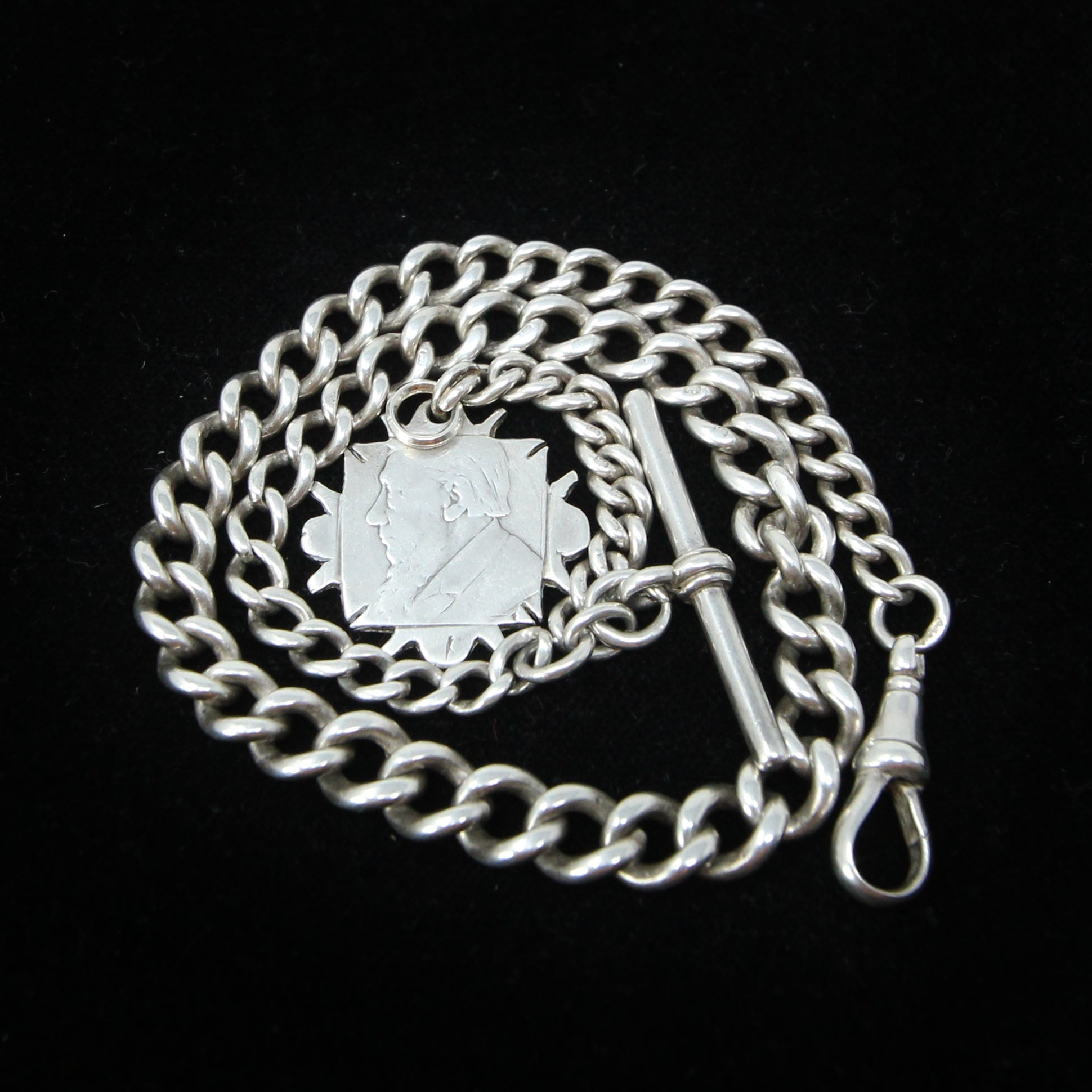 Antique 1914 Hallmarked Solid Sterling Silver Single Albert Curb Chain Shilling Fob 13'' 33g