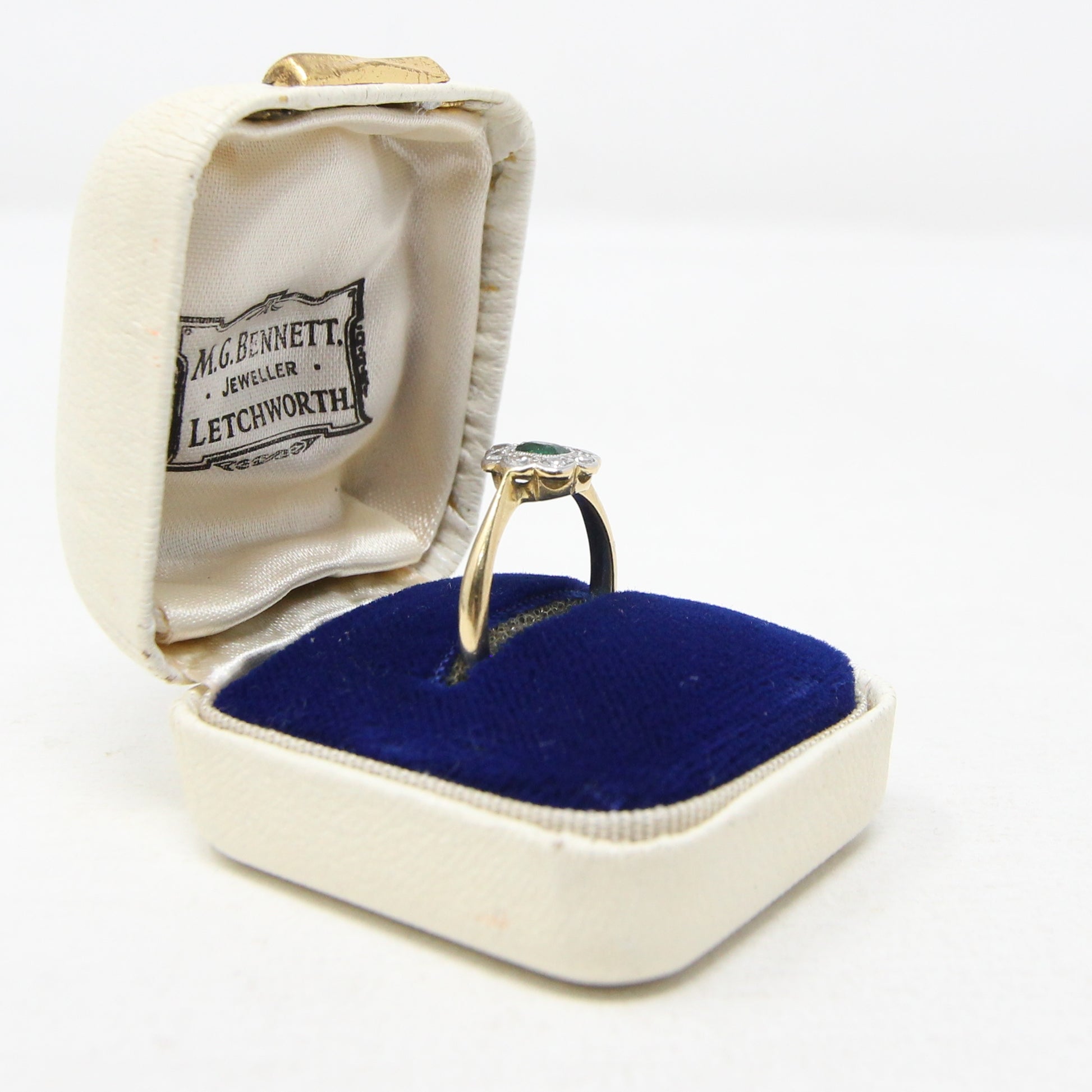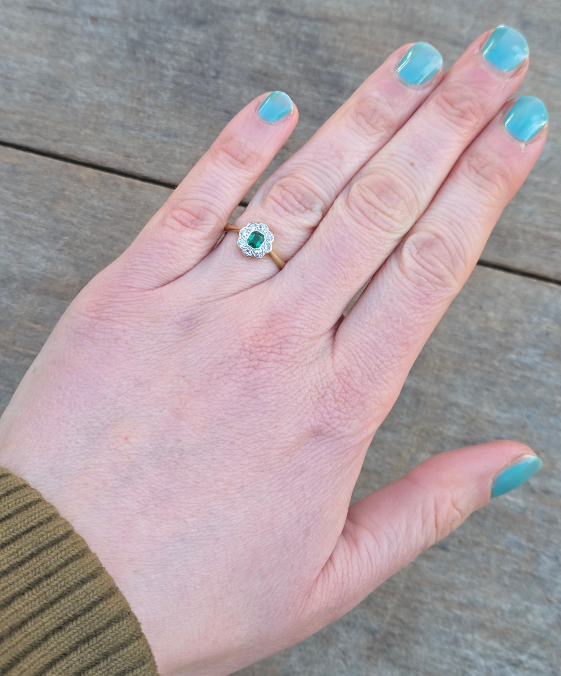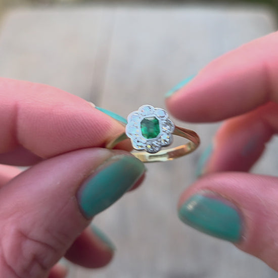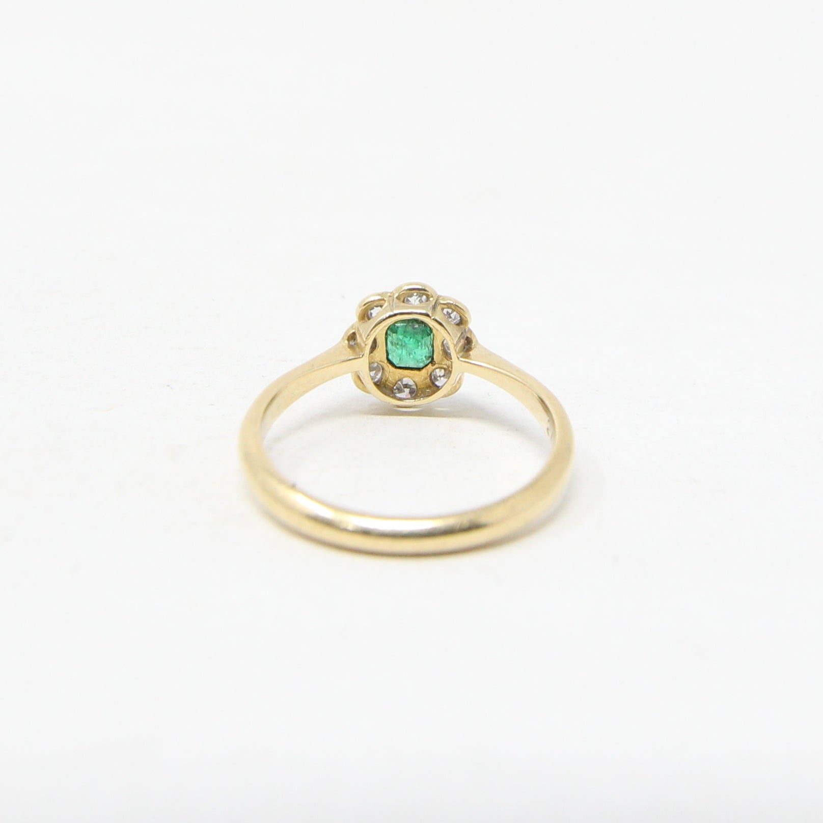 Antique Art Deco Hallmarked Solid 18ct 18k Gold Emerald Diamond Daisy Ring Size M