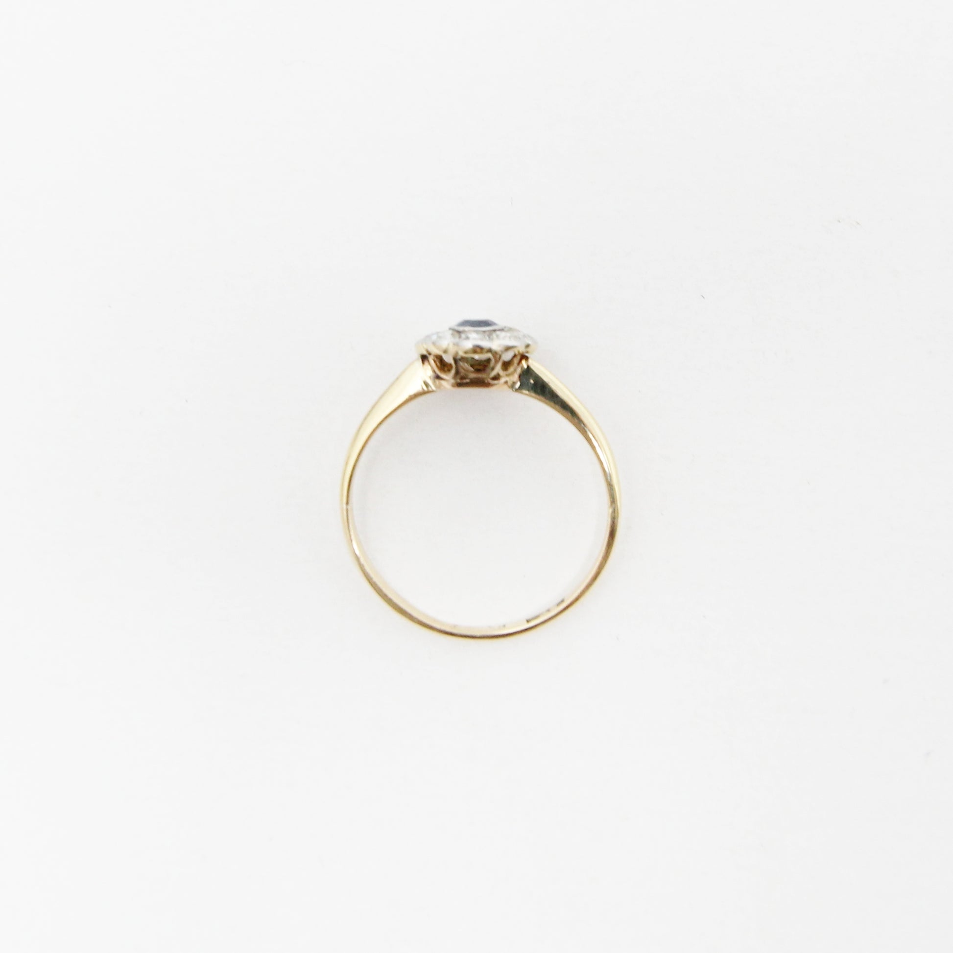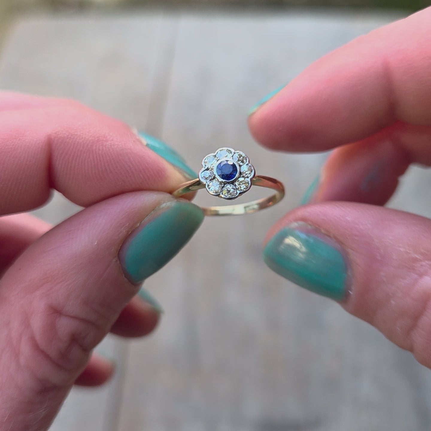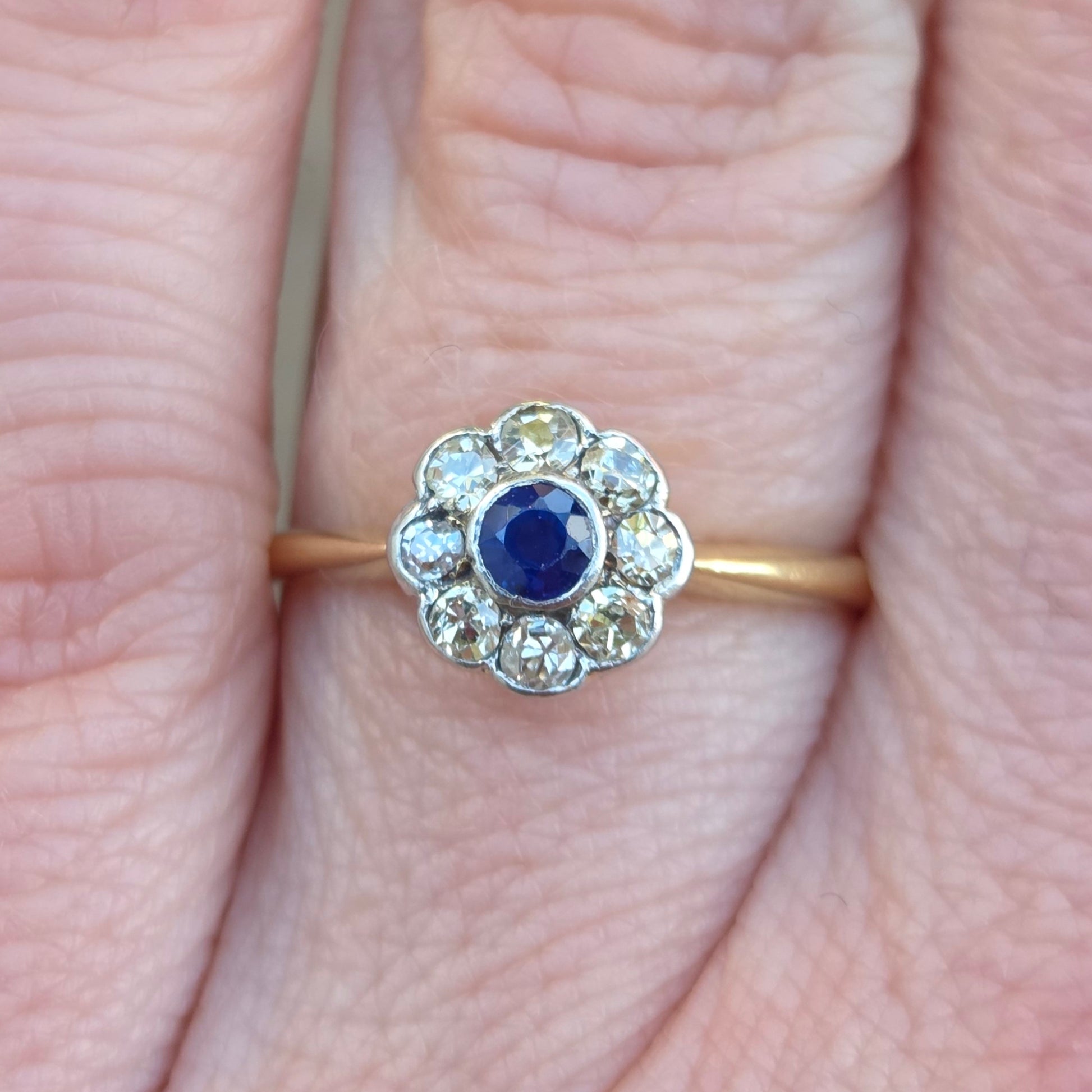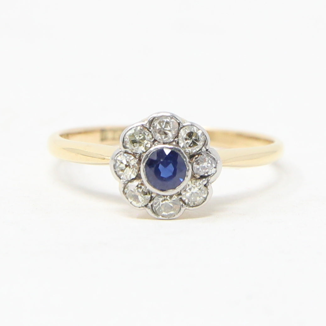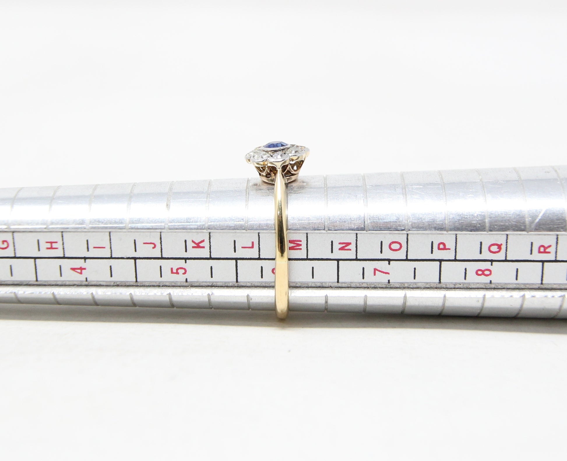 Antique Art Deco Hallmarked Solid 18ct 18k Gold Sapphire Diamond Daisy Ring Size L 1/2