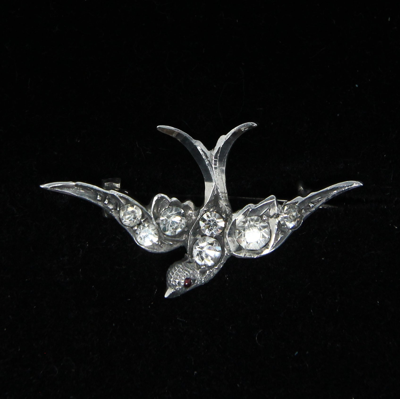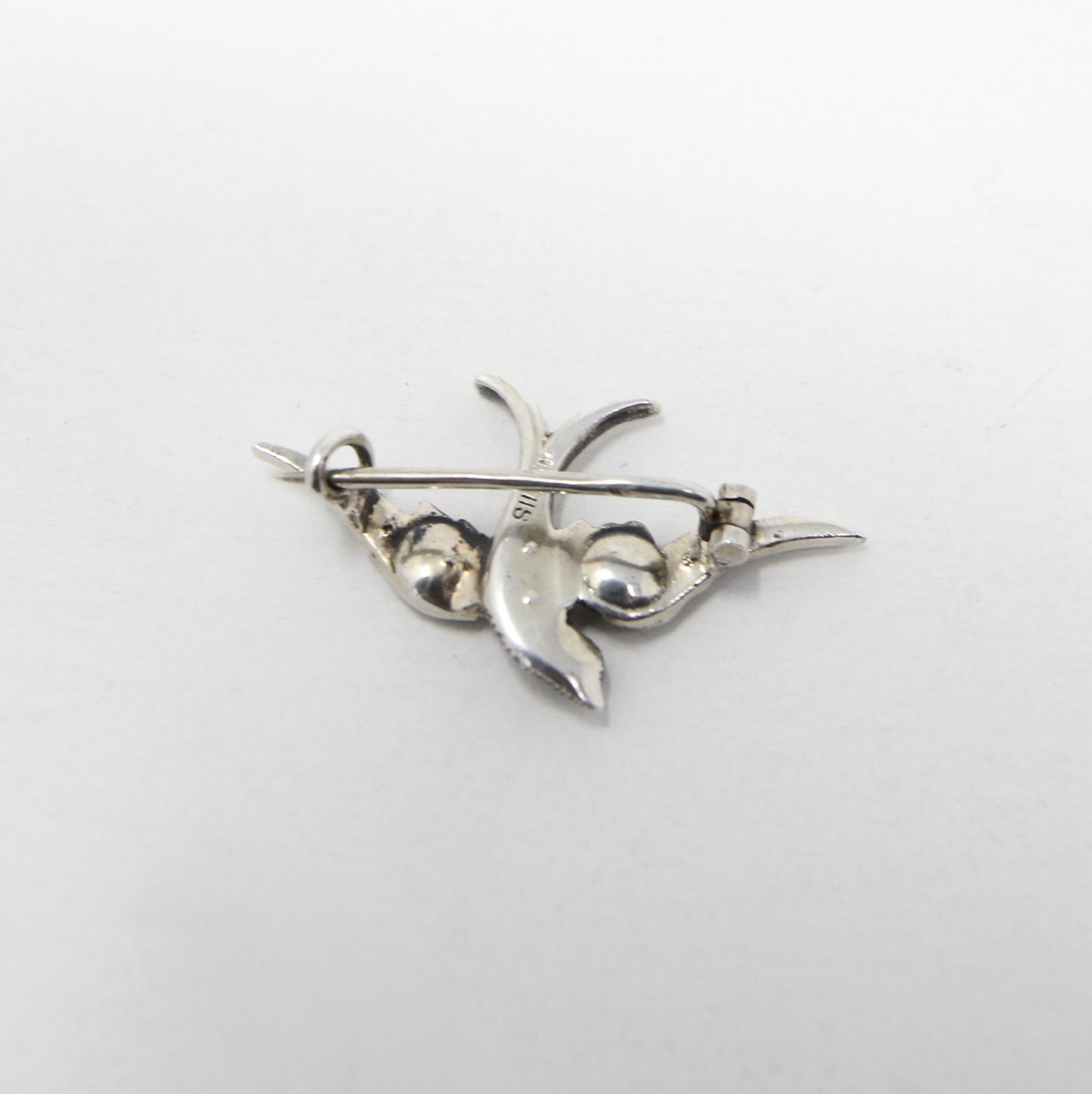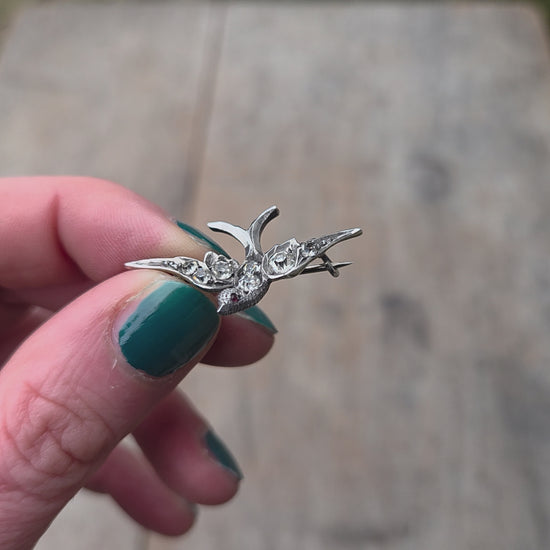 Antique Art Deco solid Sterling silver paste swallow bird brooch.