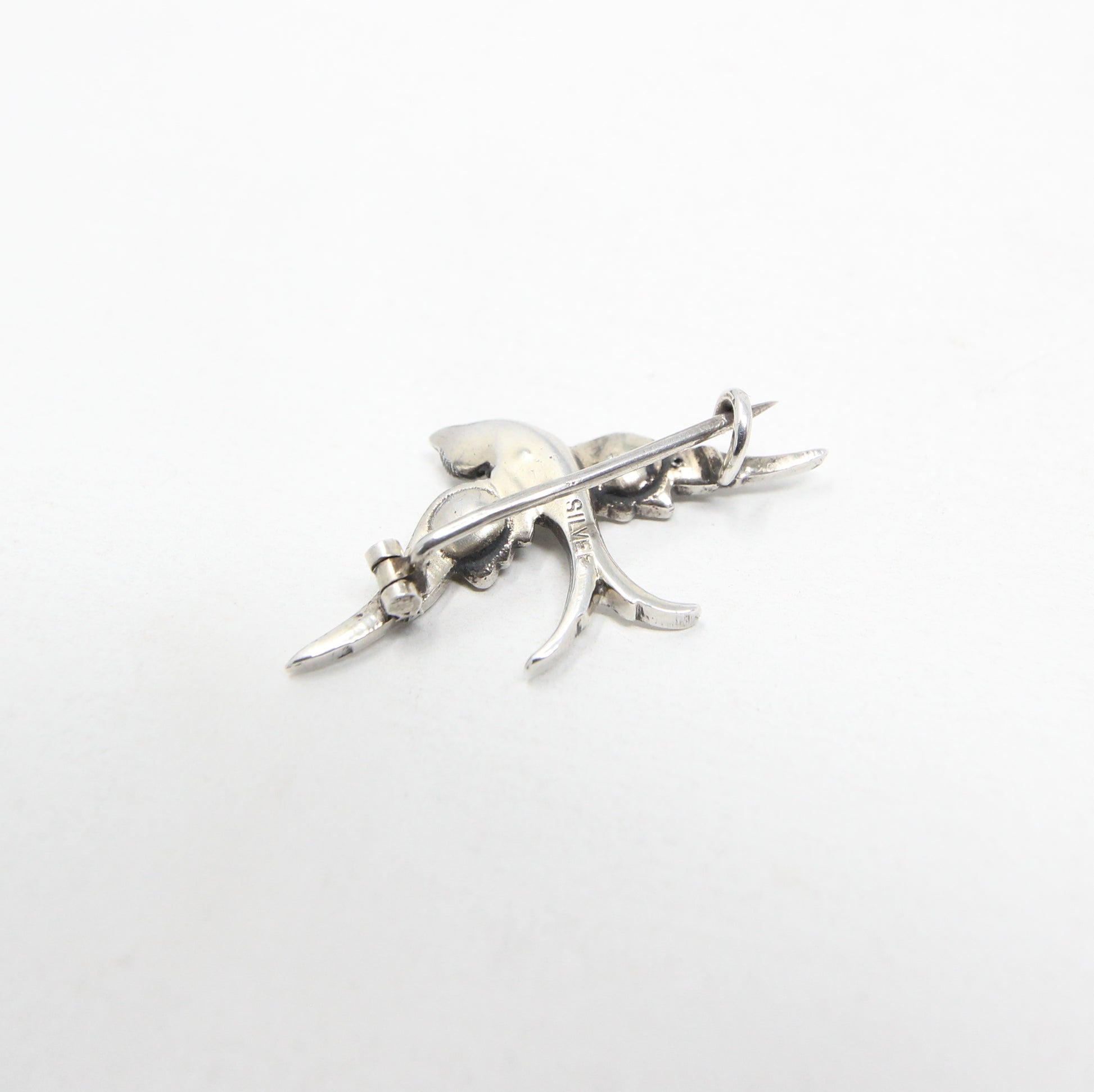 Antique Art Deco Solid Sterling Silver Paste Engraved Swallow Bird Brooch
