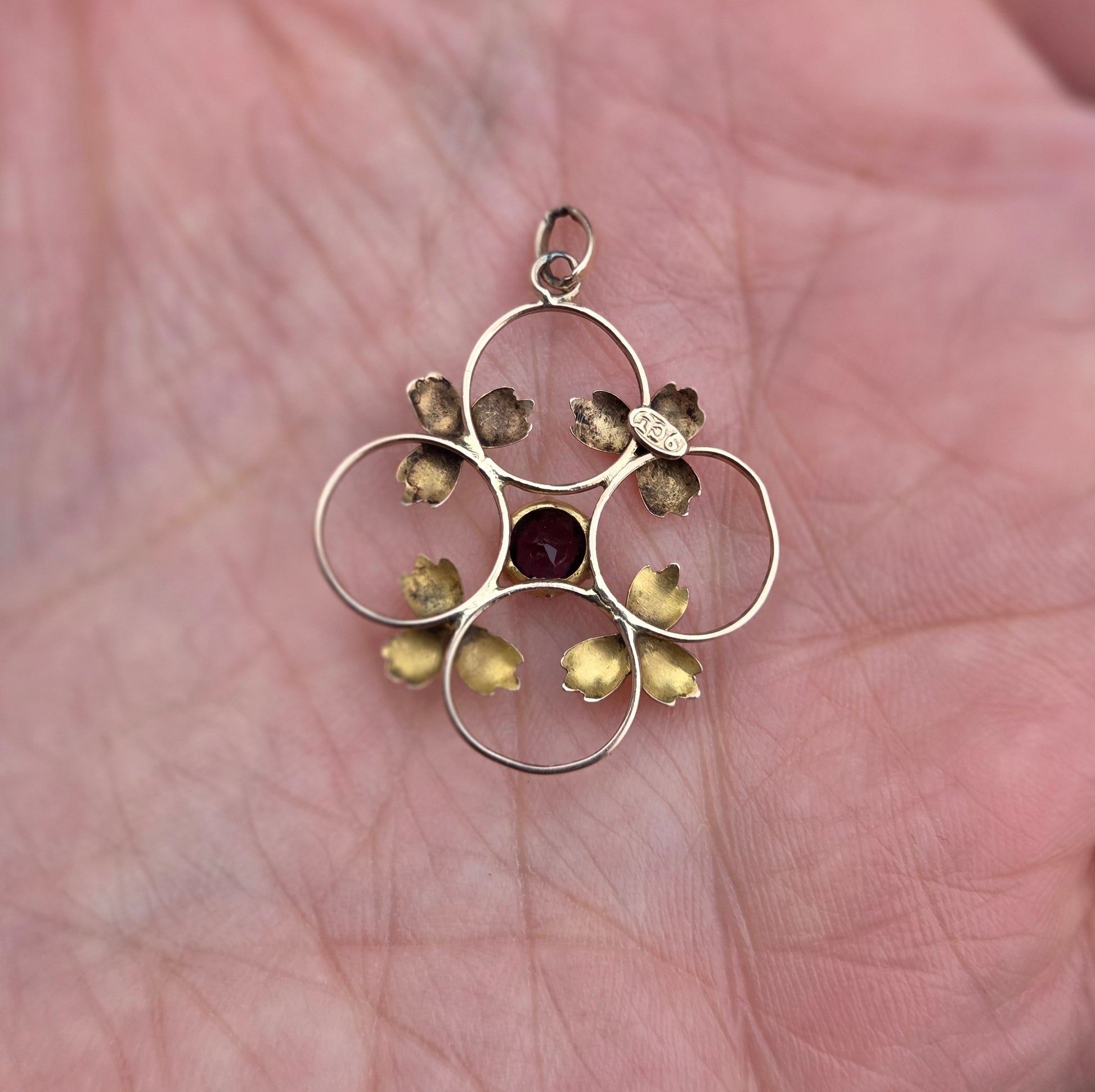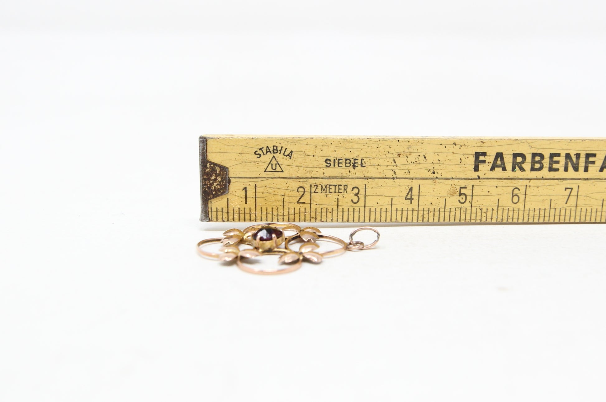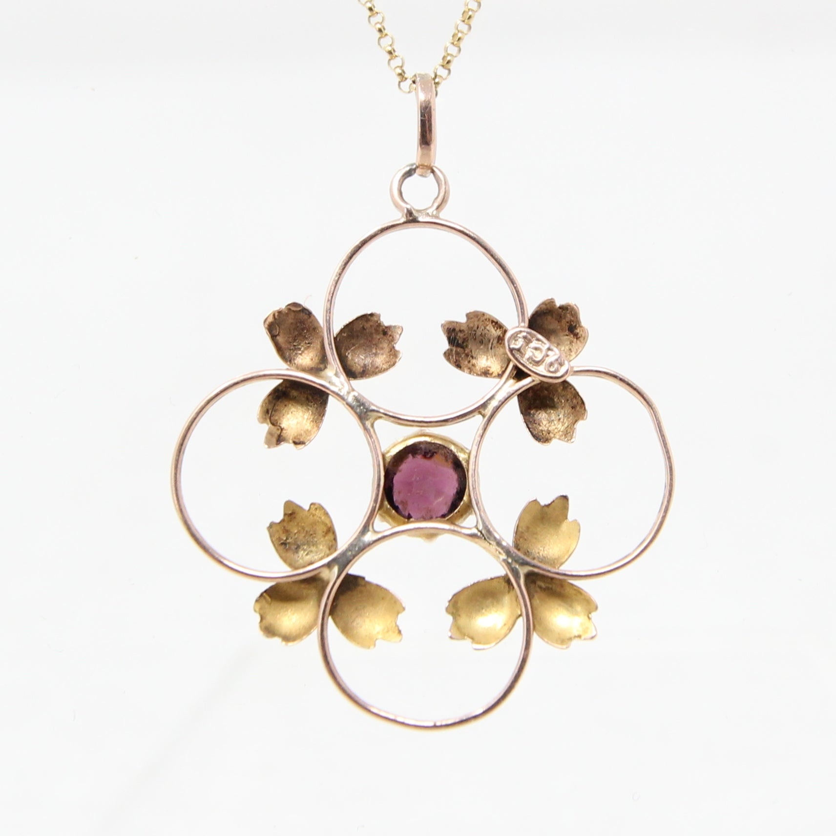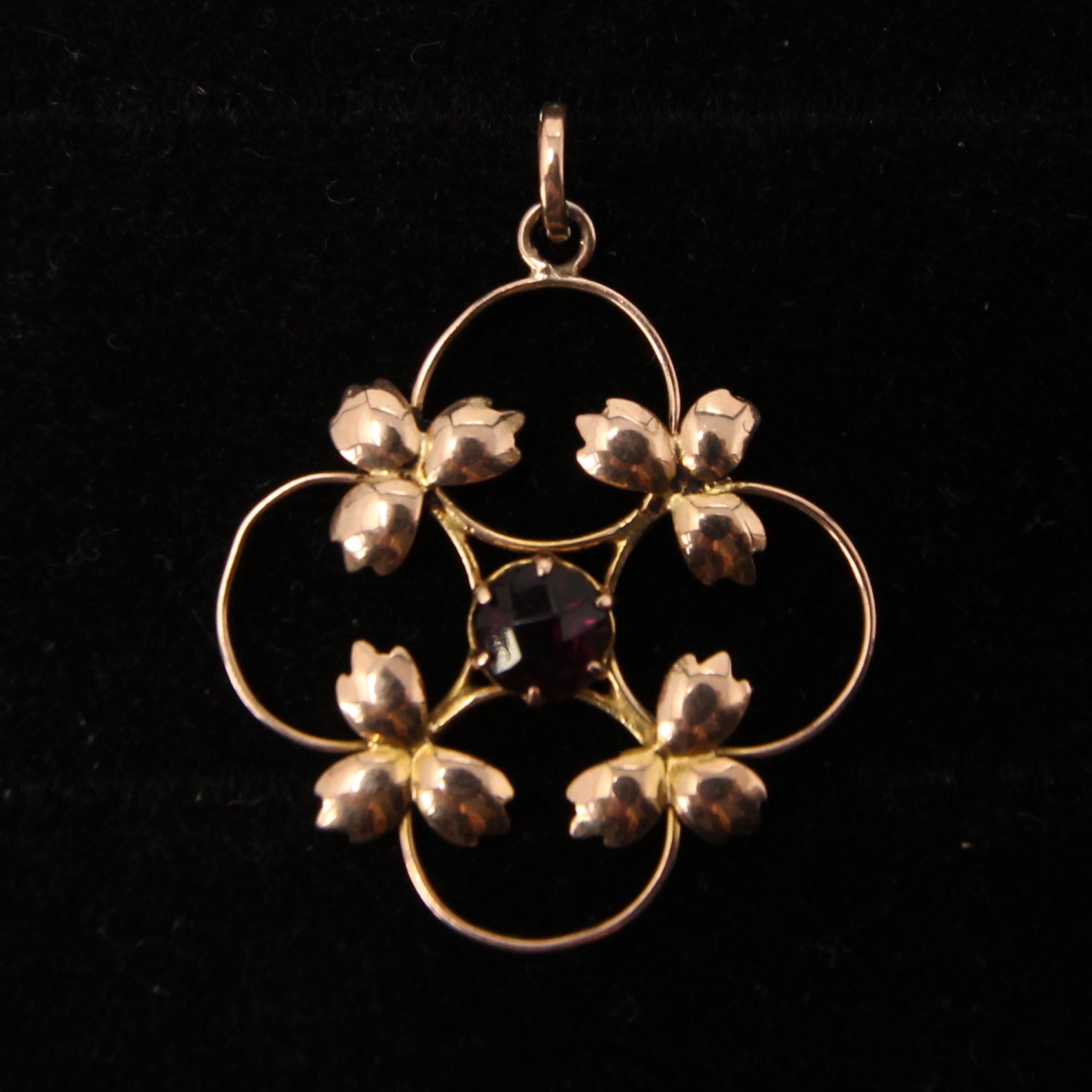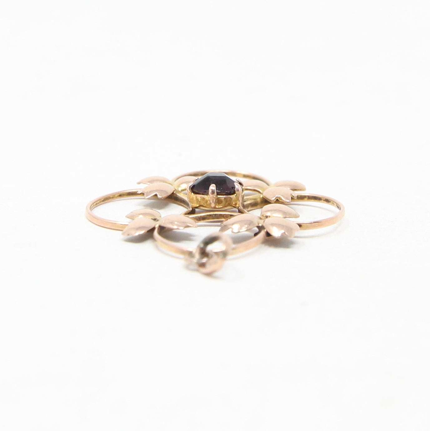 Antique Edwardian English hallmarked solid 9ct rose gold amethyst lavalier pendant.