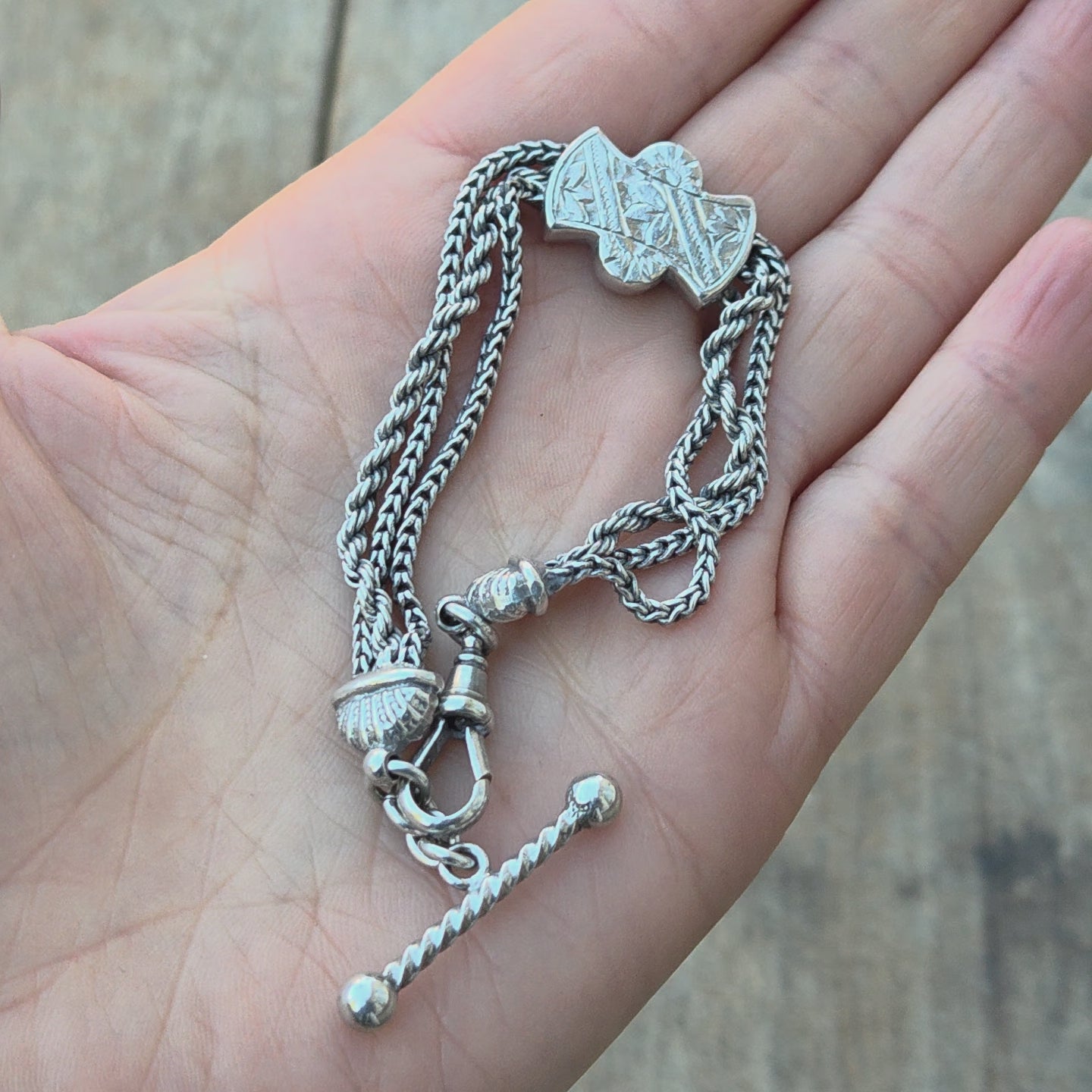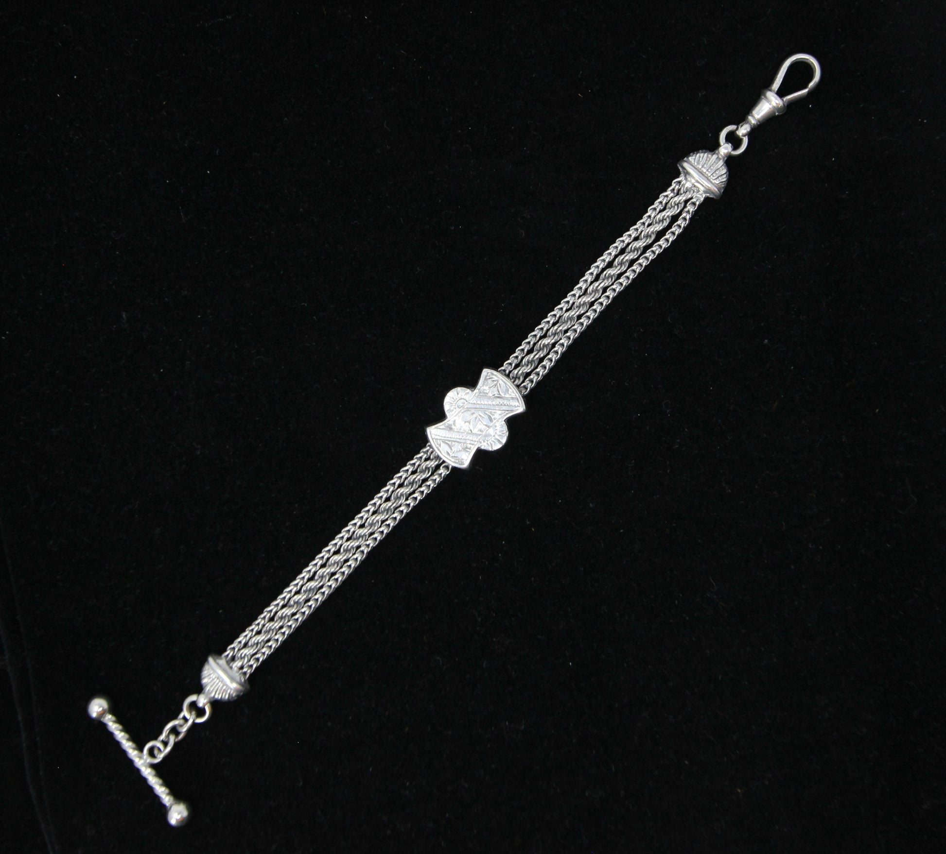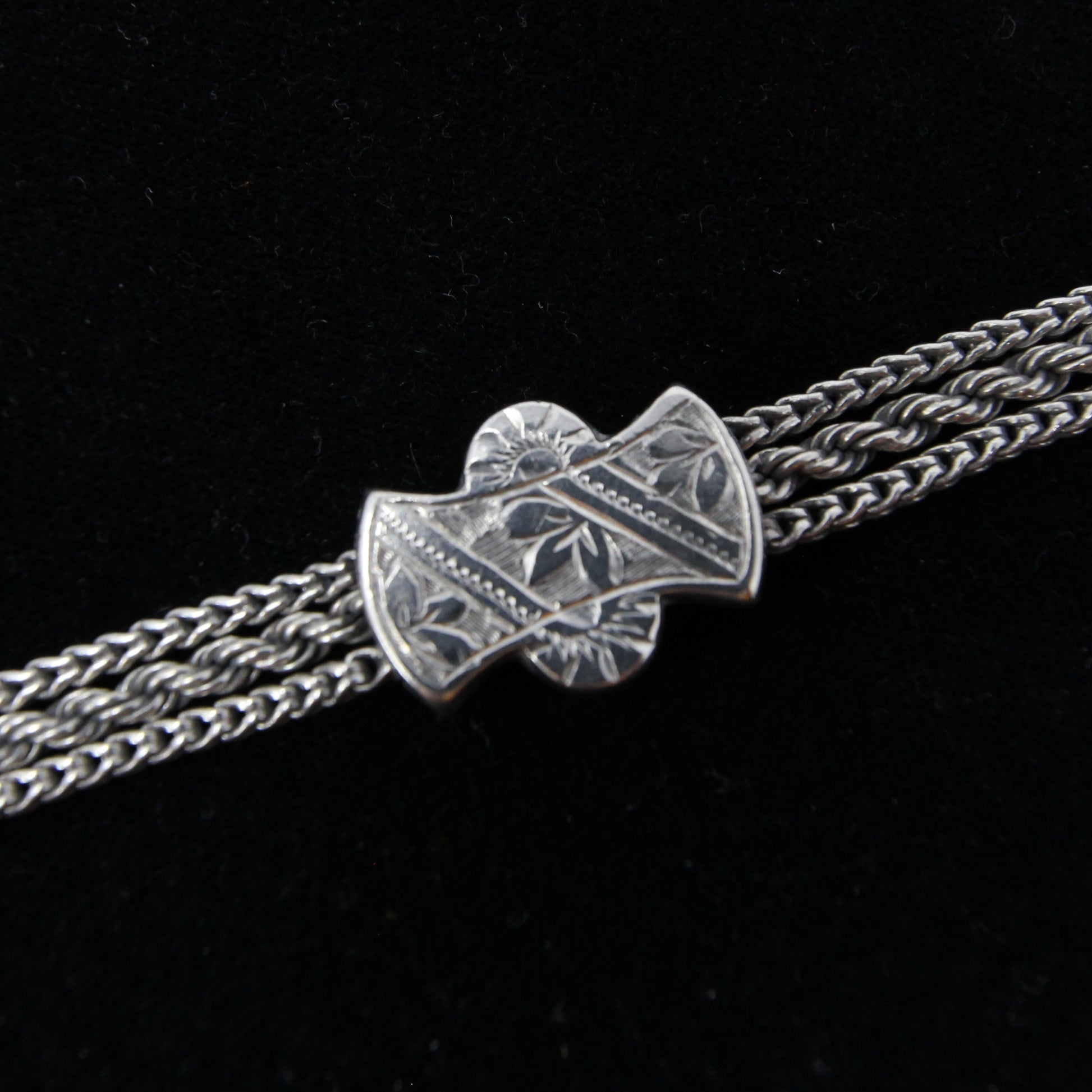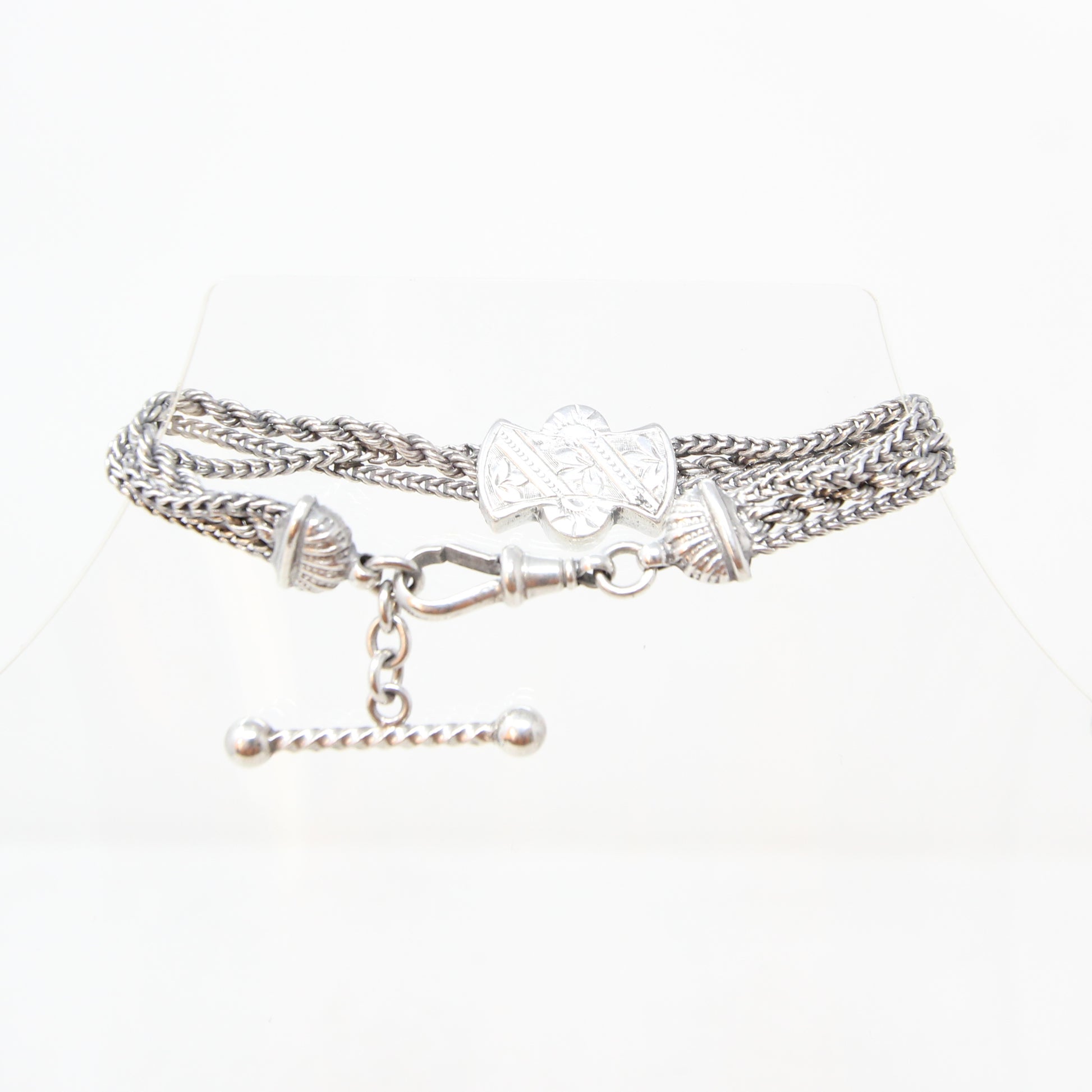 Antique solid silver fancy link Albertina bracelet 6.75 inches long.