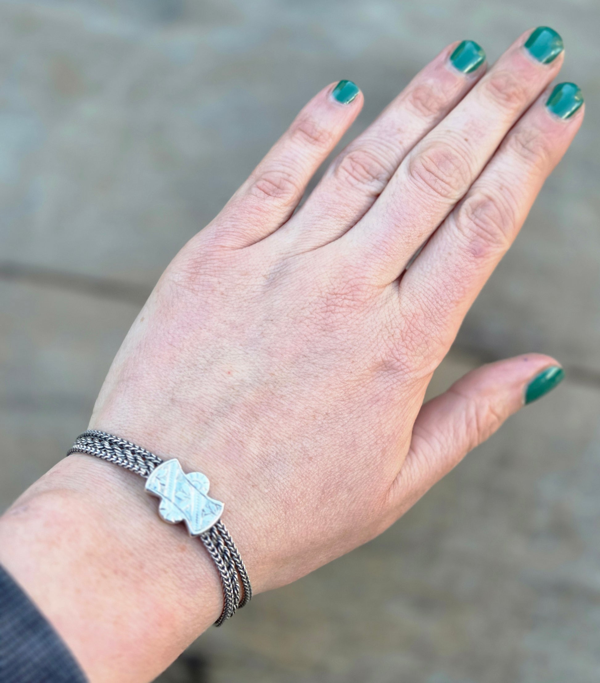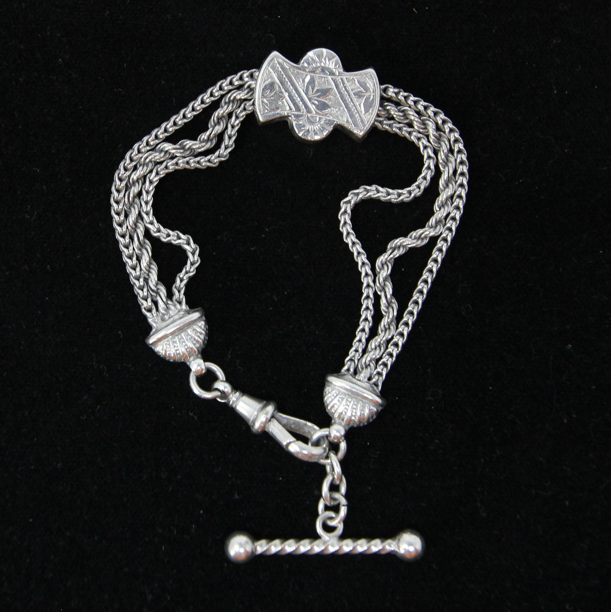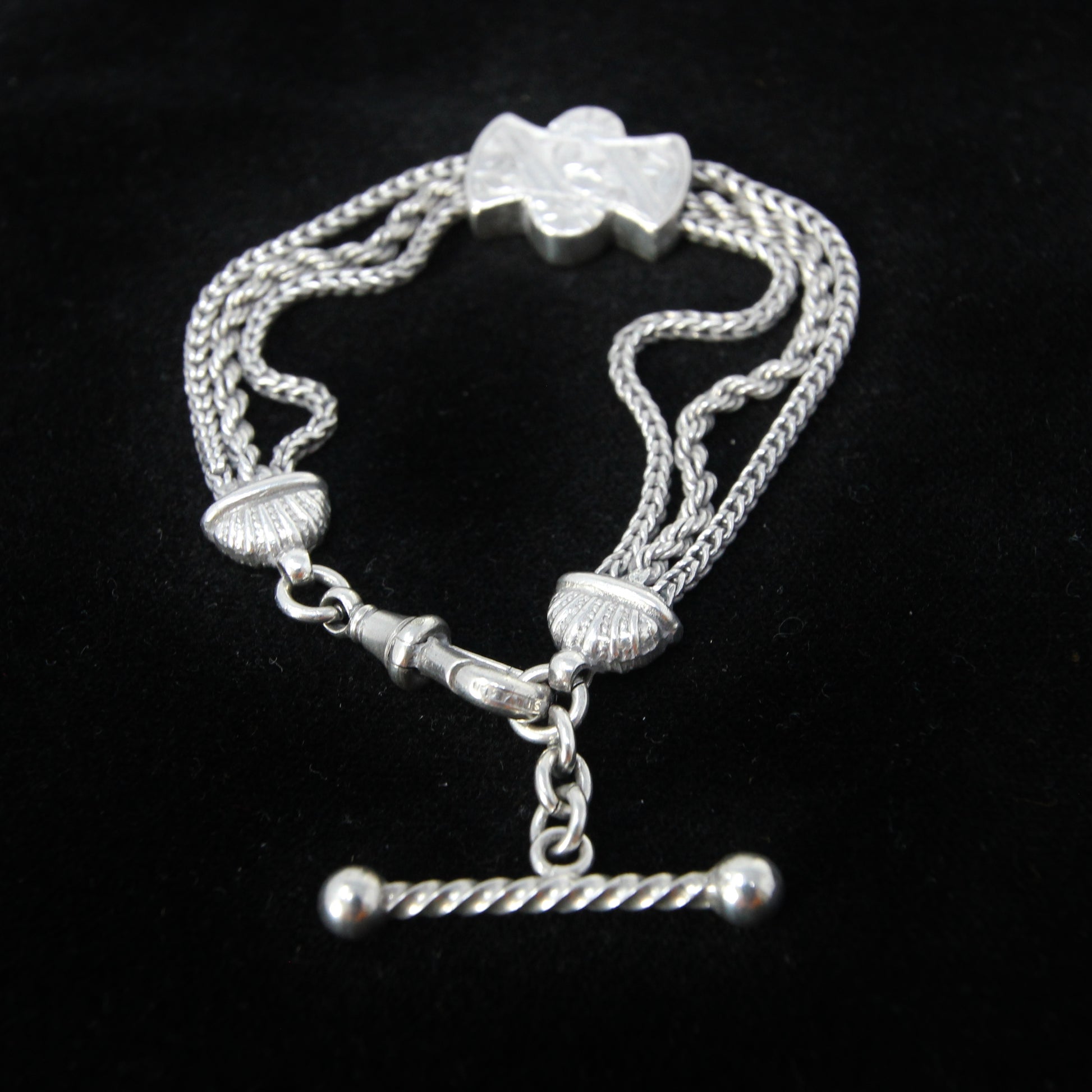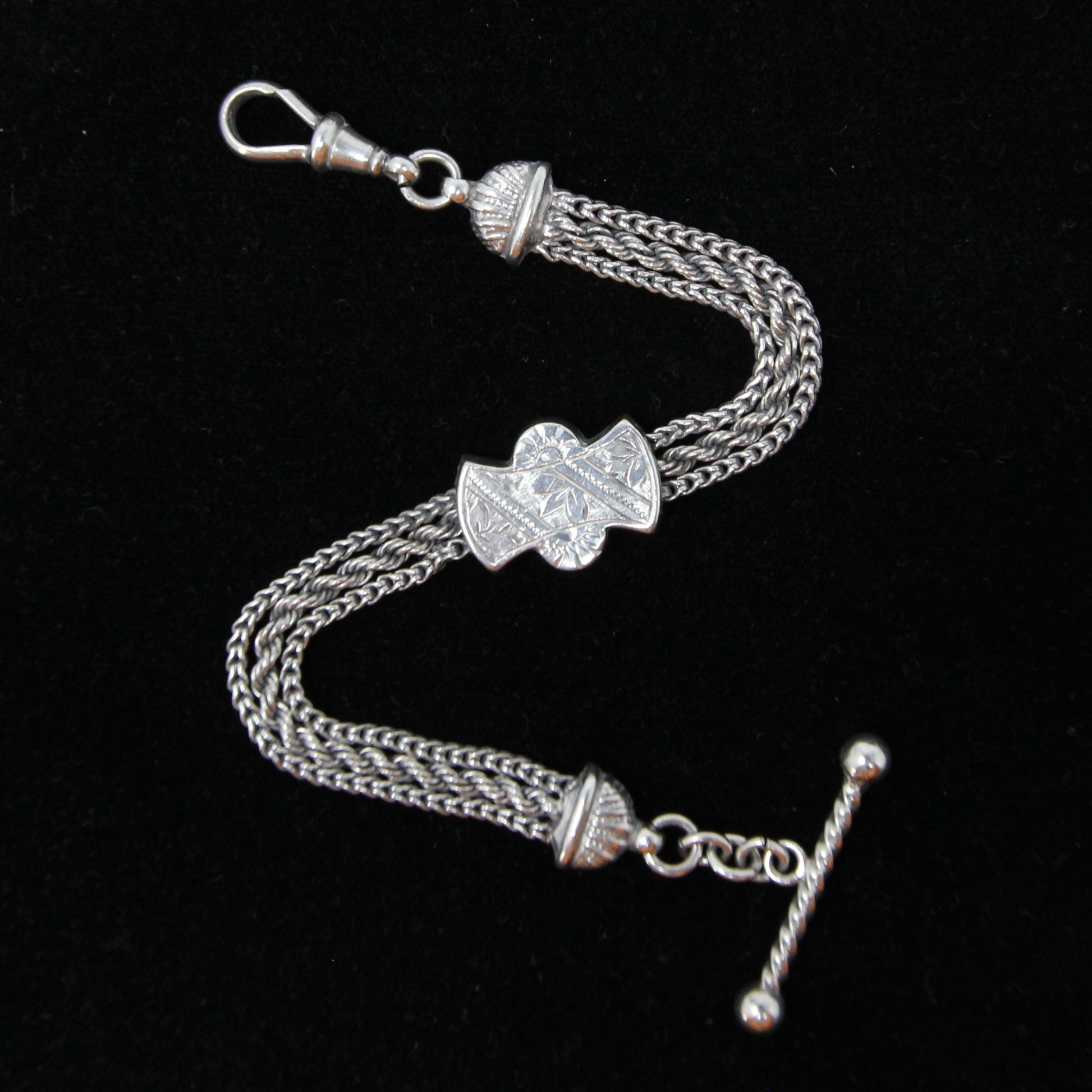 Antique solid silver fancy link Albertina bracelet 6.75 inches long.