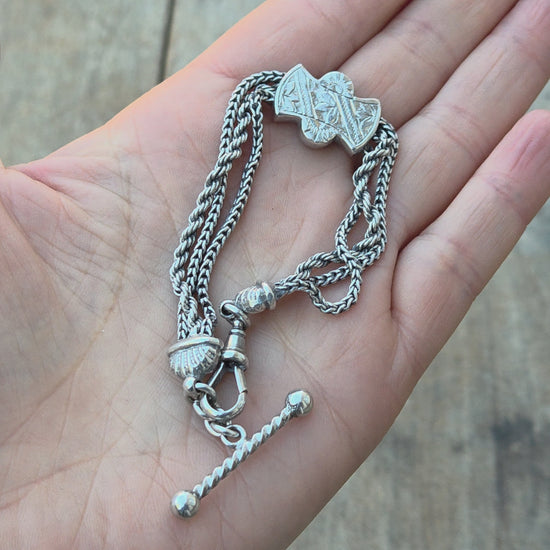 Antique Solid Silver Albertina Fancy Link Chain Bracelet 6.75'' 16g