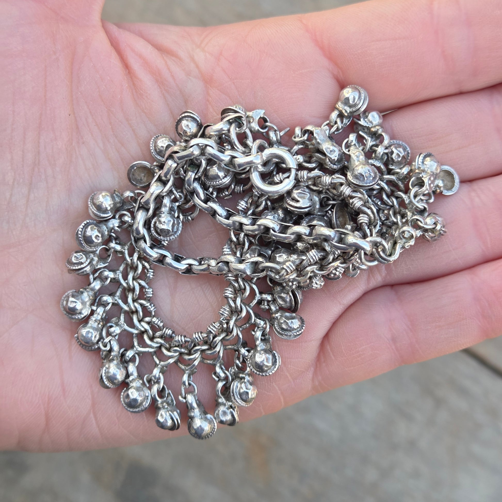 Antique Solid Silver Indian Asian Bell Wedding Curb Cable Chain Choker Necklace 13.3''