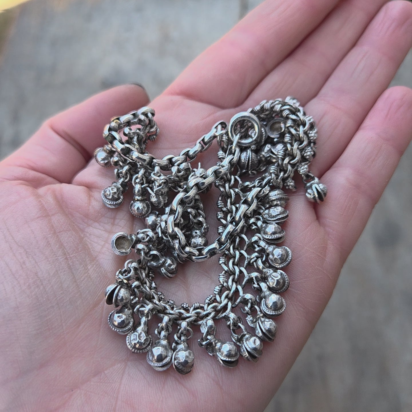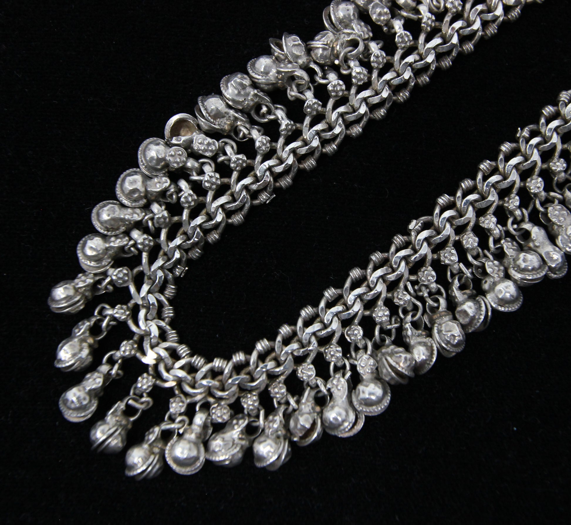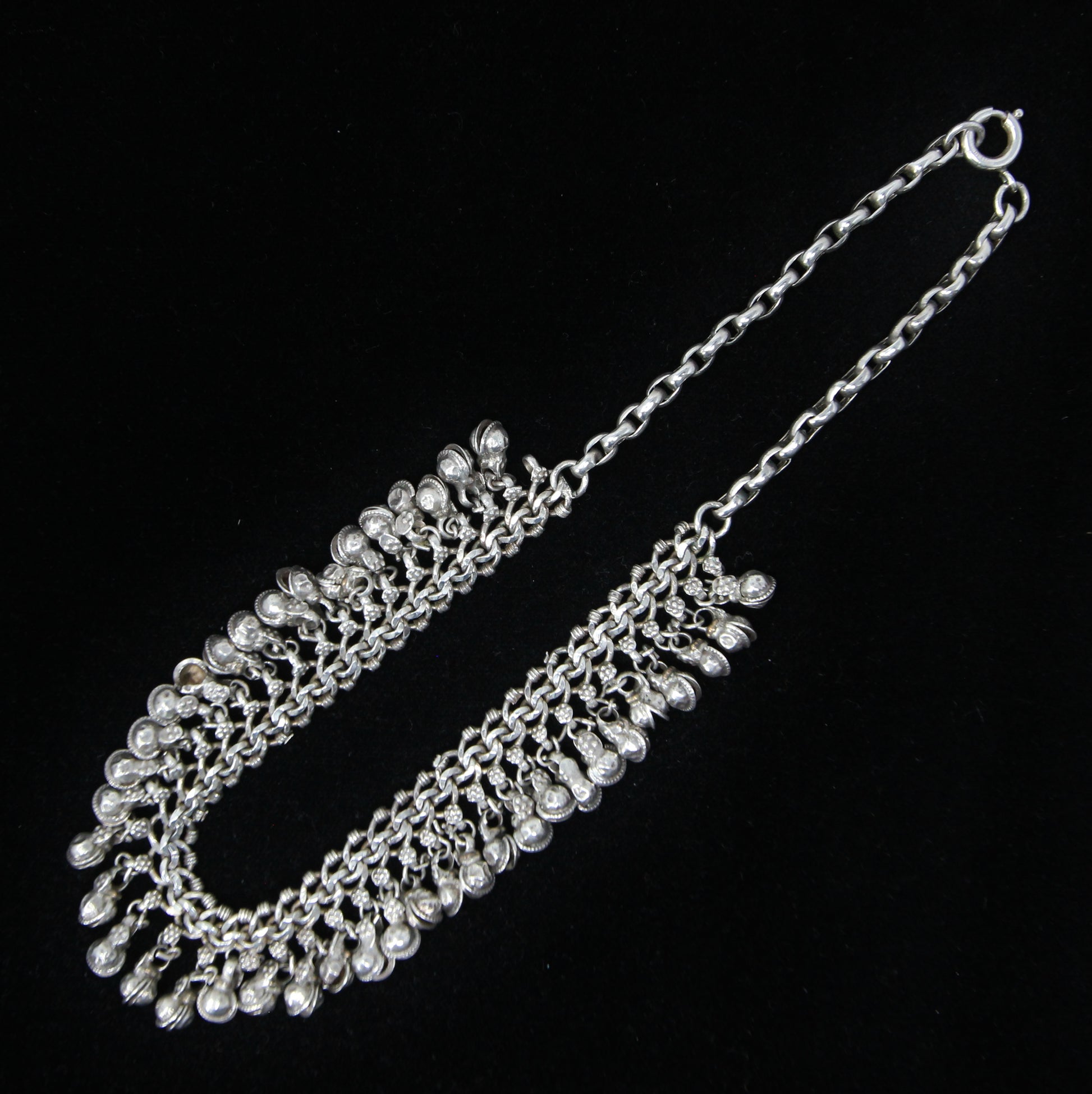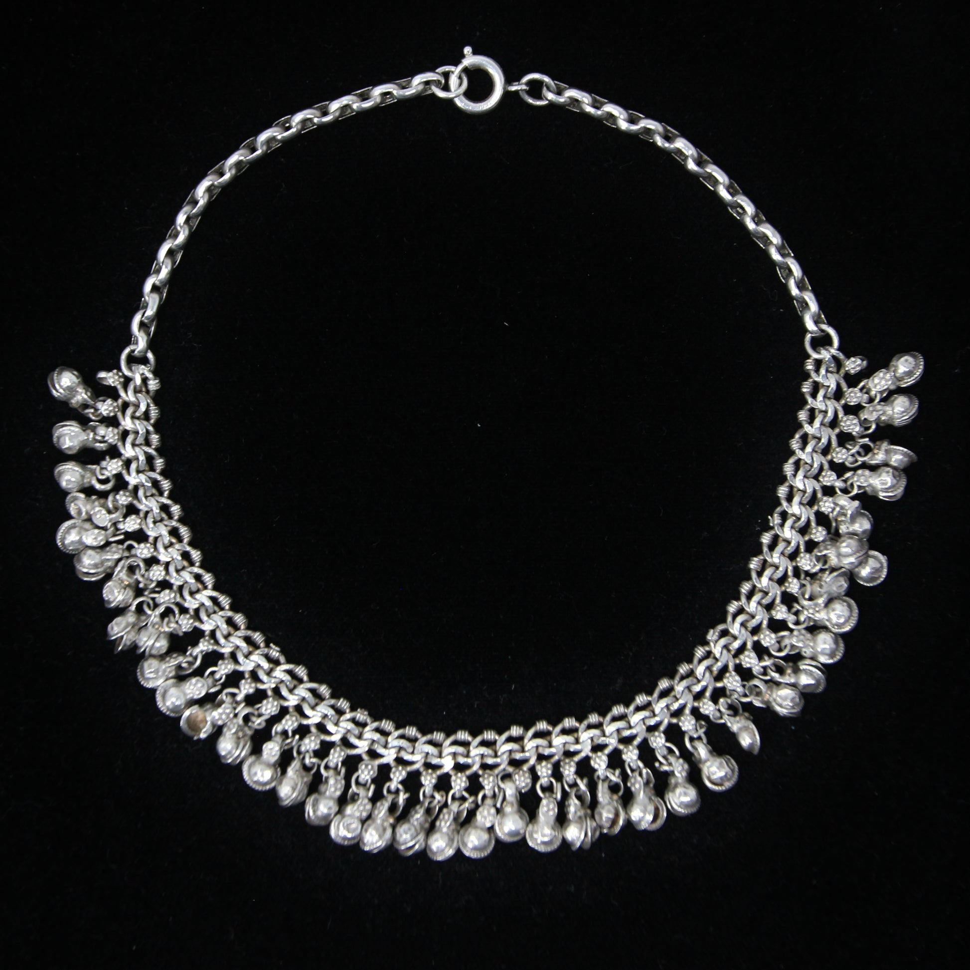 Antique solid silver Asian Indian bell chain choker necklace 13.3 inches long.