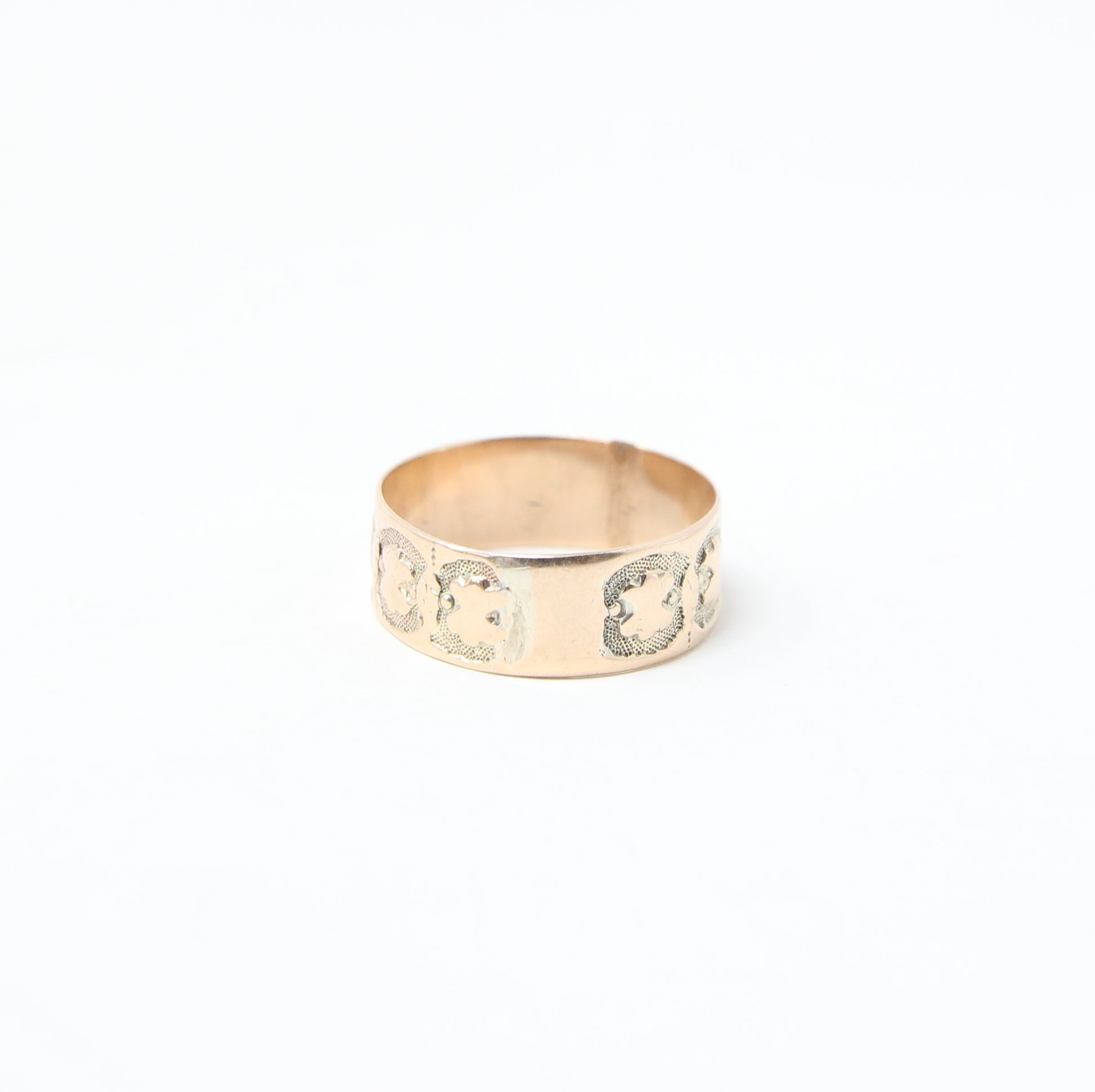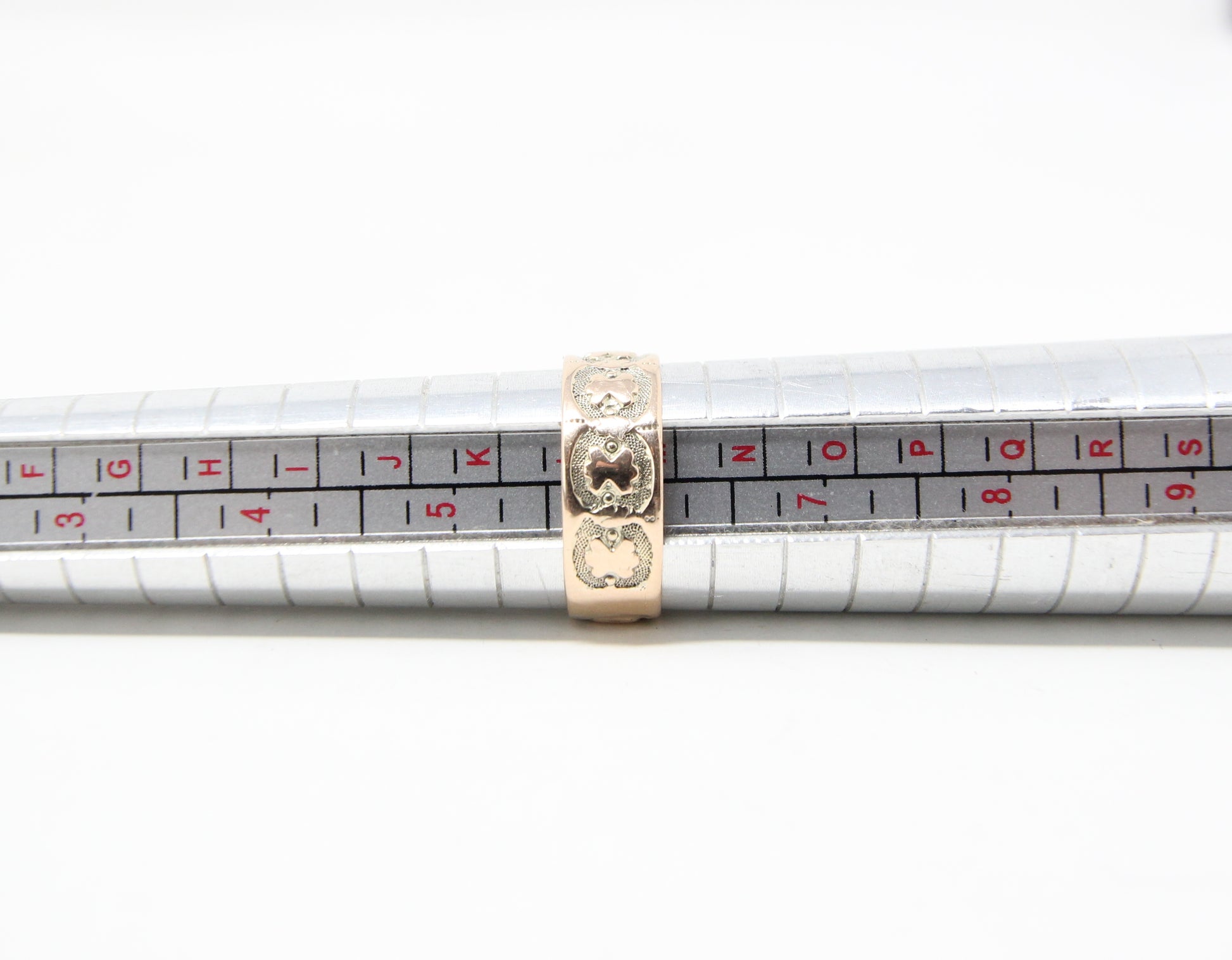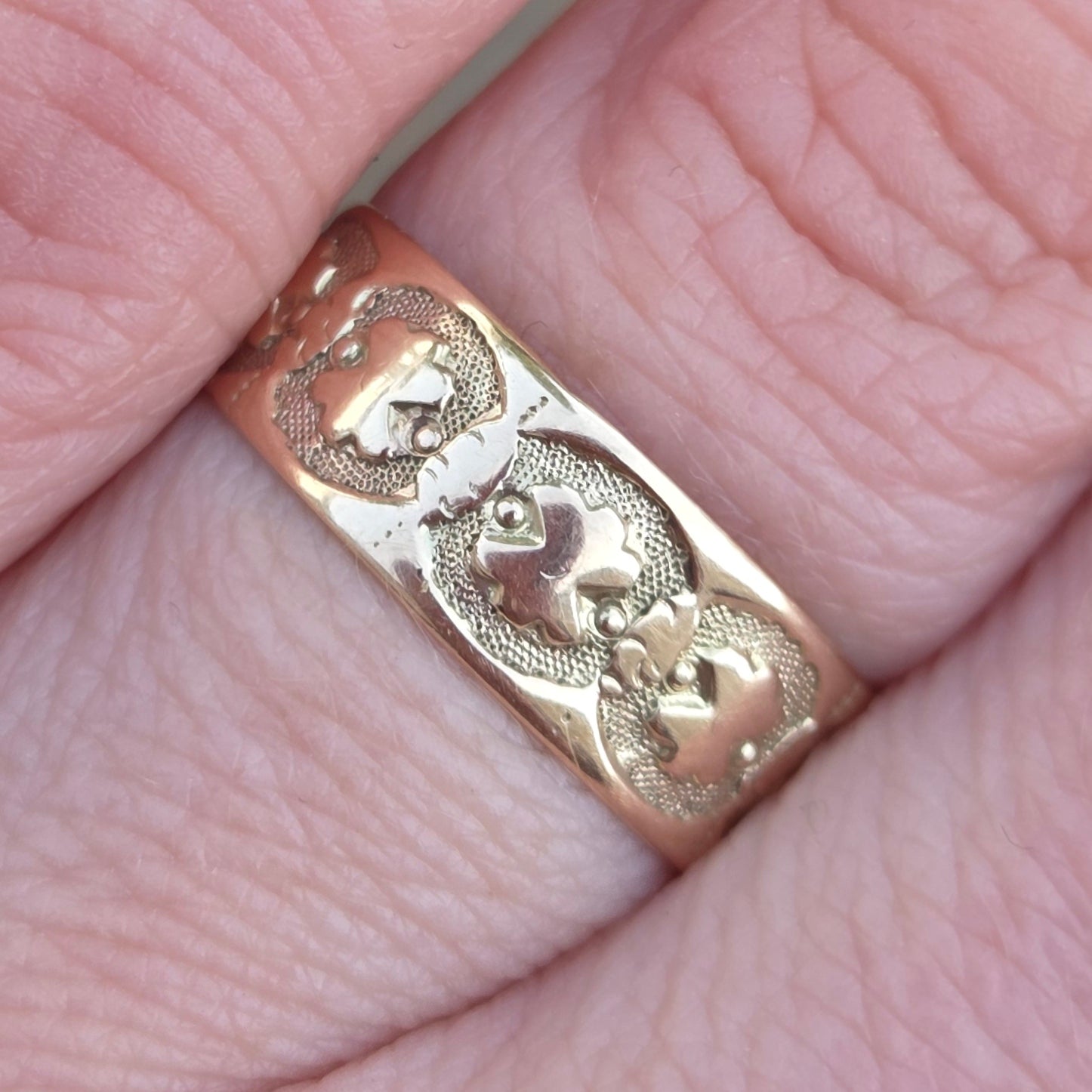 Antique Victorian solid 9ct gold patterned engraved cigar band ring in a size L.