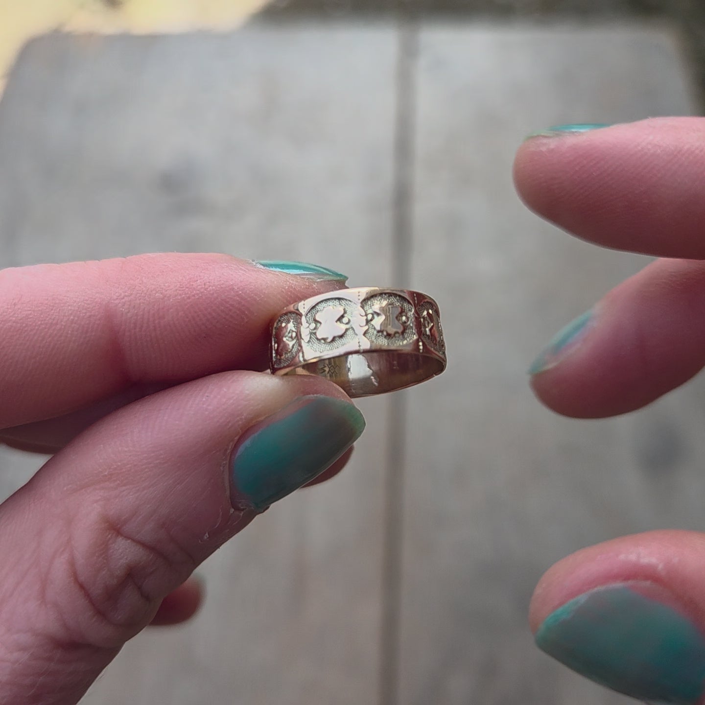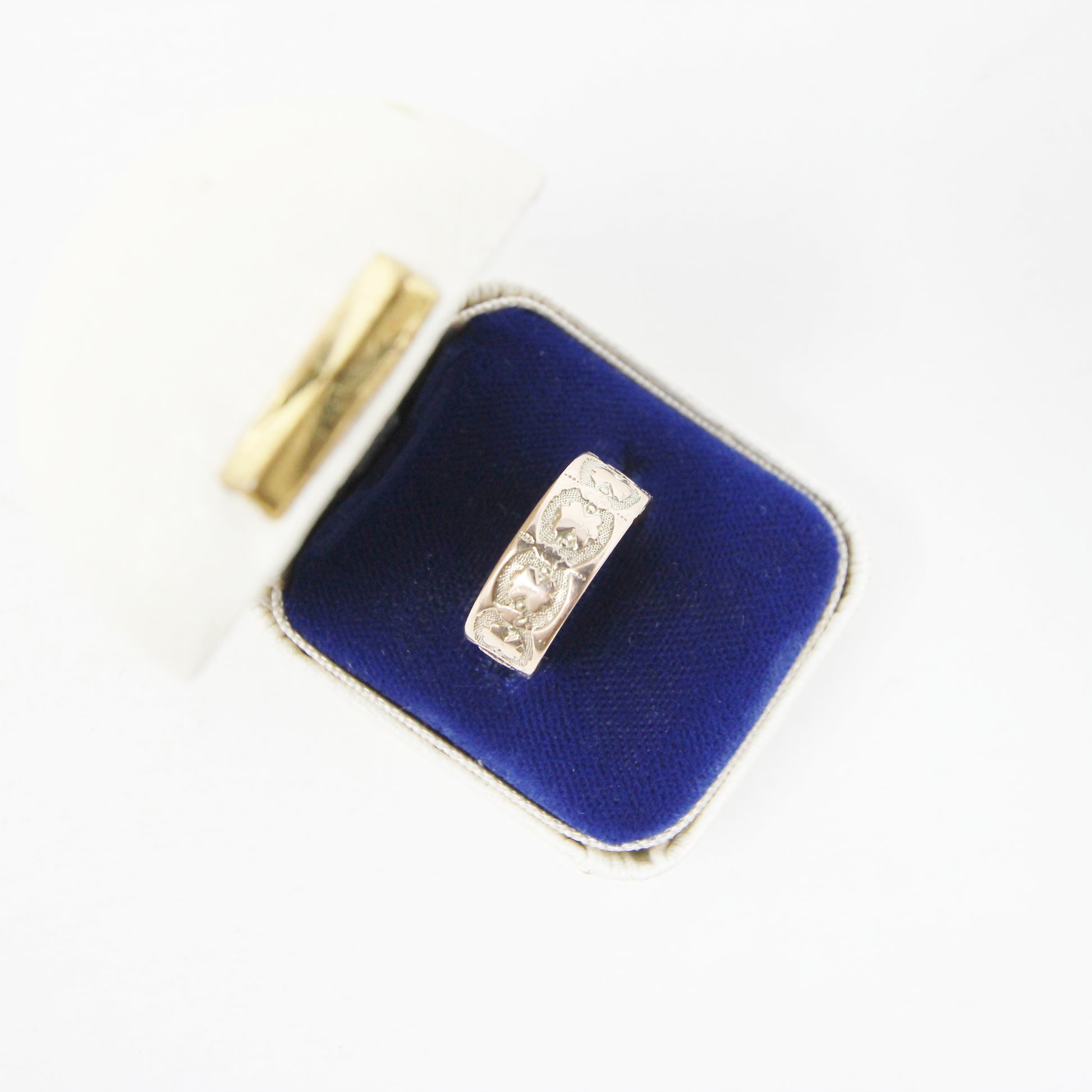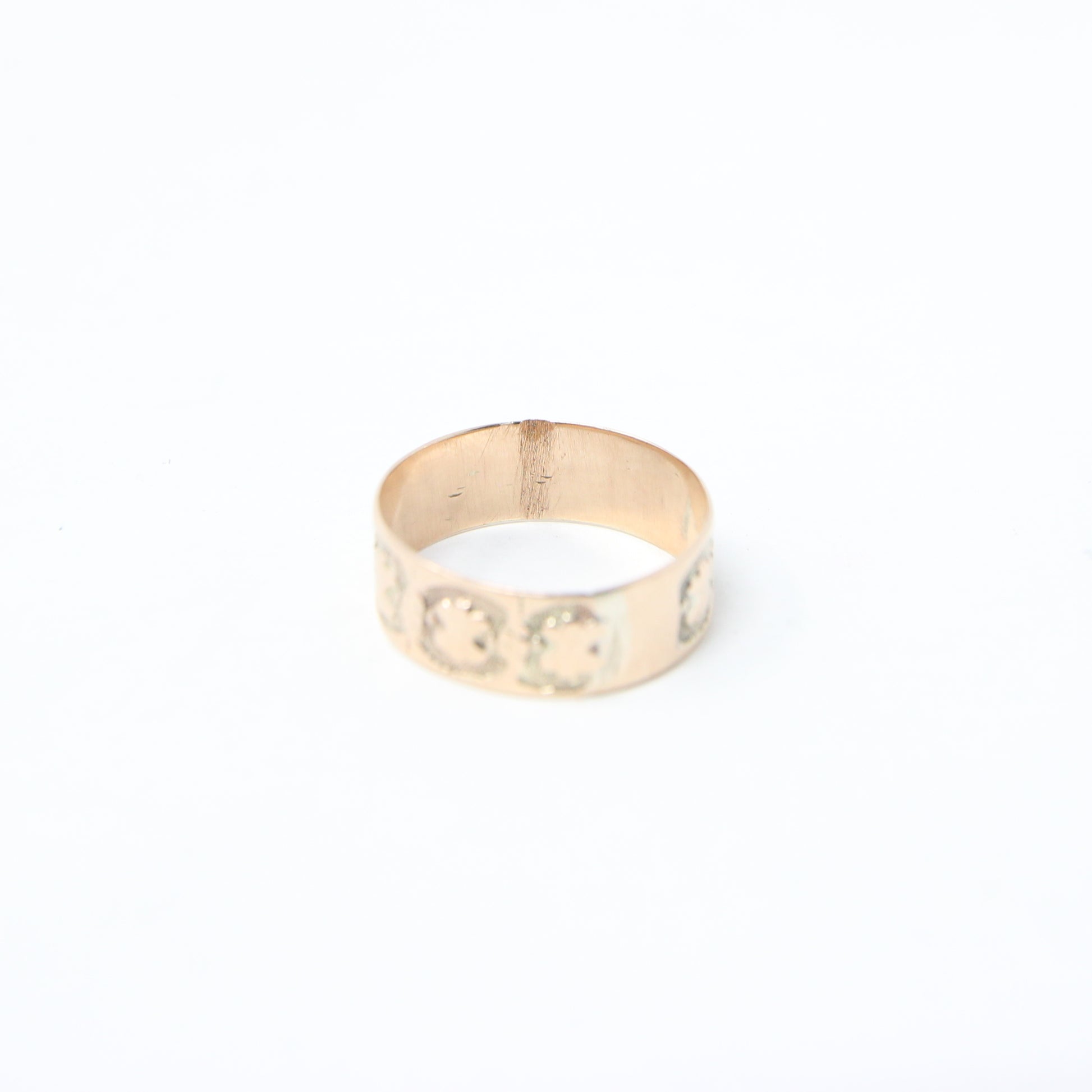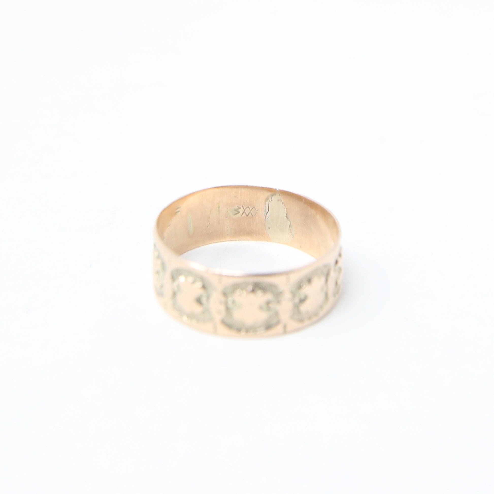 Antique Victorian solid 9ct gold patterned engraved cigar band ring in a size L.