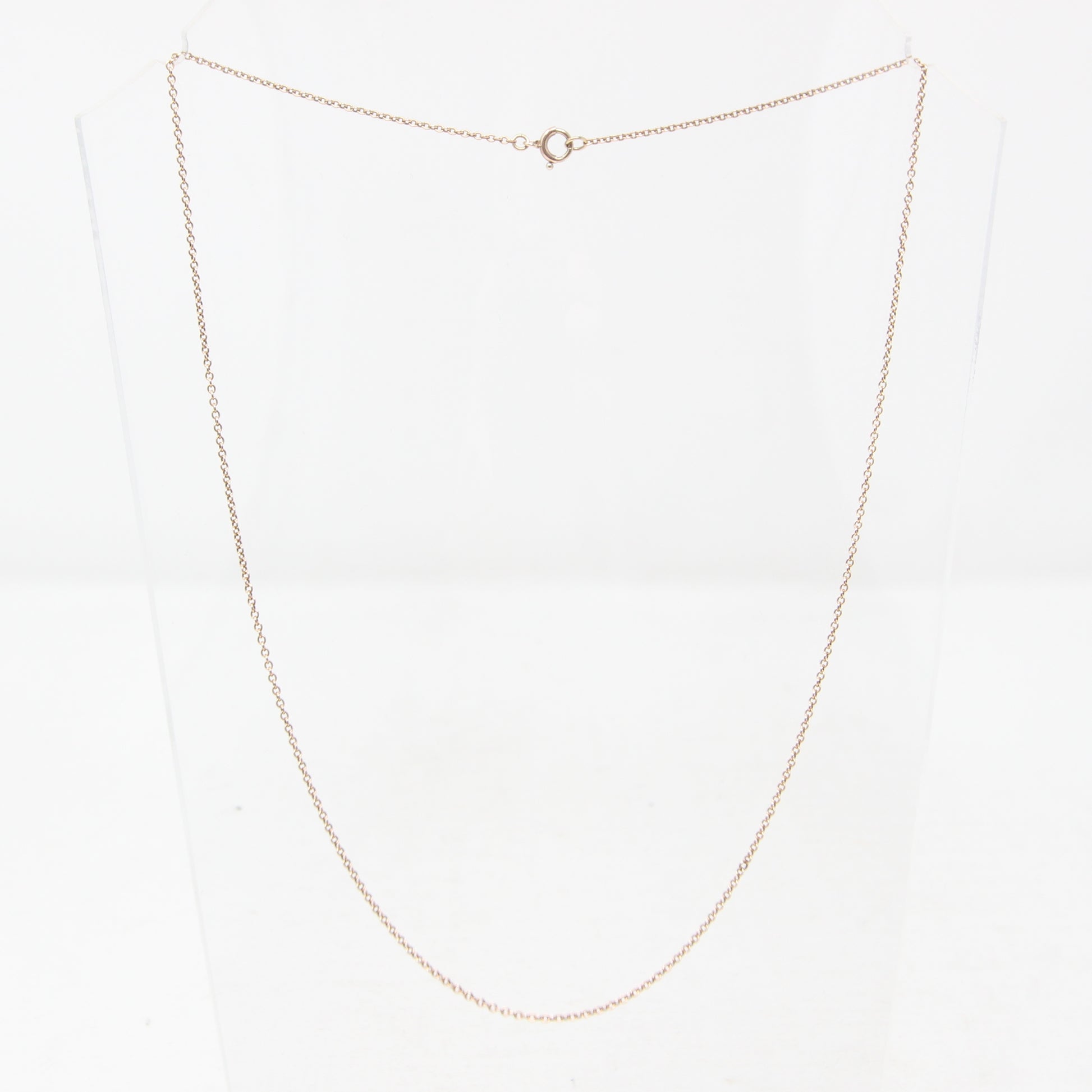47 cm or 18.5 inches long. 1 mm wide chain.