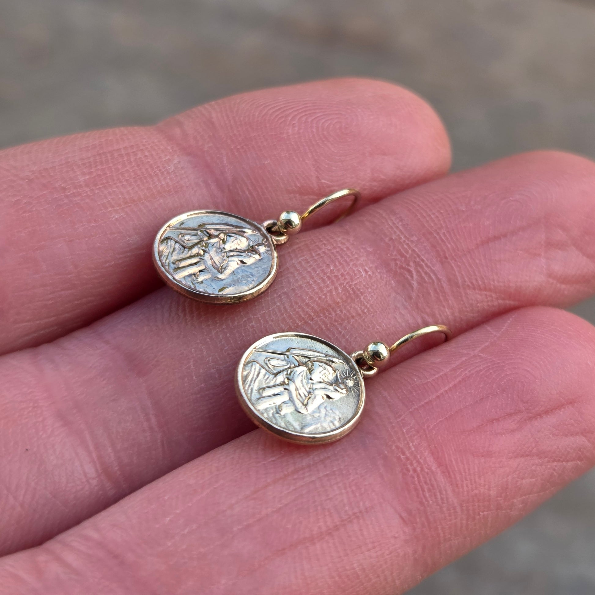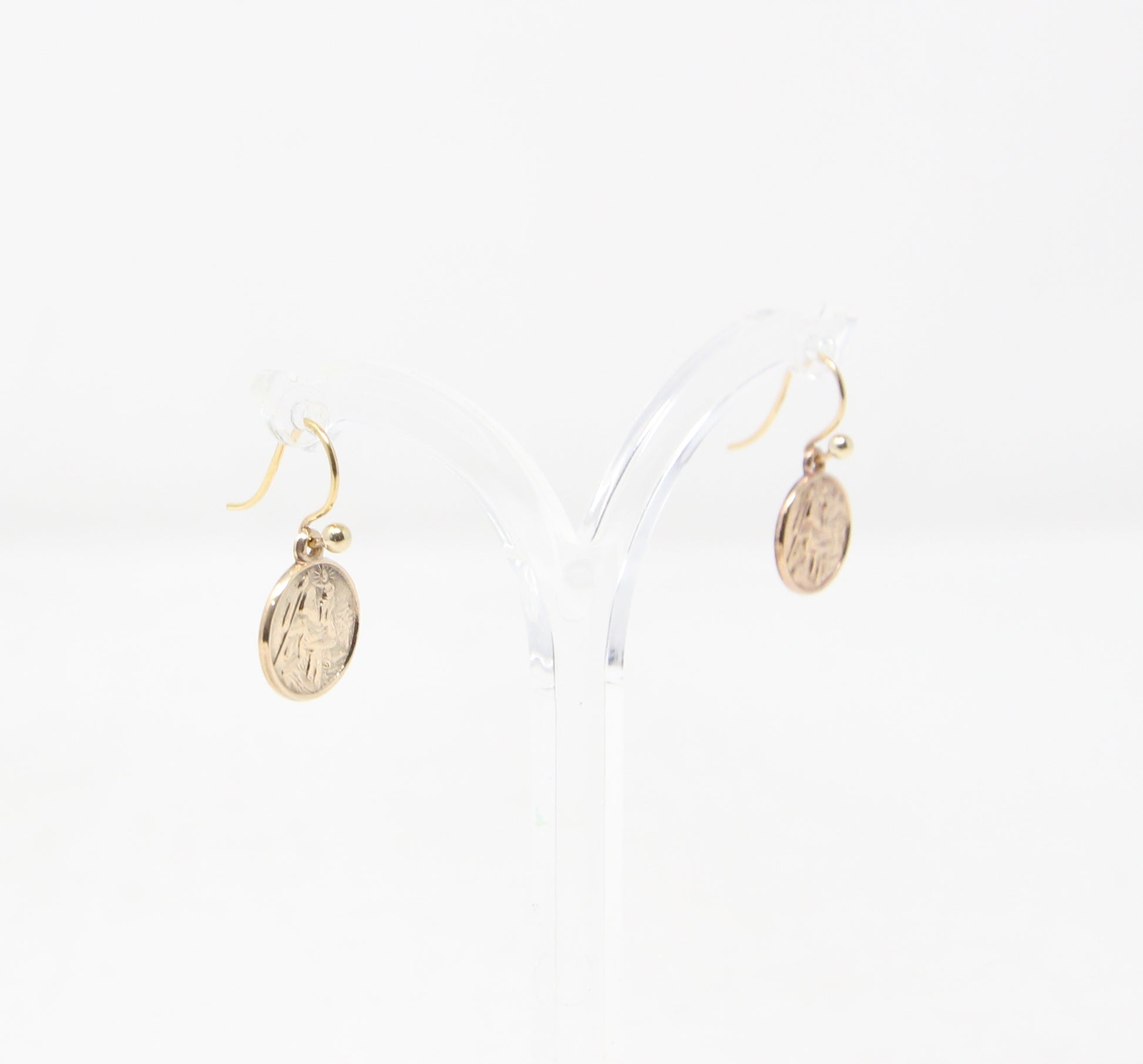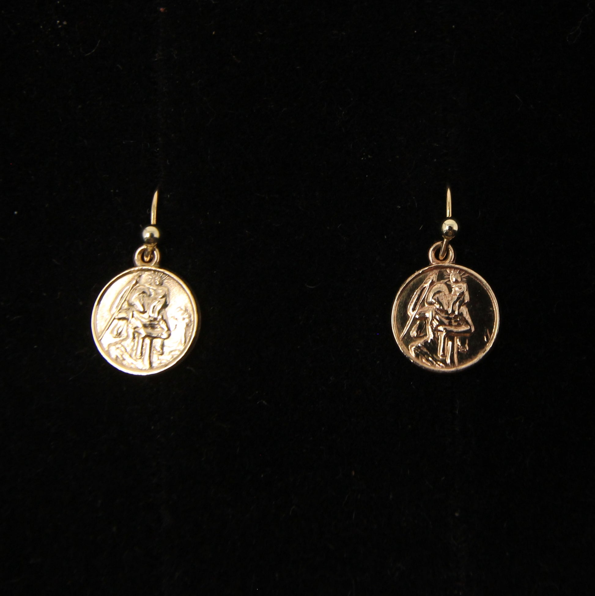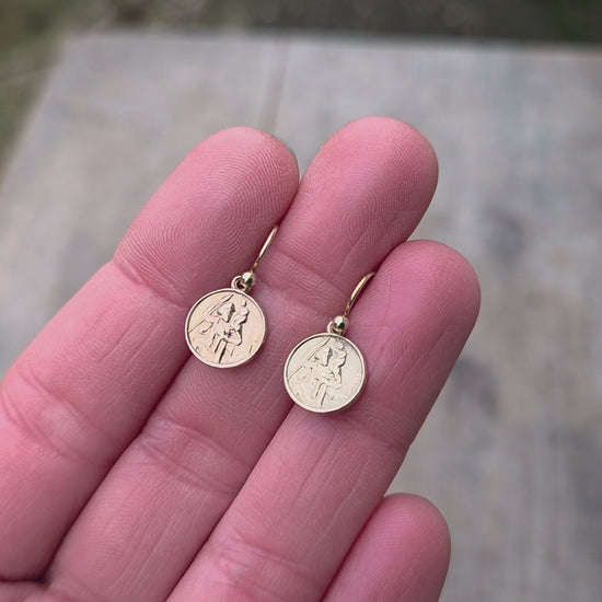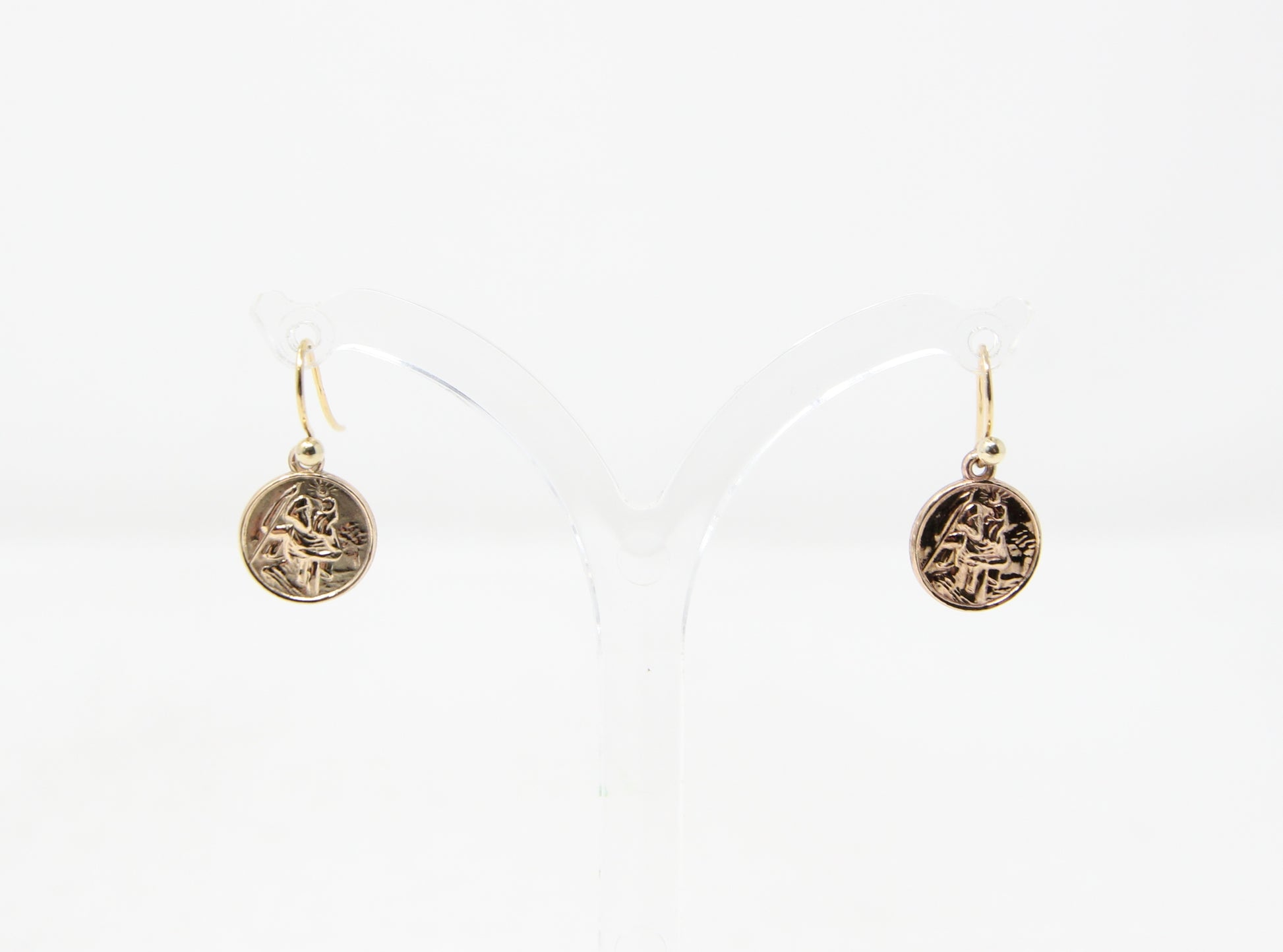 Vintage 1959 Hallmarked Solid 9ct 9k Gold St Christopher Coin Drop Hook Earrings