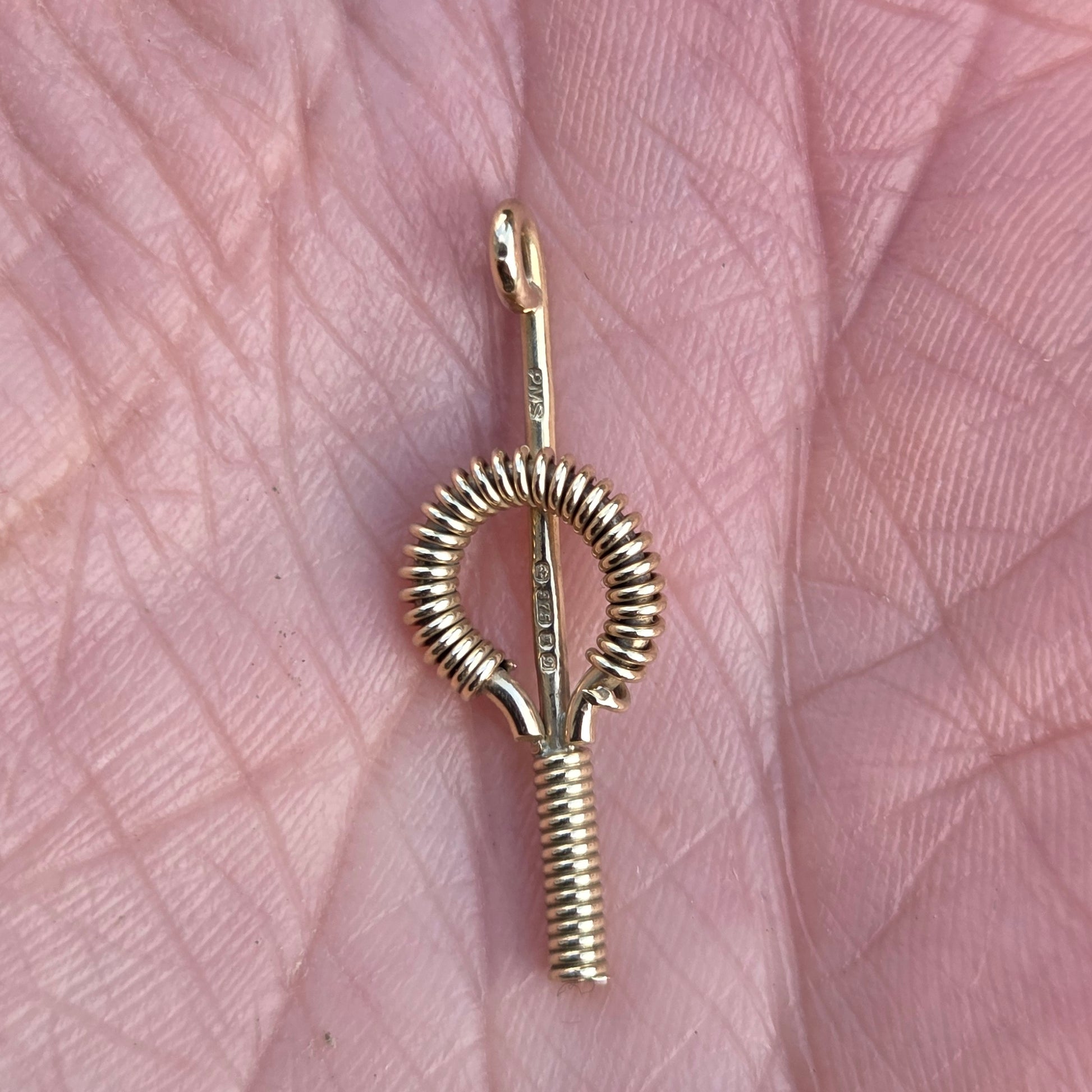 Vintage 1978 English hallmarked solid 9ct gold modernist key pendant.