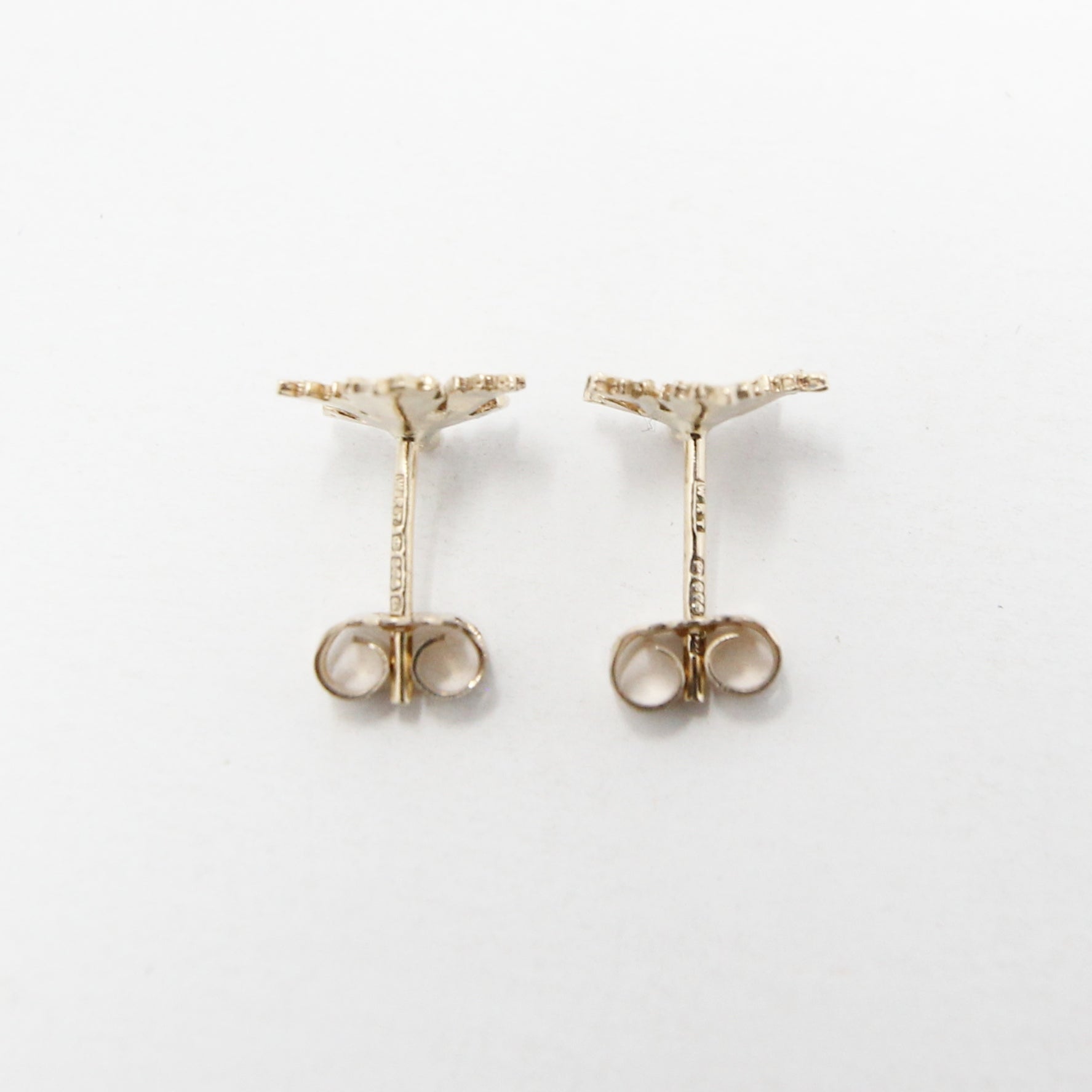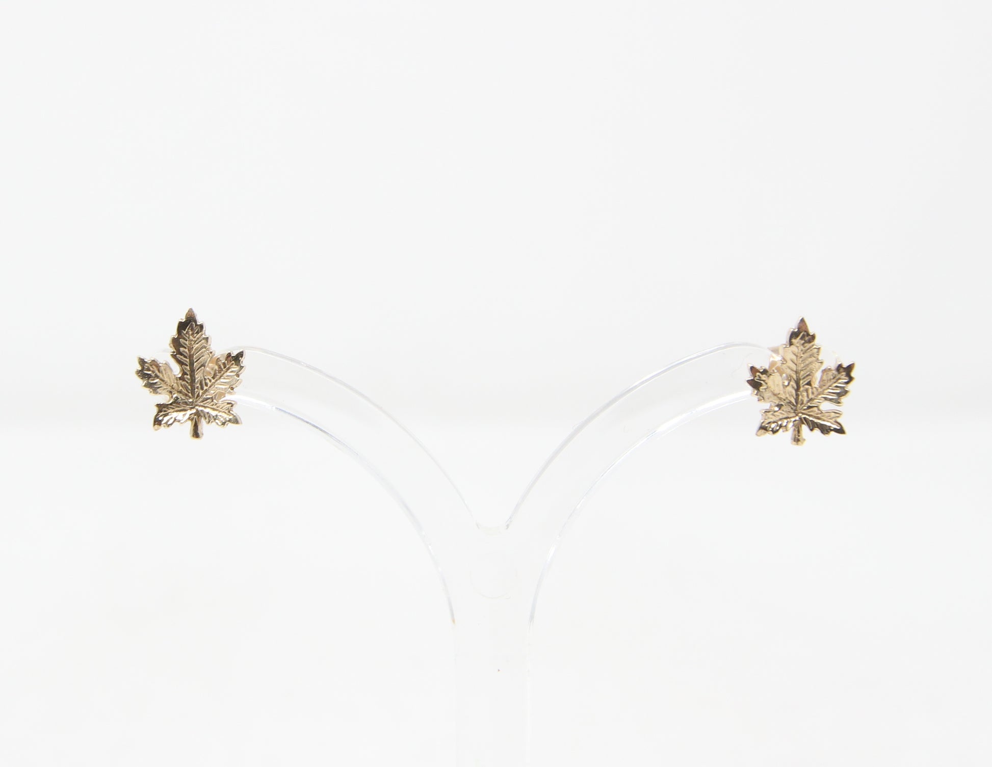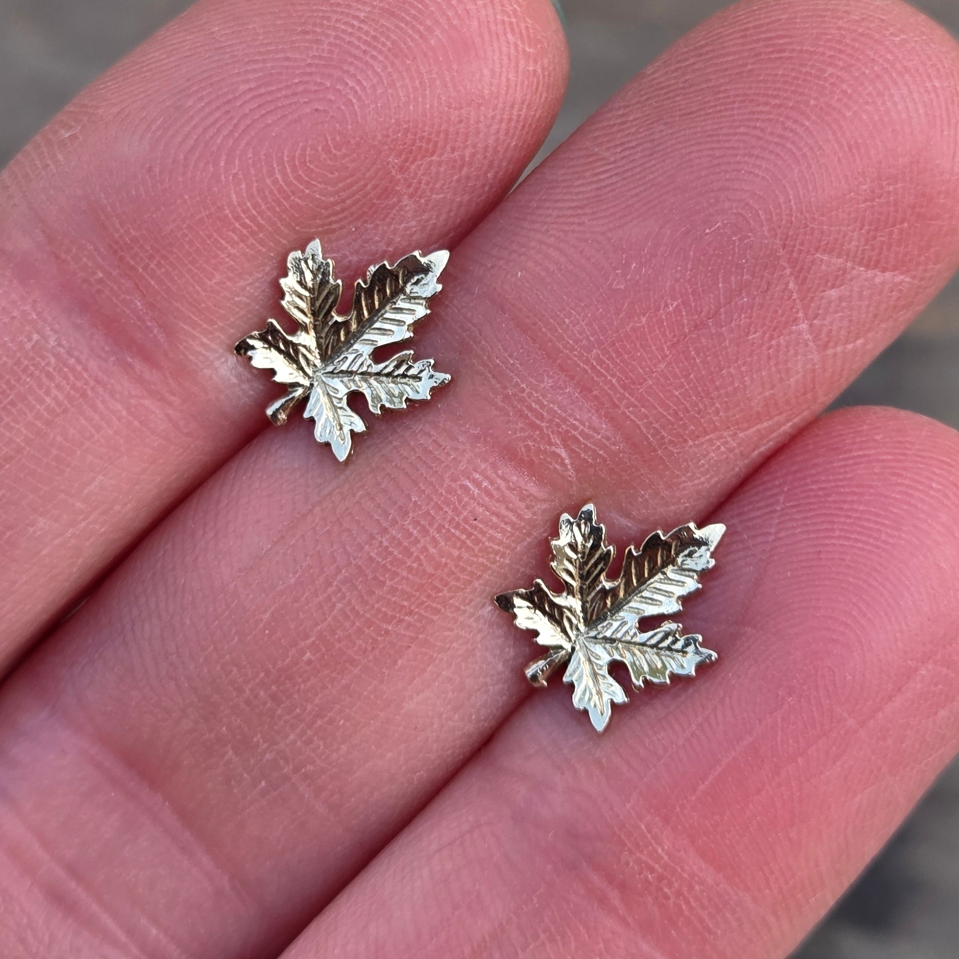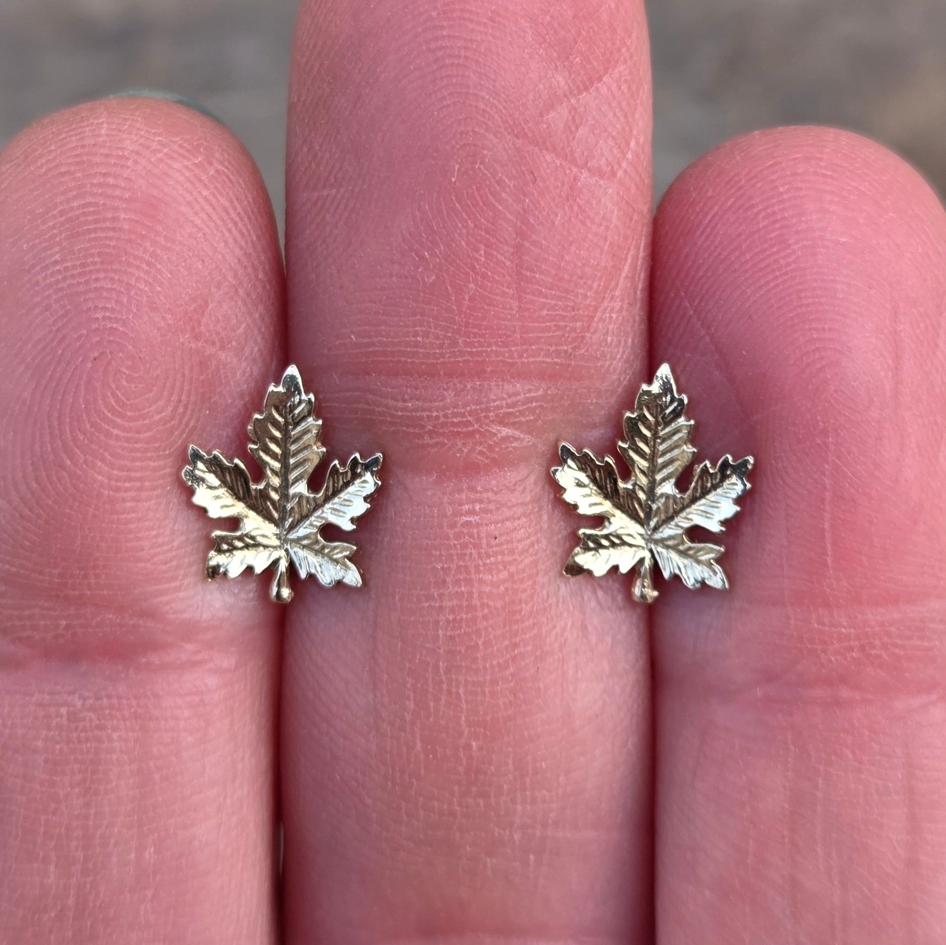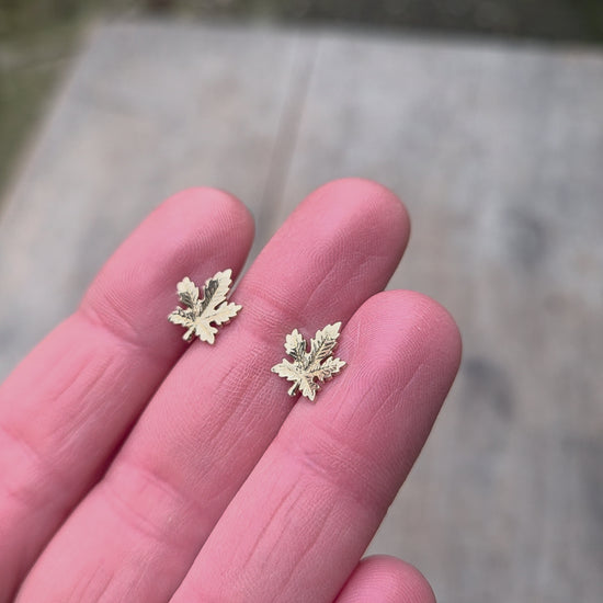 Vintage 1978 hallmarked solid 9ct gold maple leaf stud earrings.