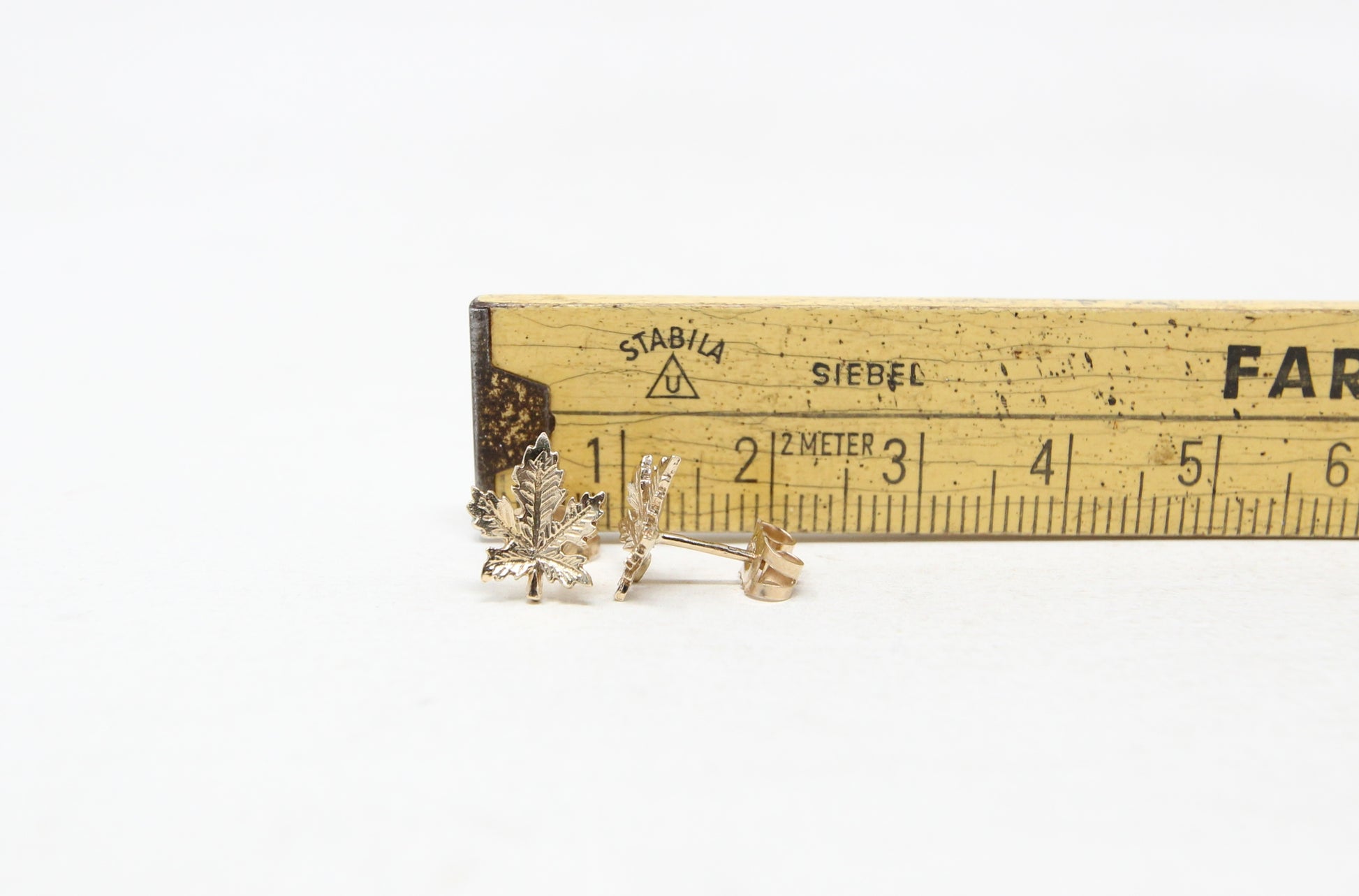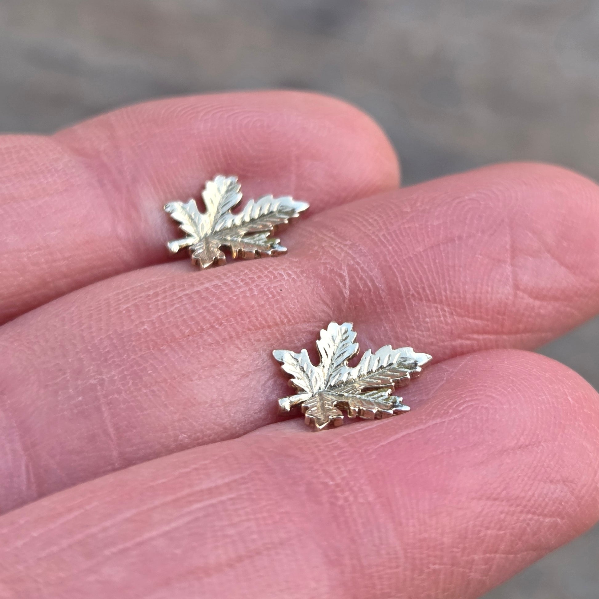 Vintage 1978 Hallmarked Solid 9ct 9k Gold Maple Leaf Stud Earrings