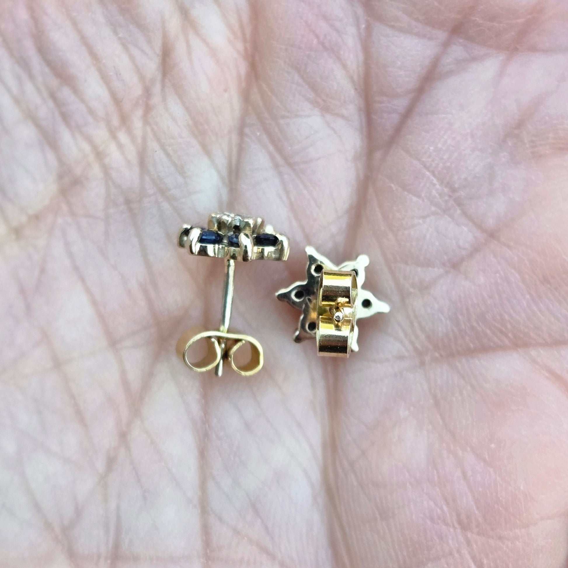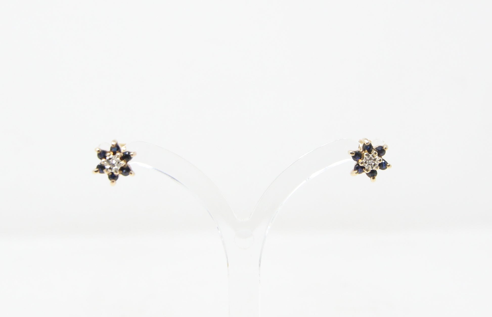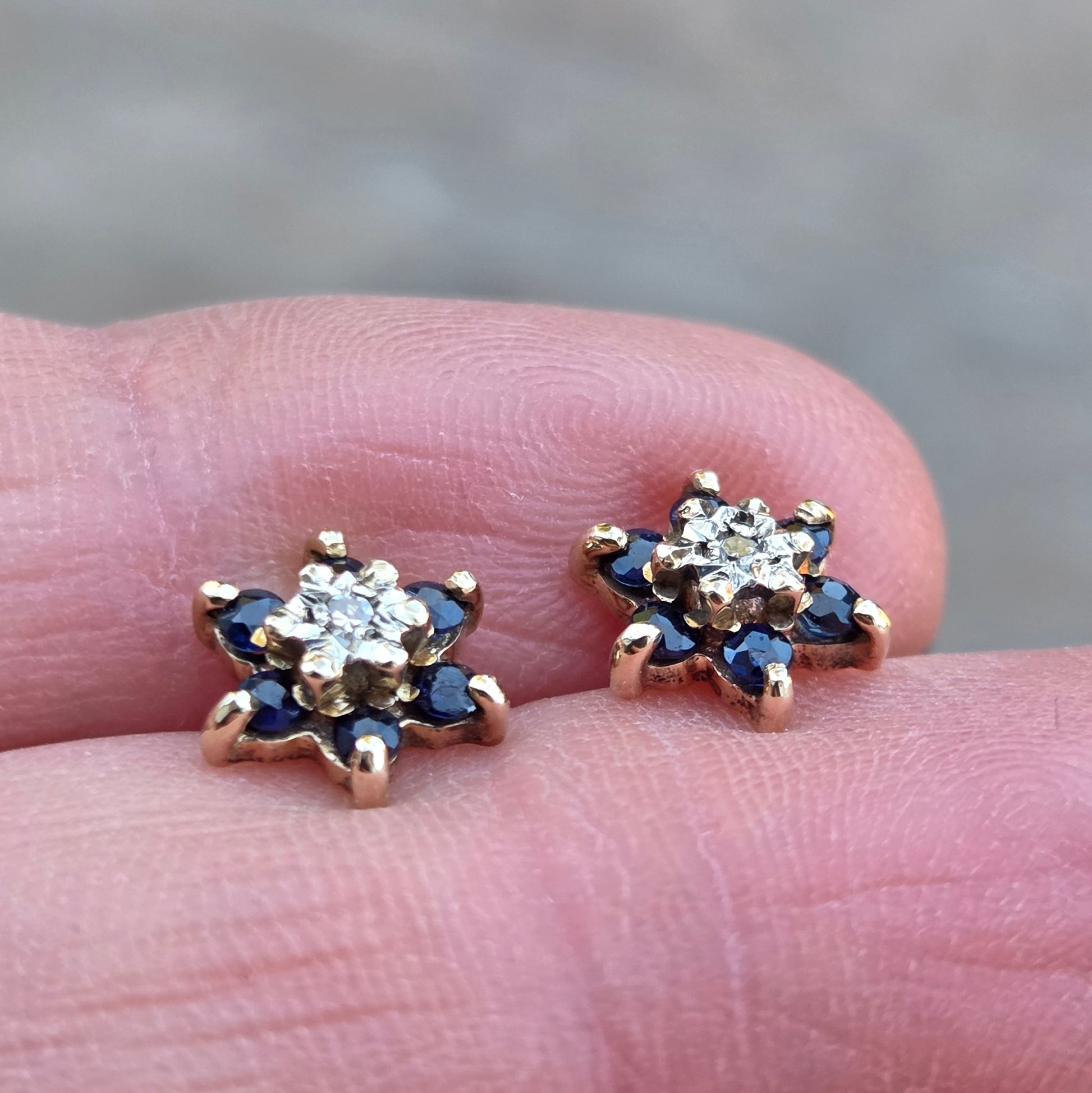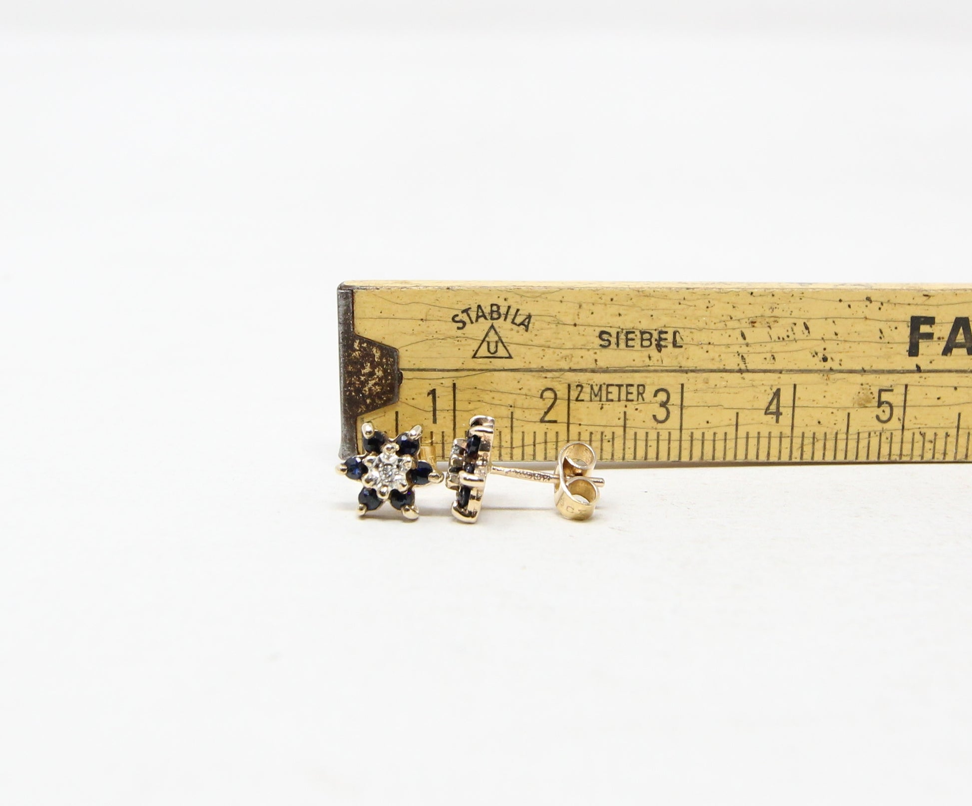 Vintage 1984 Hallmarked Solid 9ct 9k Gold Diamond Sapphire Star Stud Earrings
