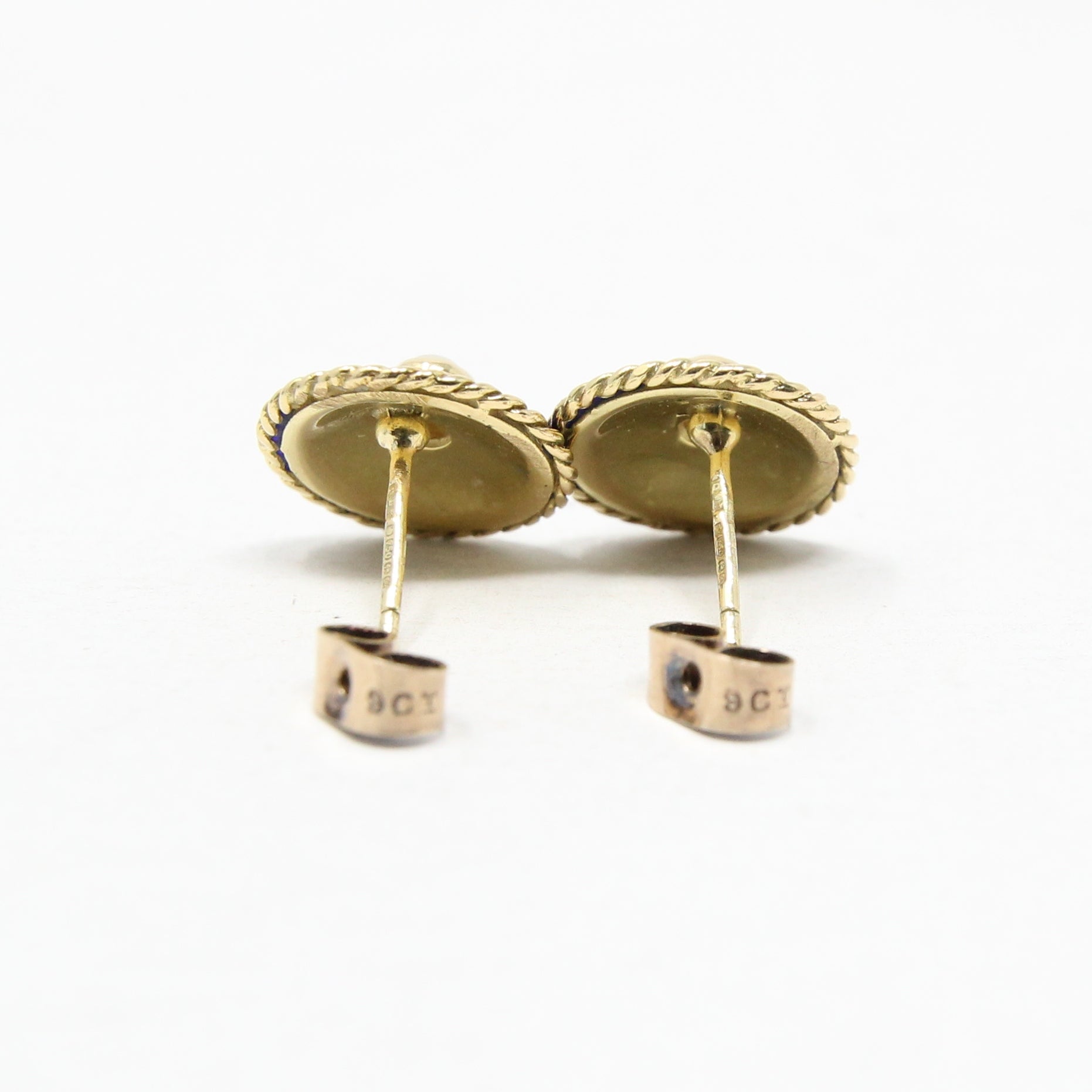 Vintage 1994 Hallmarked Solid 18ct 18k Gold Blue Enamel Pearl Stud Earrings
