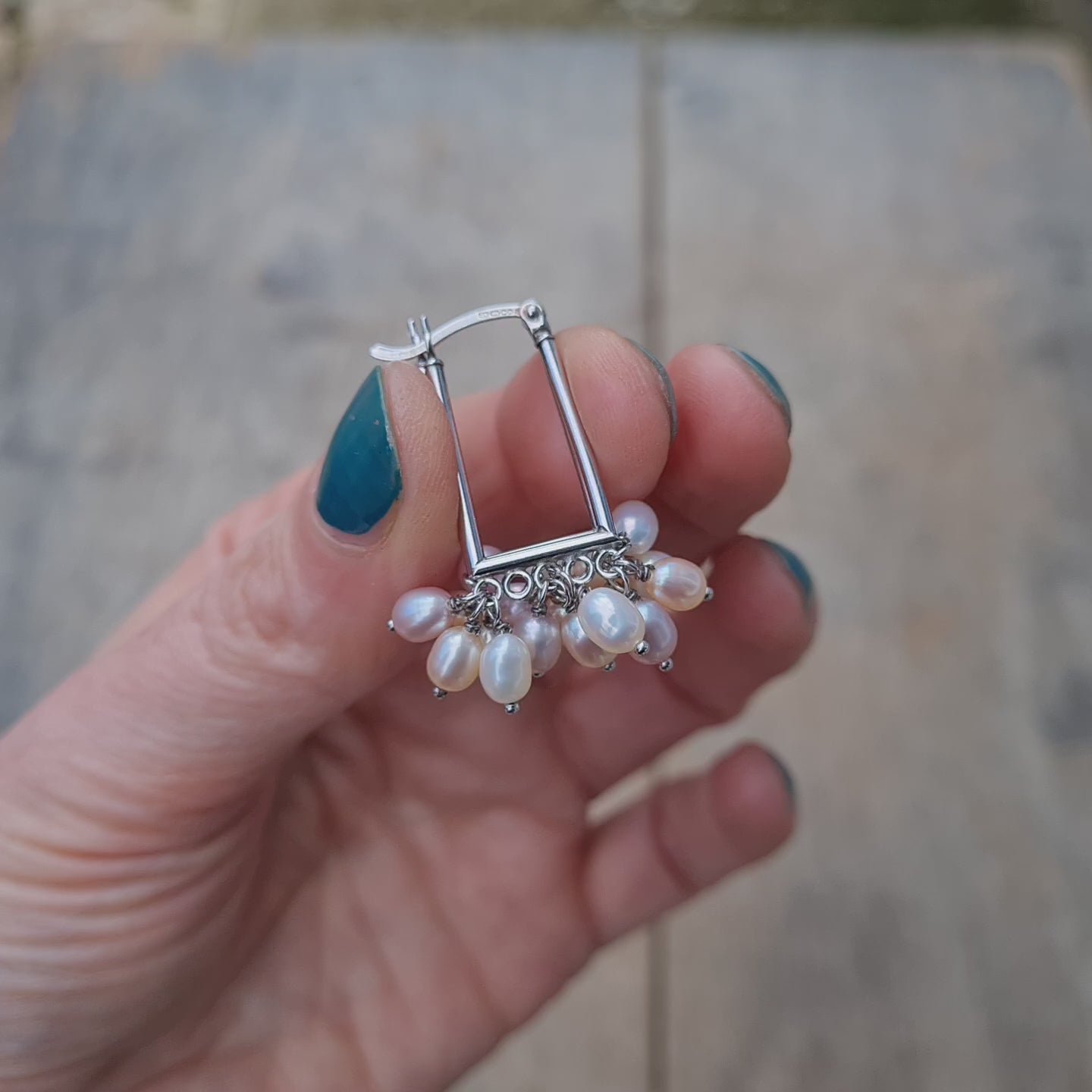 Vintage 2007 hallmarked solid Sterling silver real baroque pearl hoop earrings.