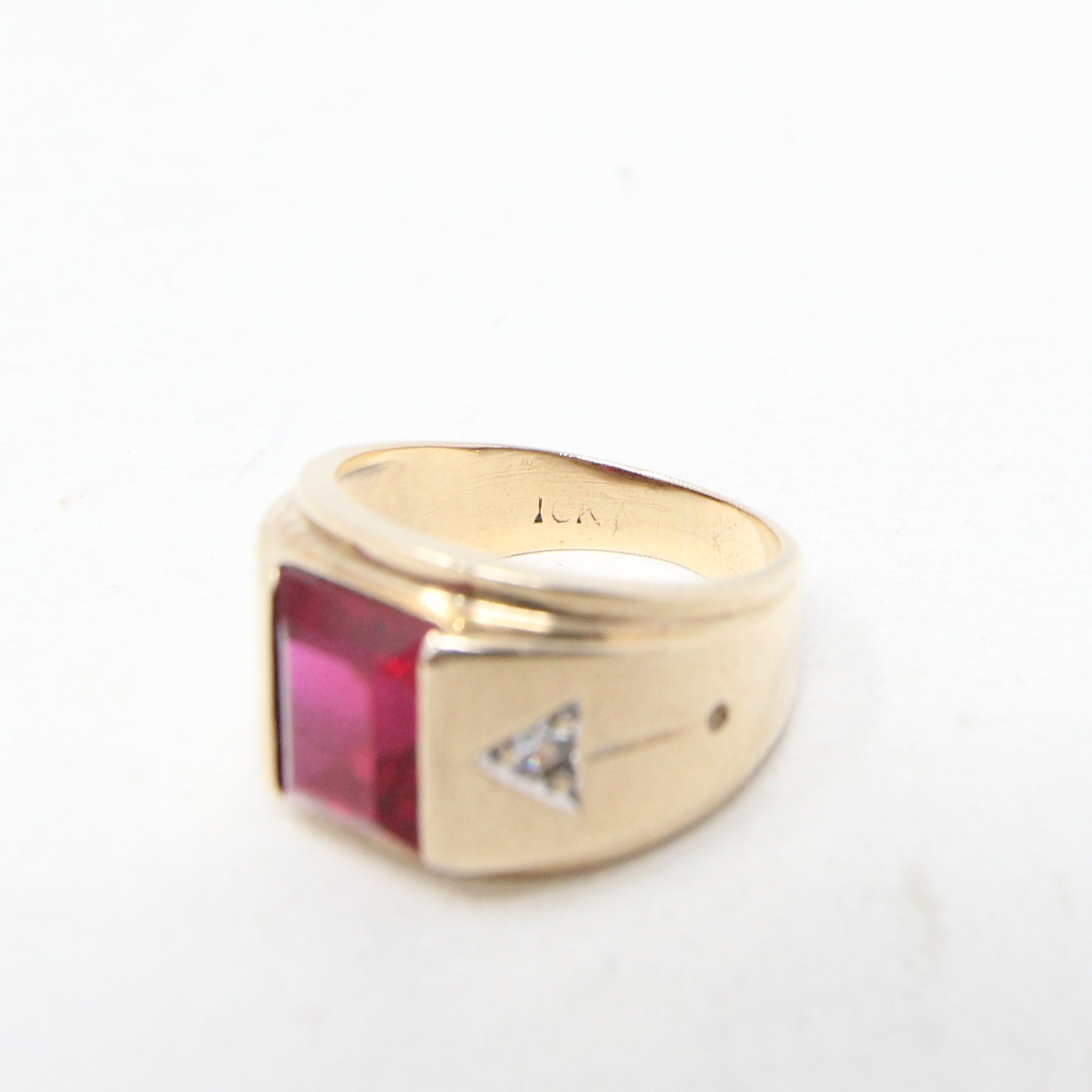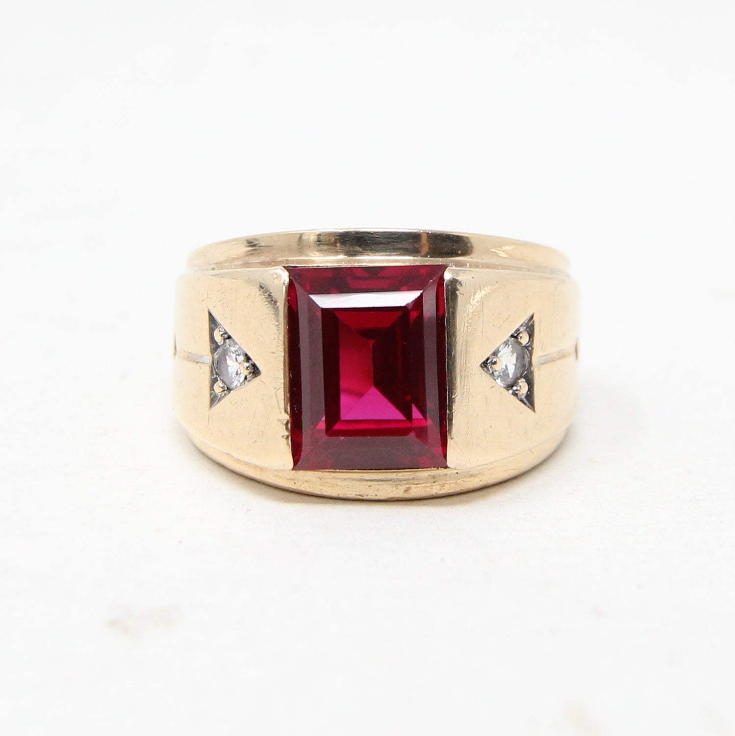Vintage Art Deco American Hallmarked Solid 10ct 10k Gold Ruby & Spinel Ring Size Q