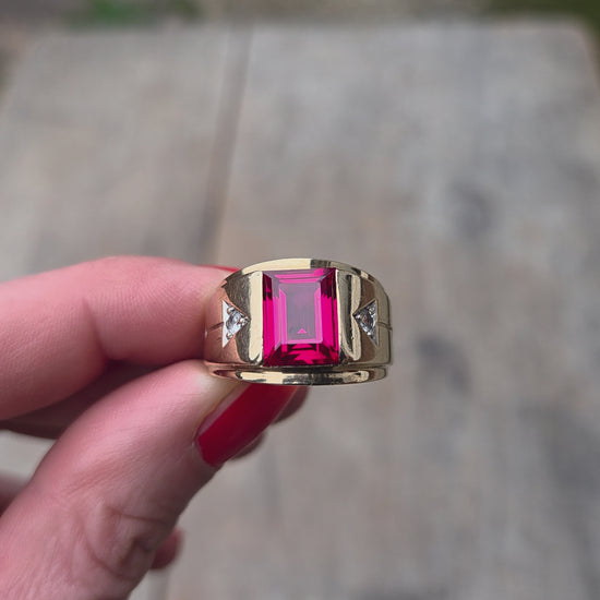 Vintage Art Deco American hallmarked solid 10ct gold ruby & spinel ring in a size Q.
