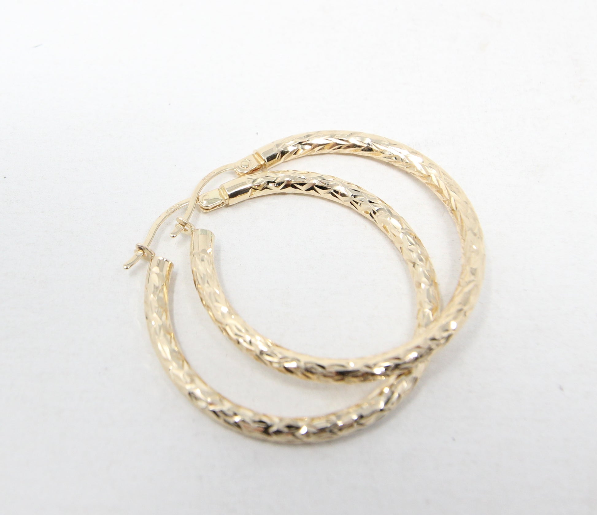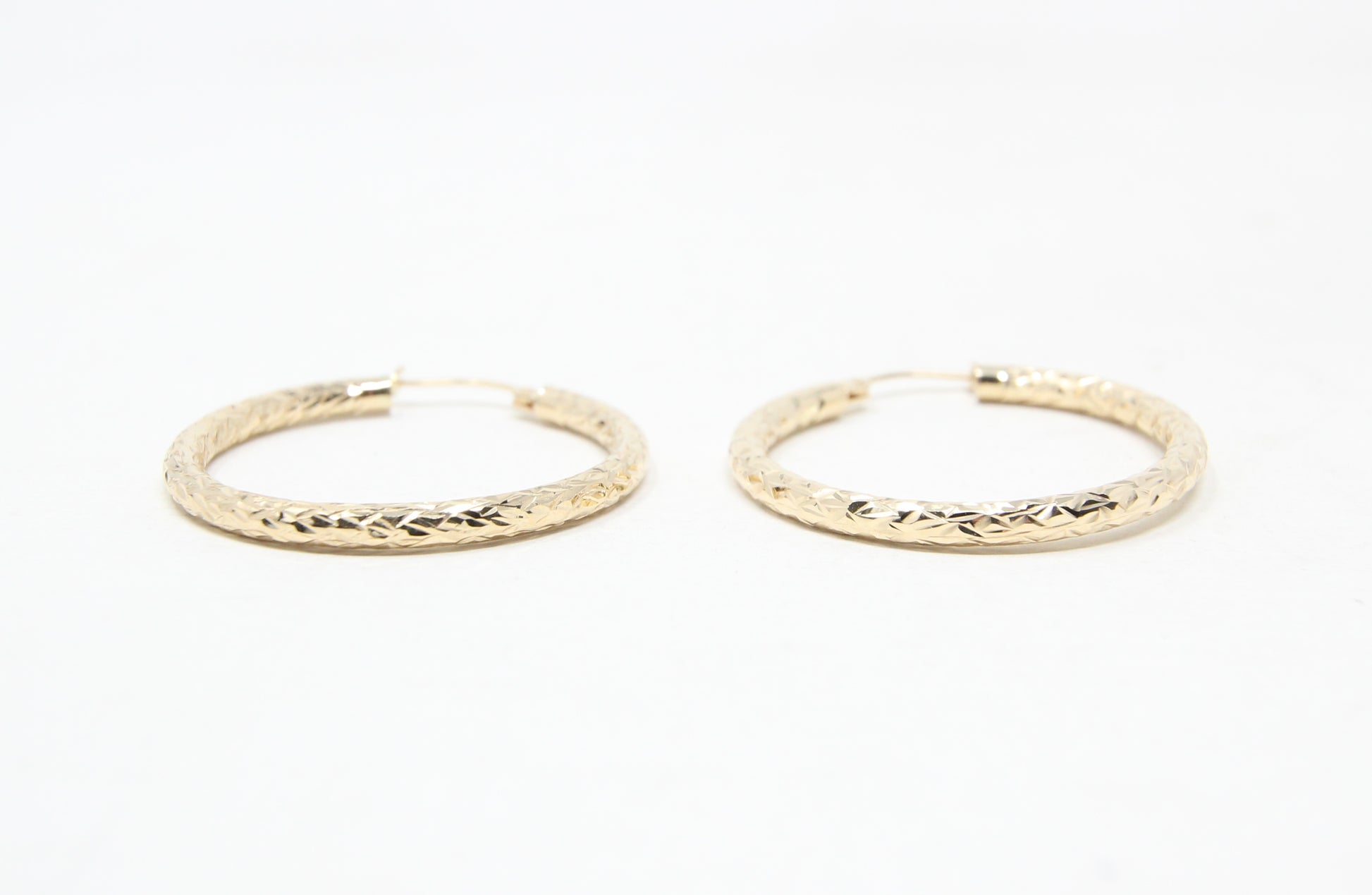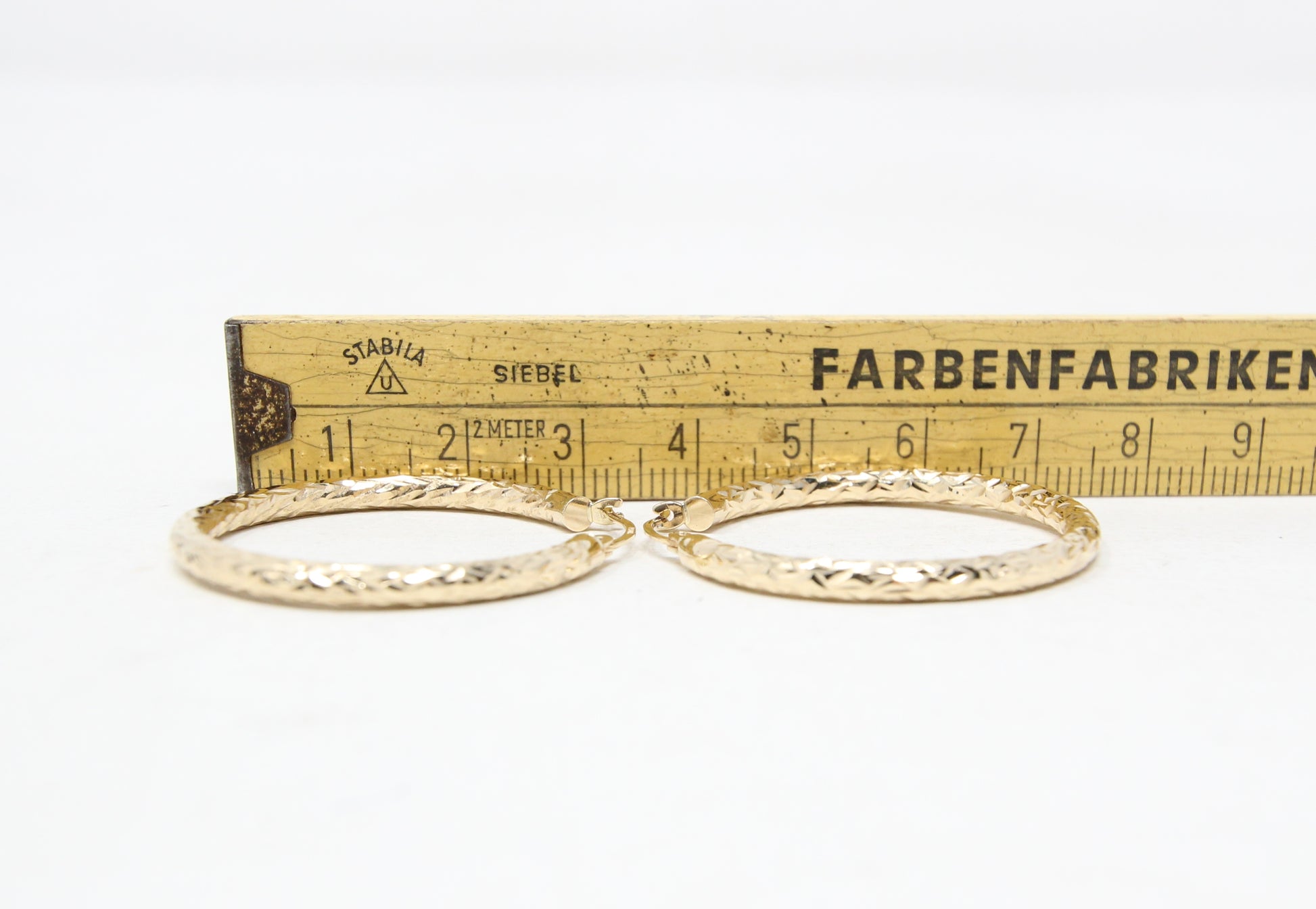 Vintage Hallmarked Solid 14ct 14k Gold Diamond Cut Hoop Earrings Hoops