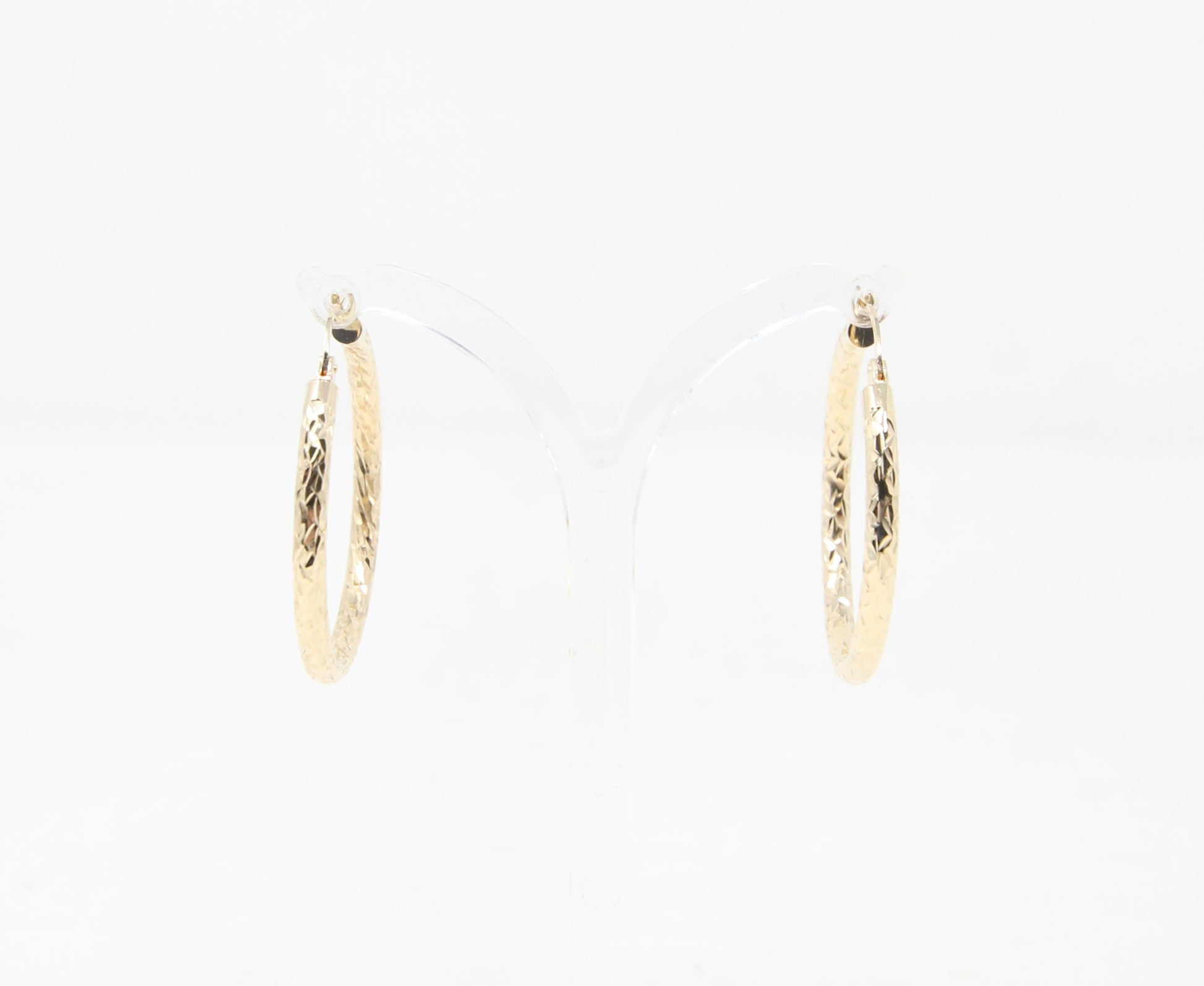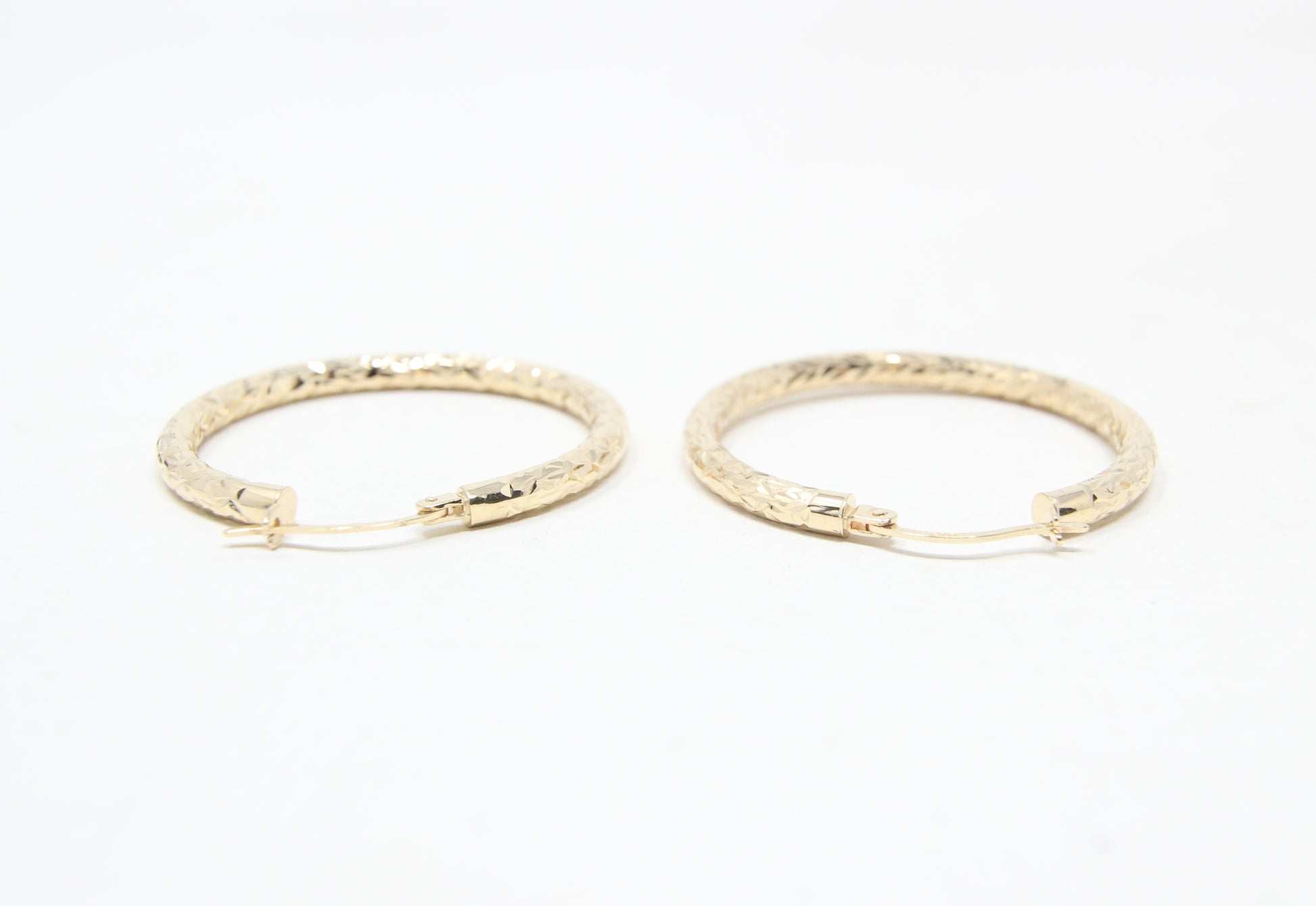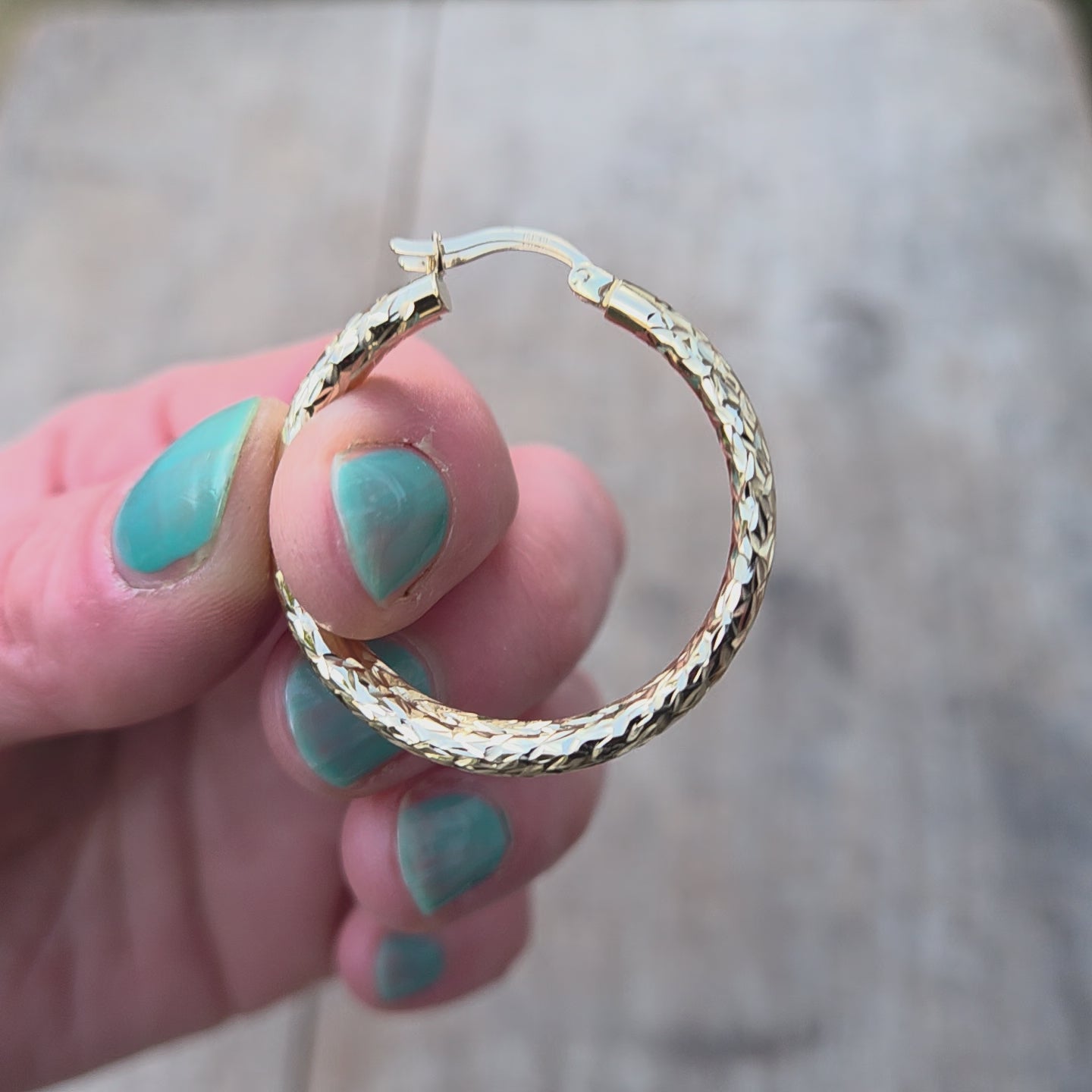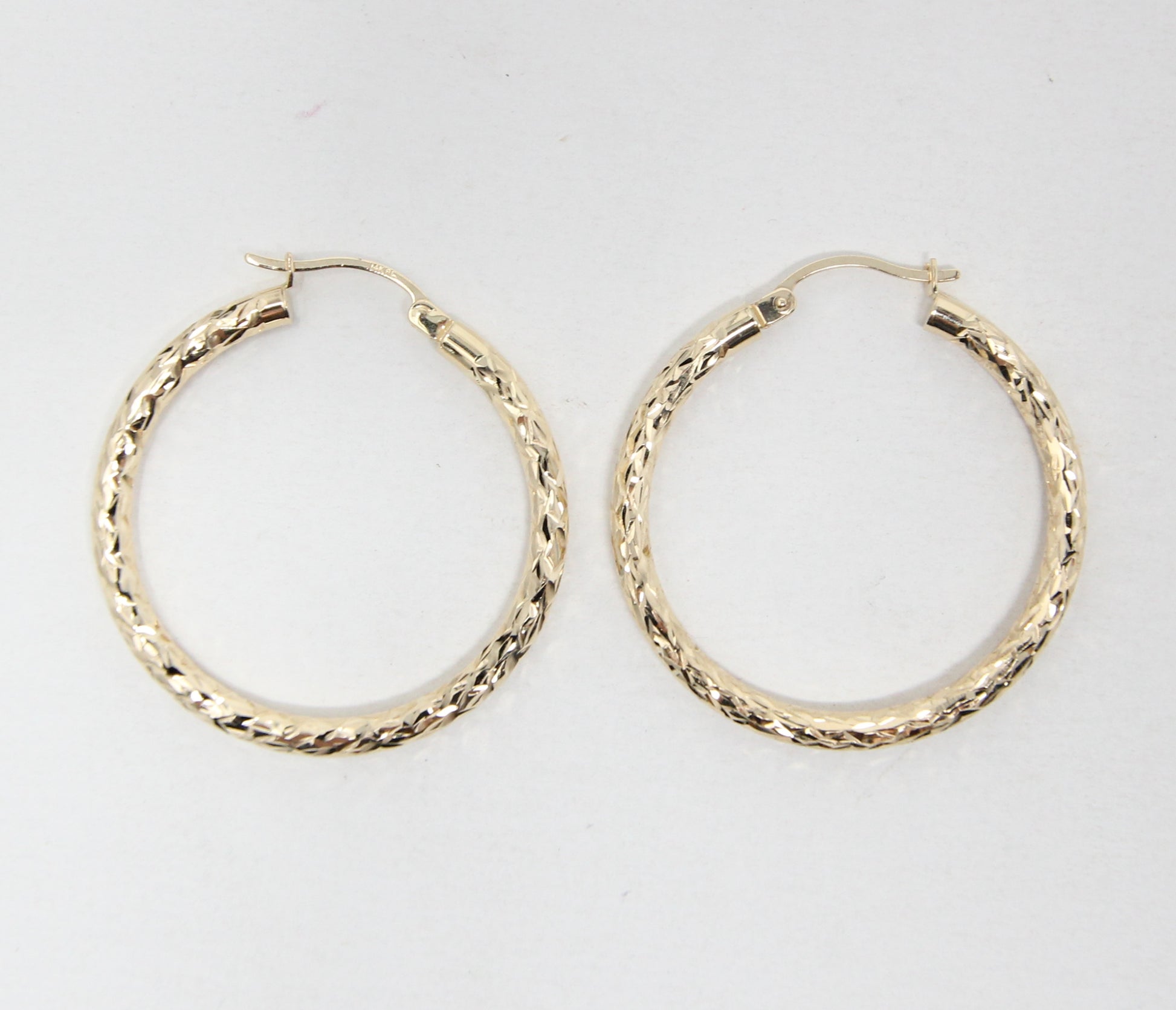 Vintage Hallmarked Solid 14ct 14k Gold Diamond Cut Hoop Earrings Hoops