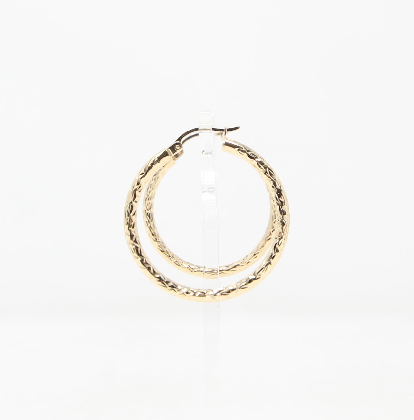 Vintage hallmarked solid 14ct gold diamond cut hoop earrings.